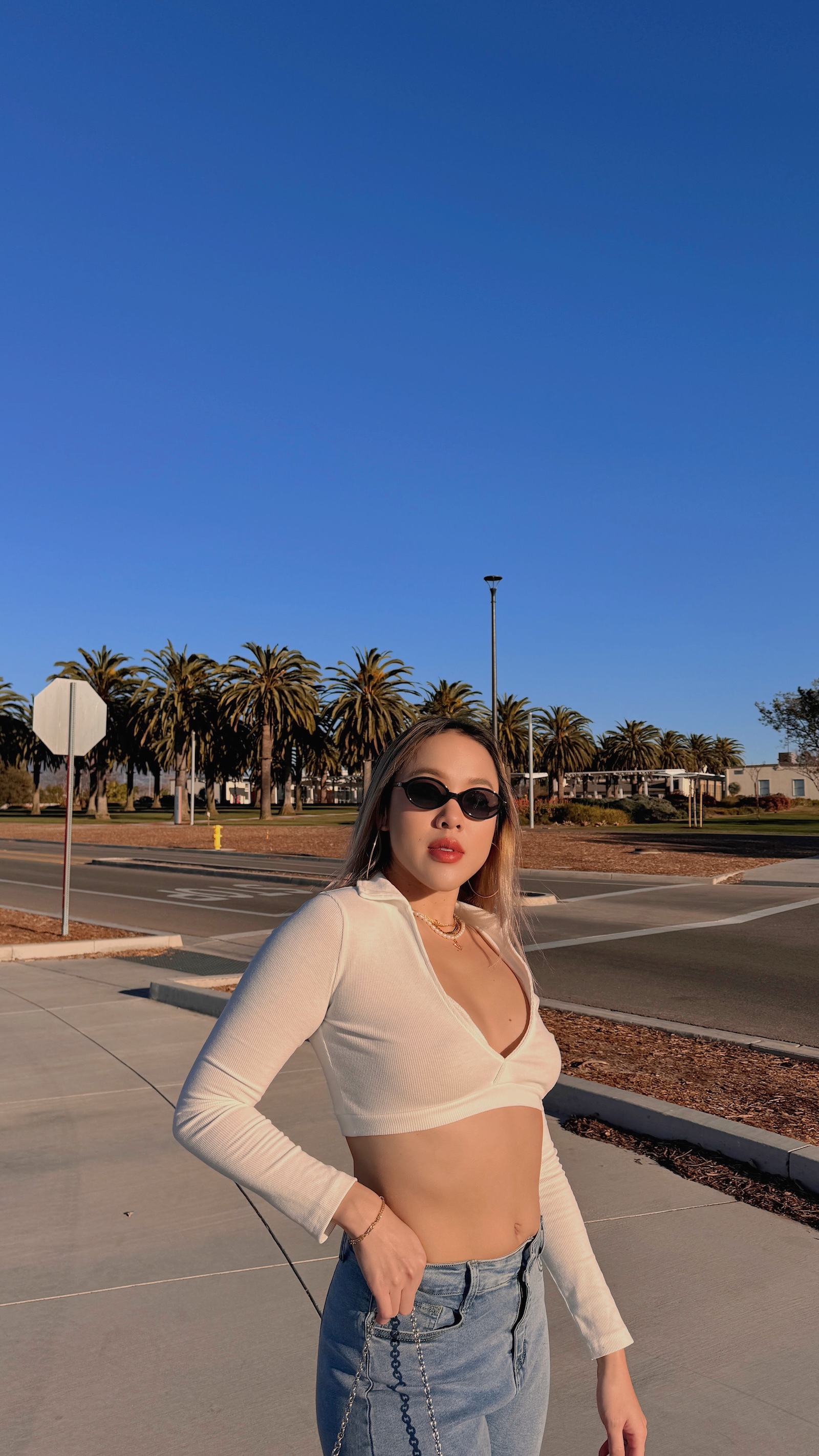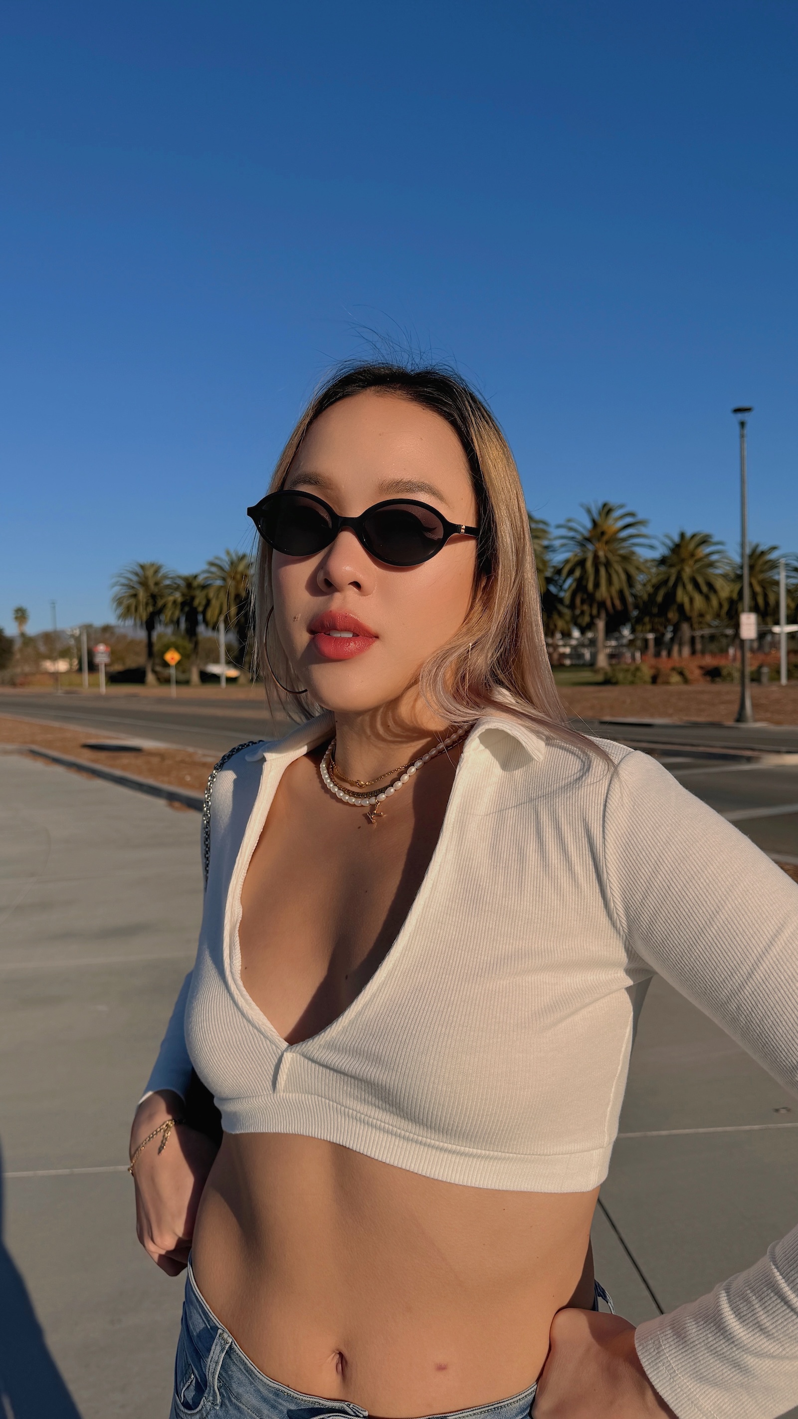 美式剪裁,深V搭配短版