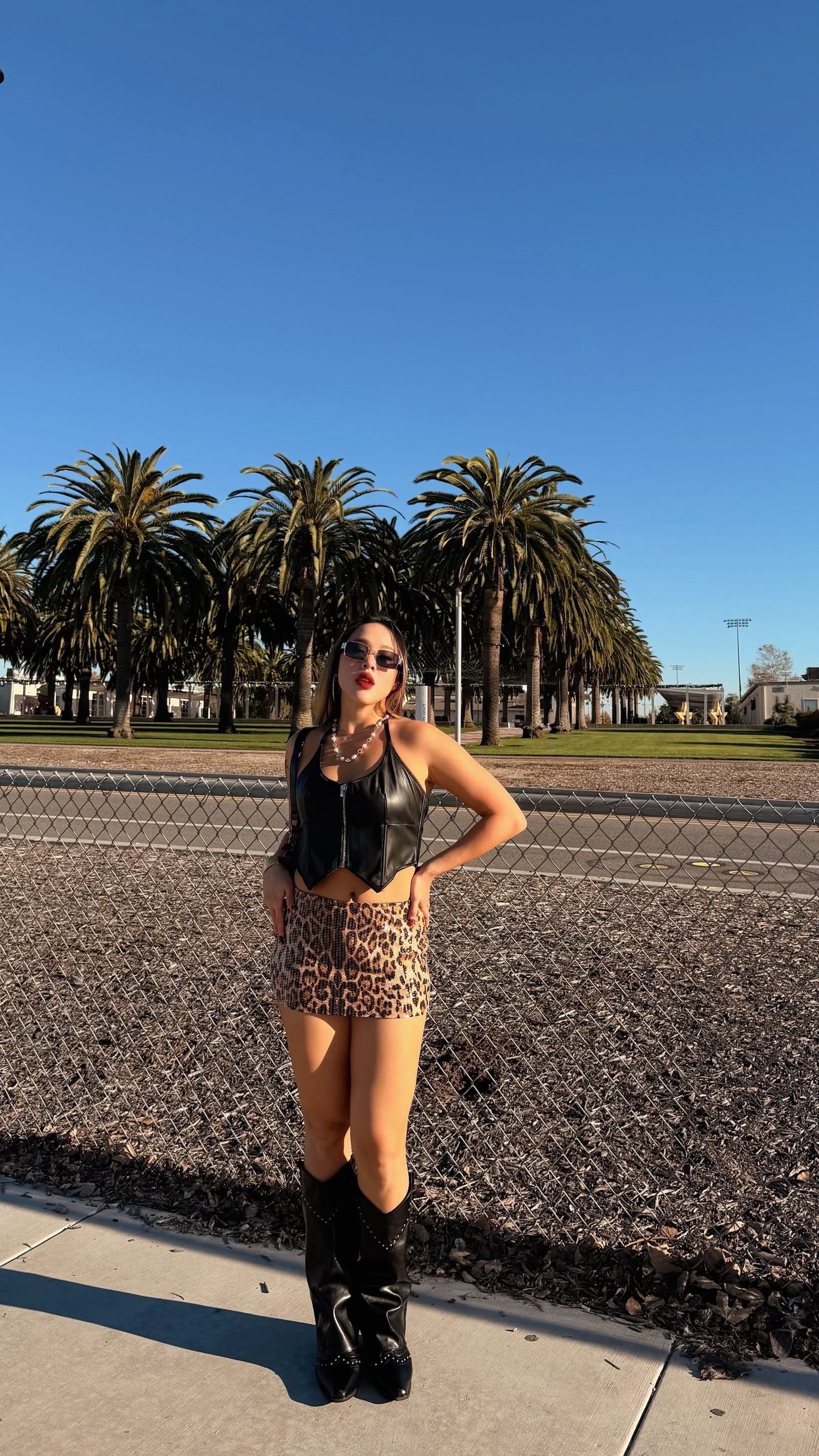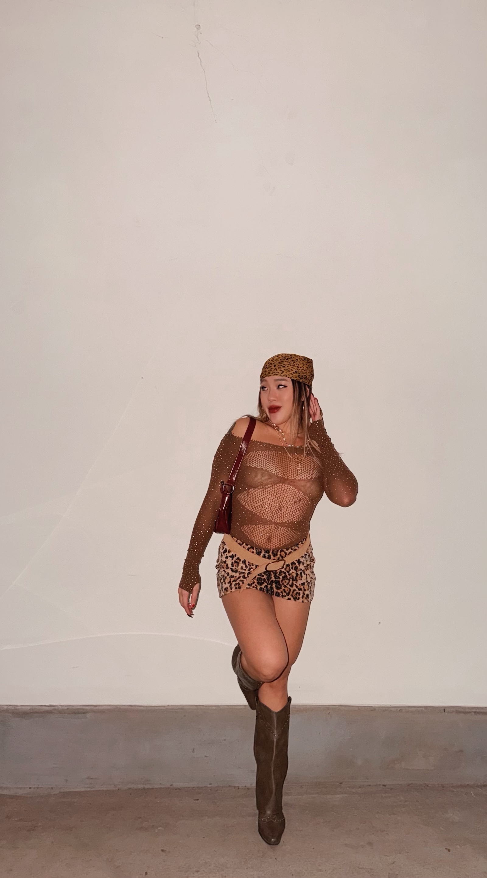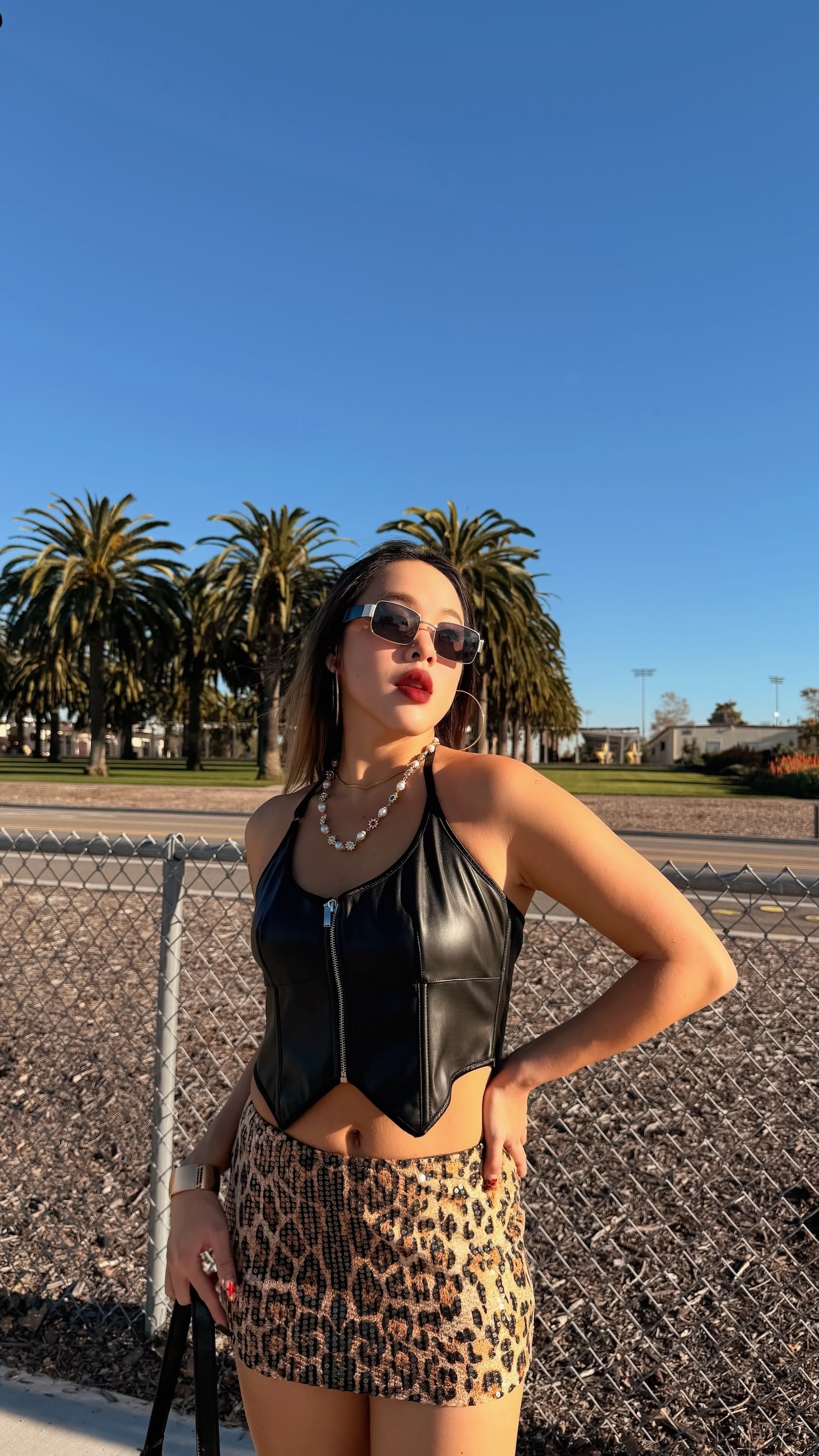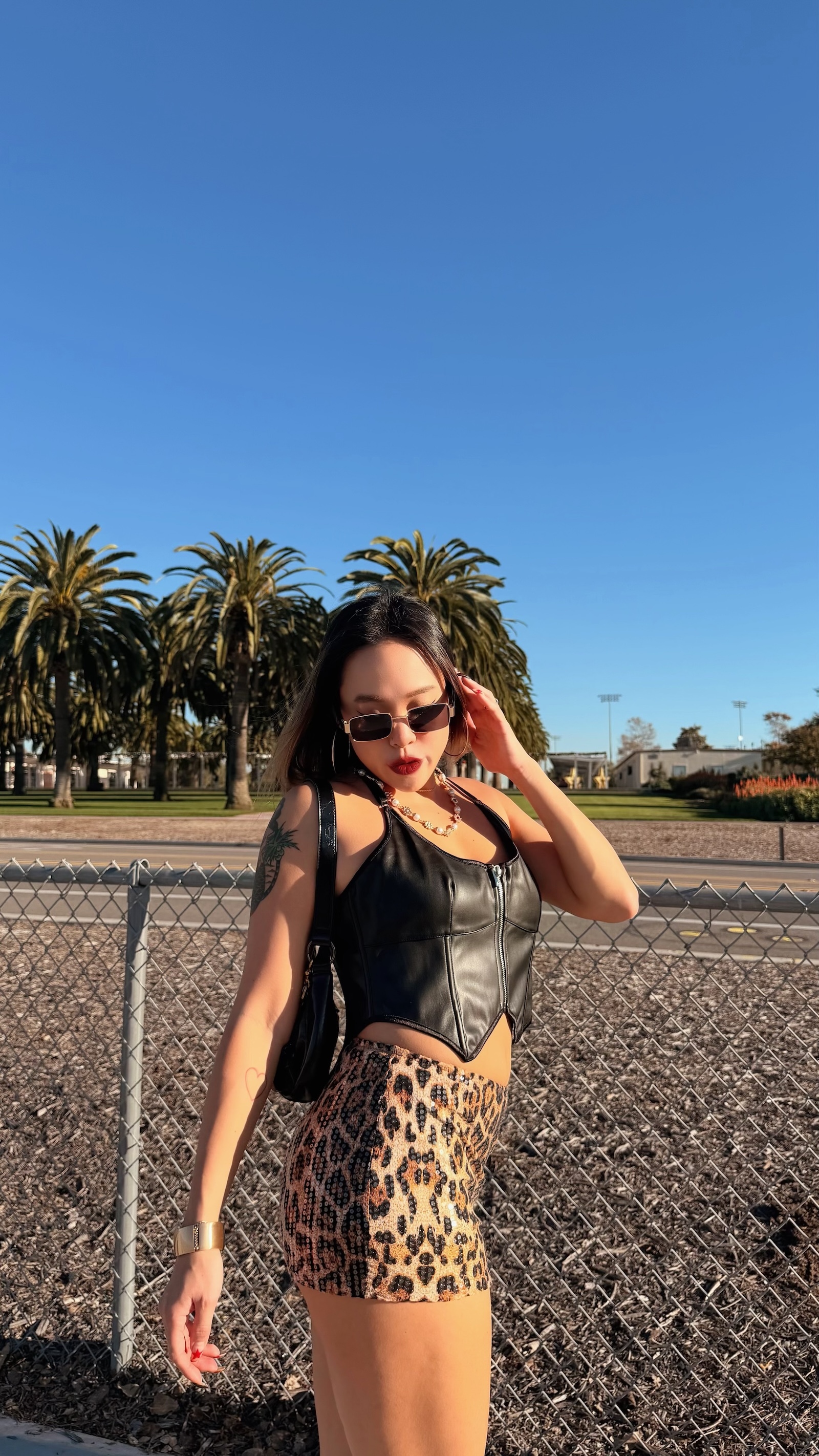 豹紋搭配整件透明亮片