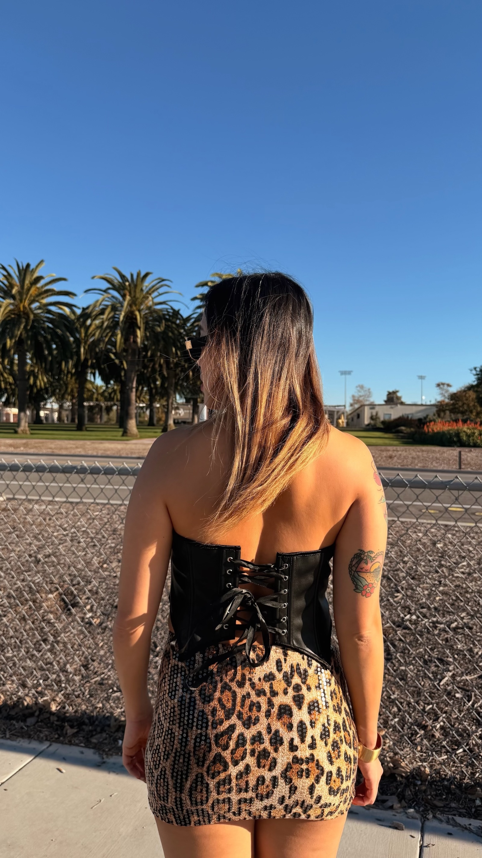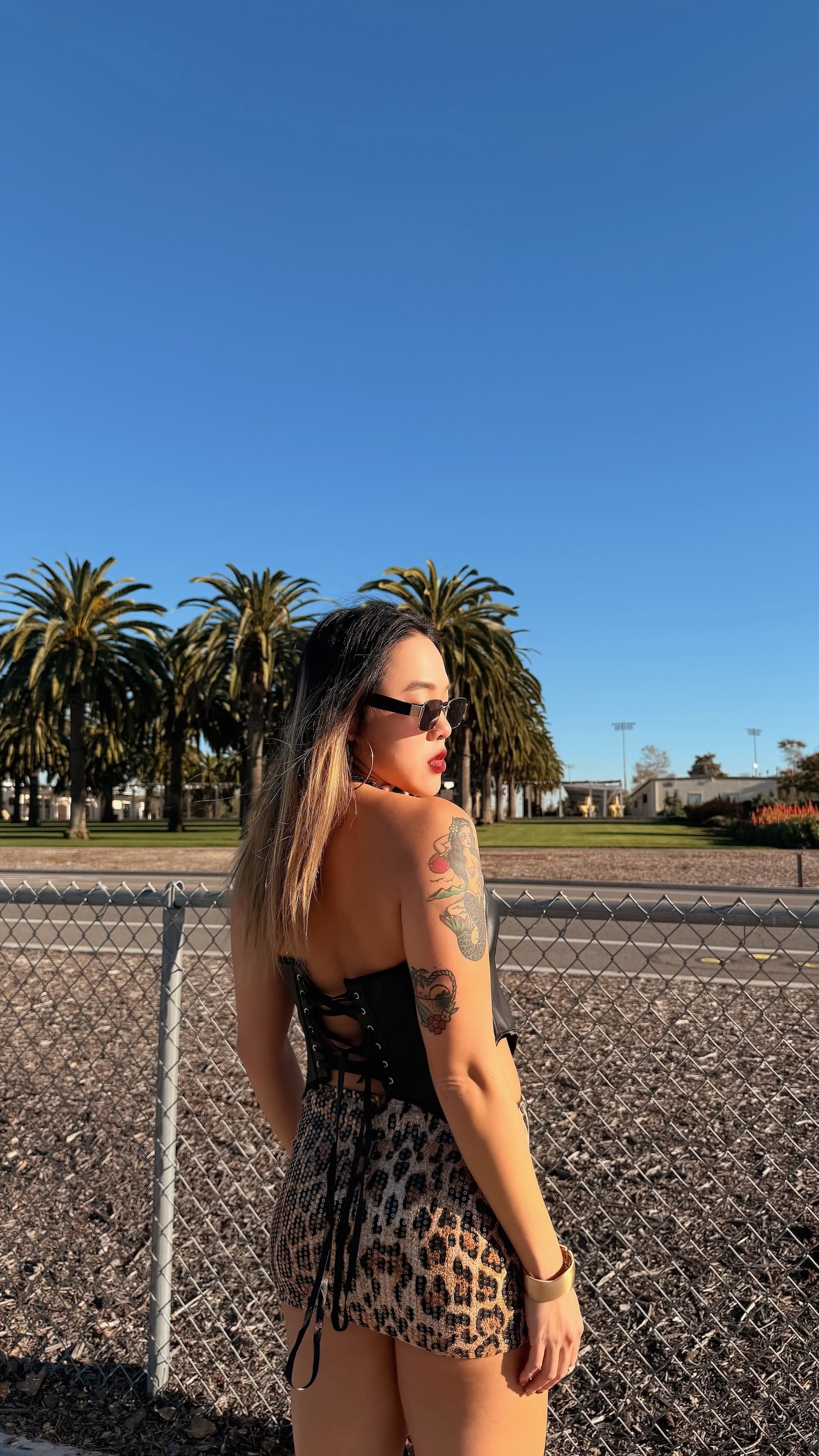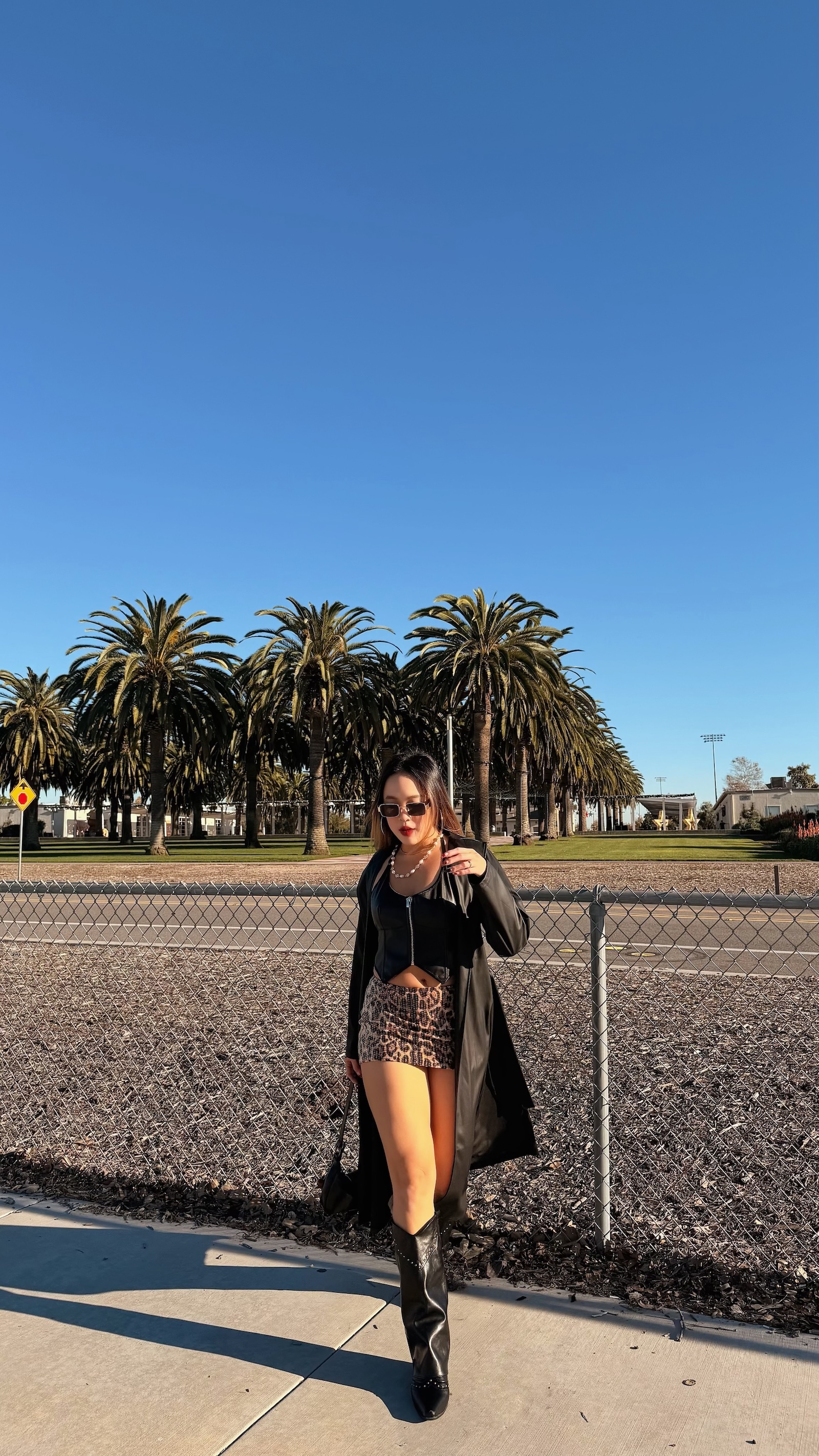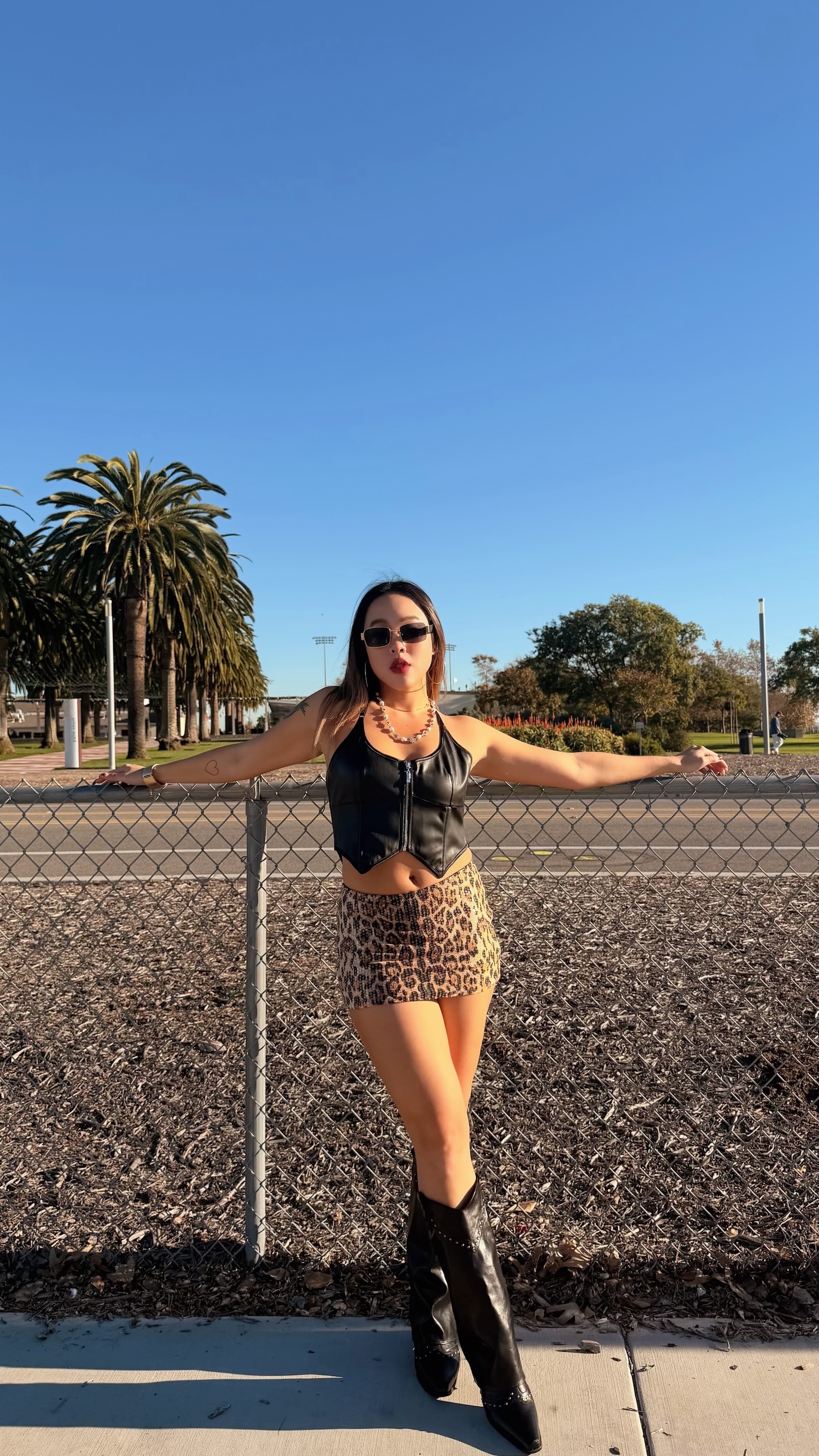 豹紋搭配整件透明亮片