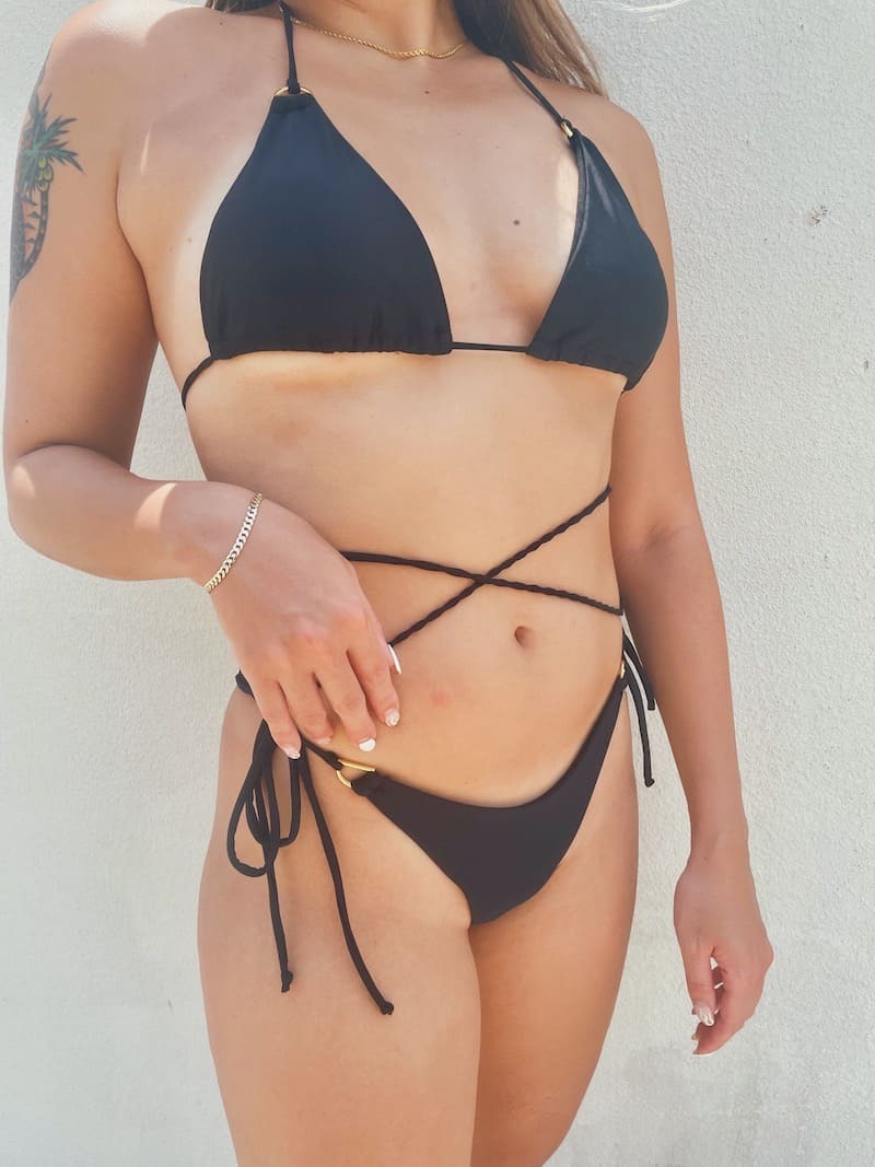 泳褲也是綁帶搭配合金,背面做微三角丁字設計
