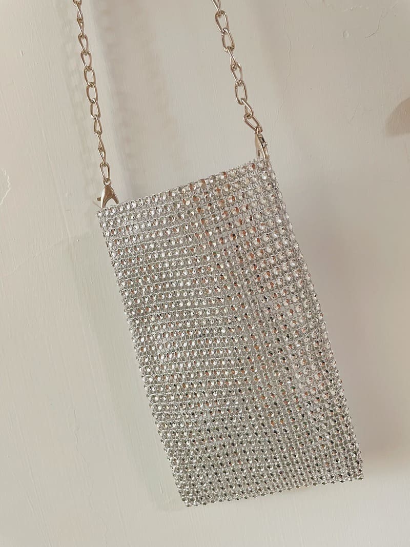 這個手機包超級可愛🤩整個閃鑽編織有夠派對感🤍