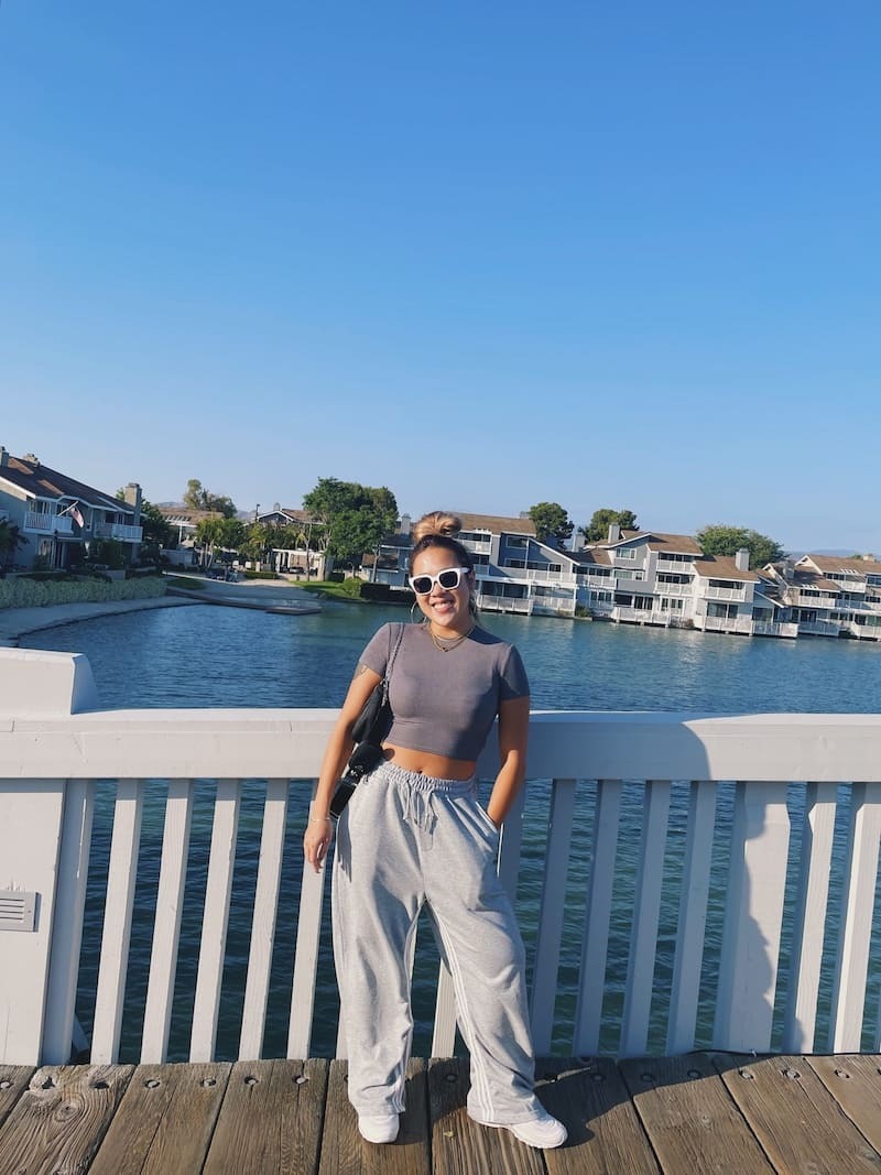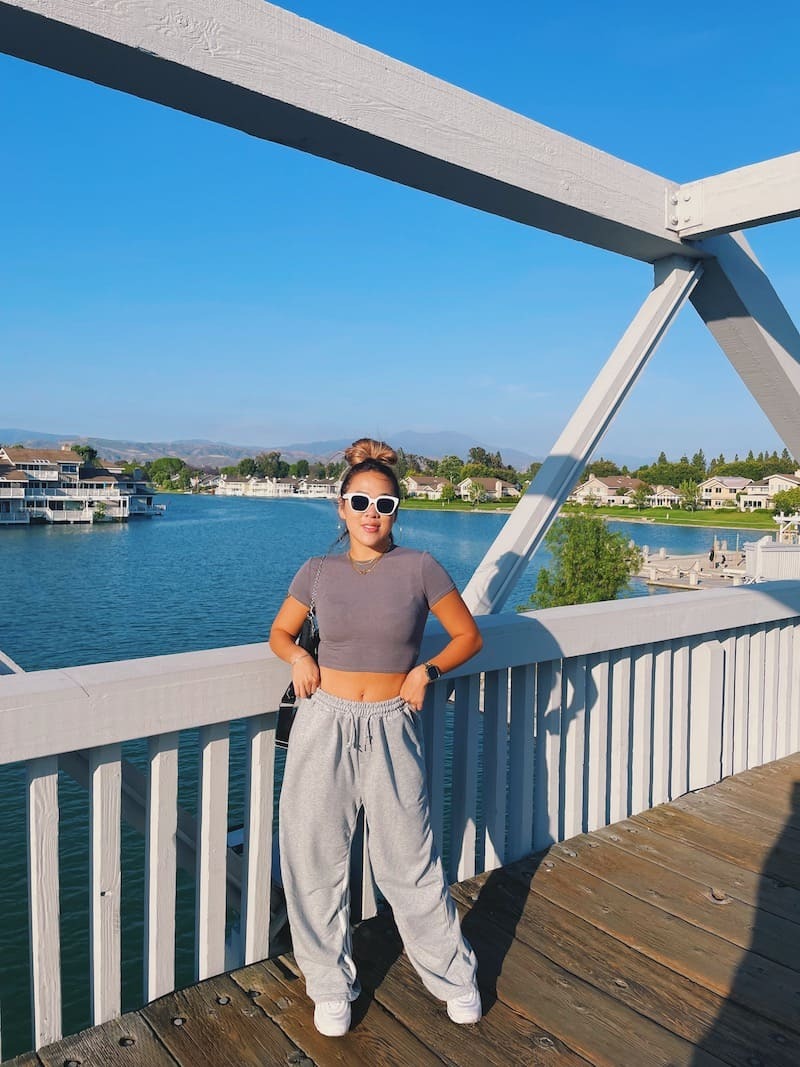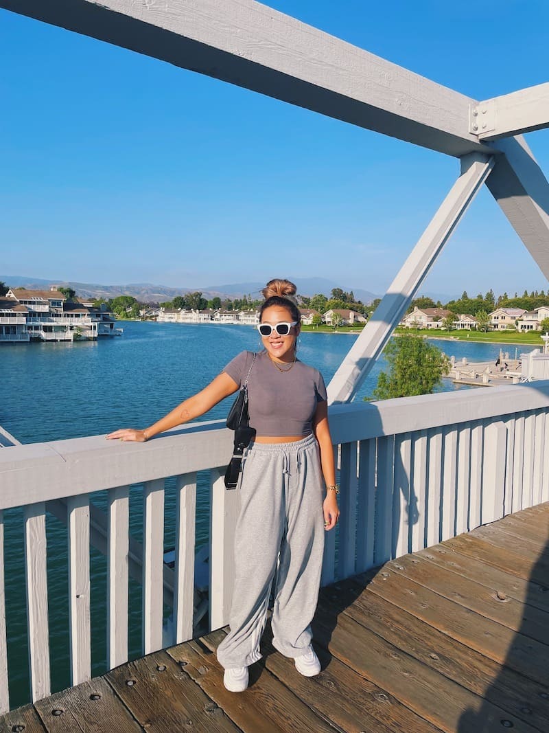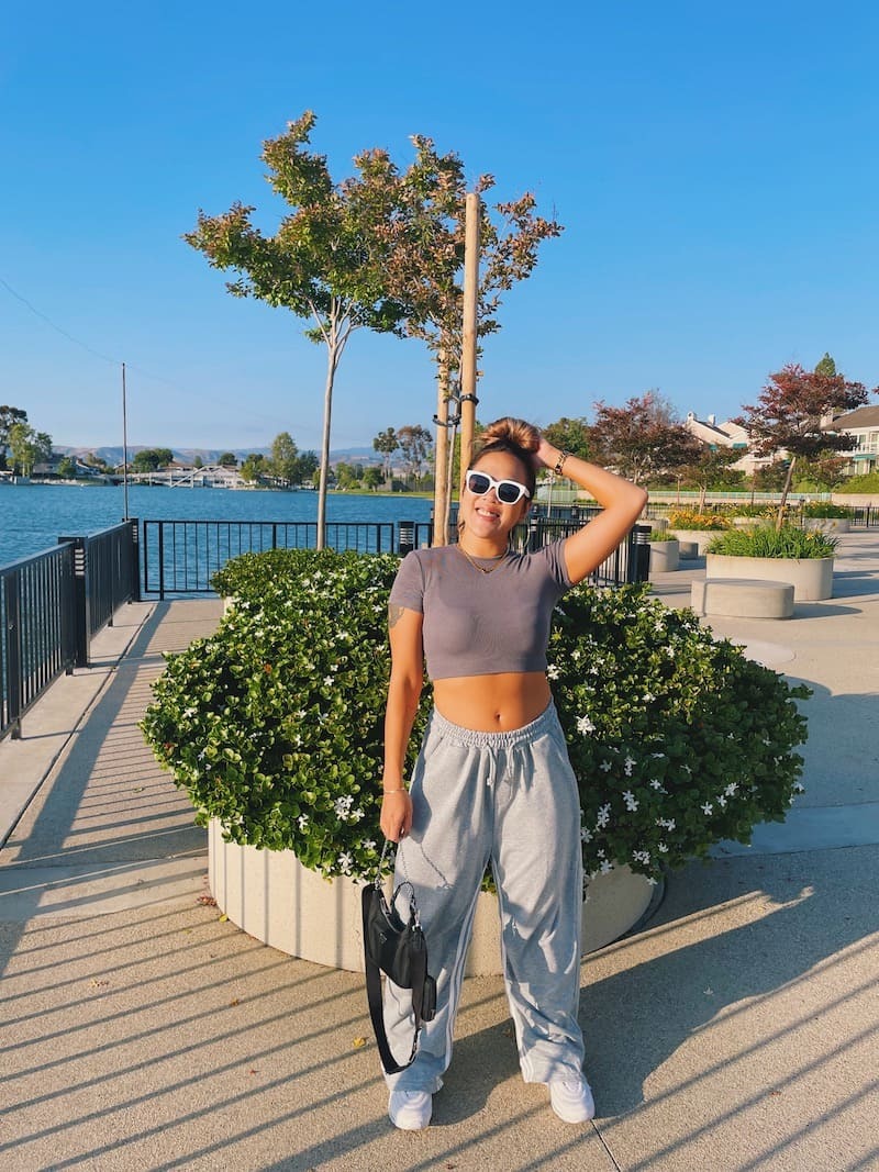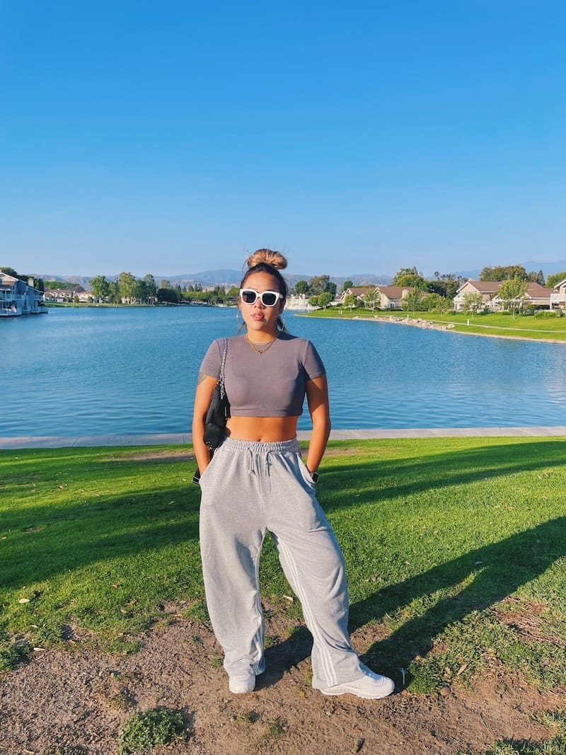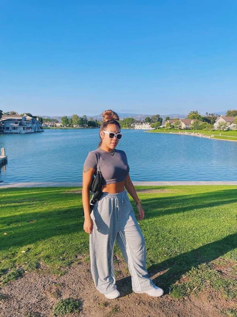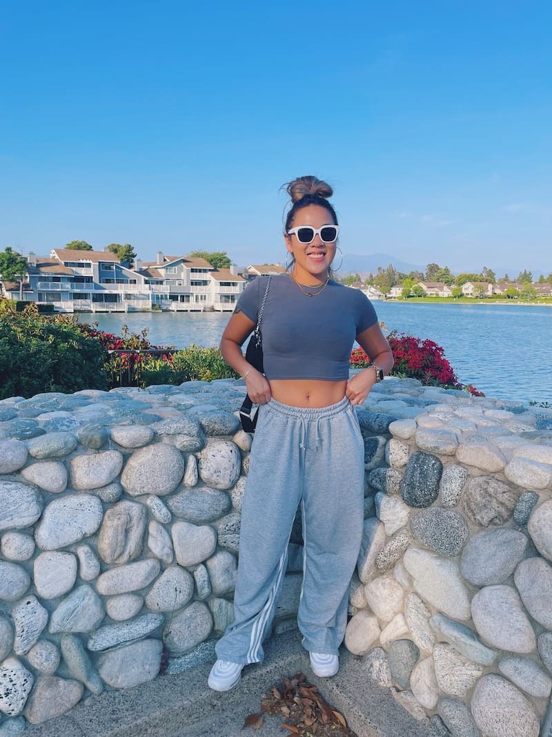 淺灰棉質耐看舒適,鬆緊綁帶腰圍更是舒服