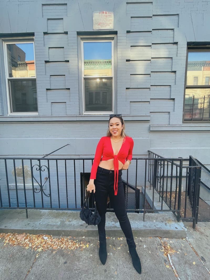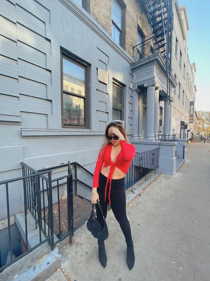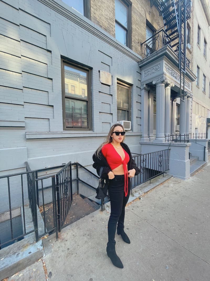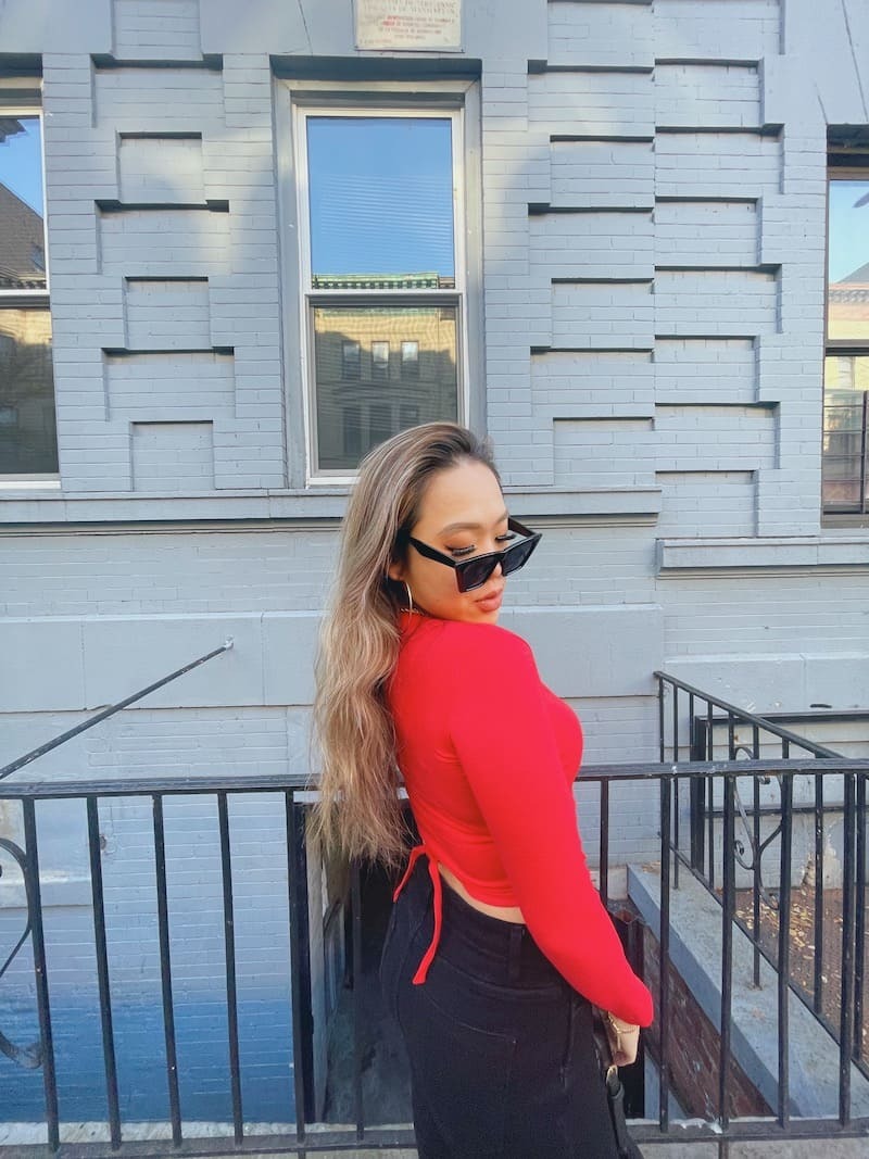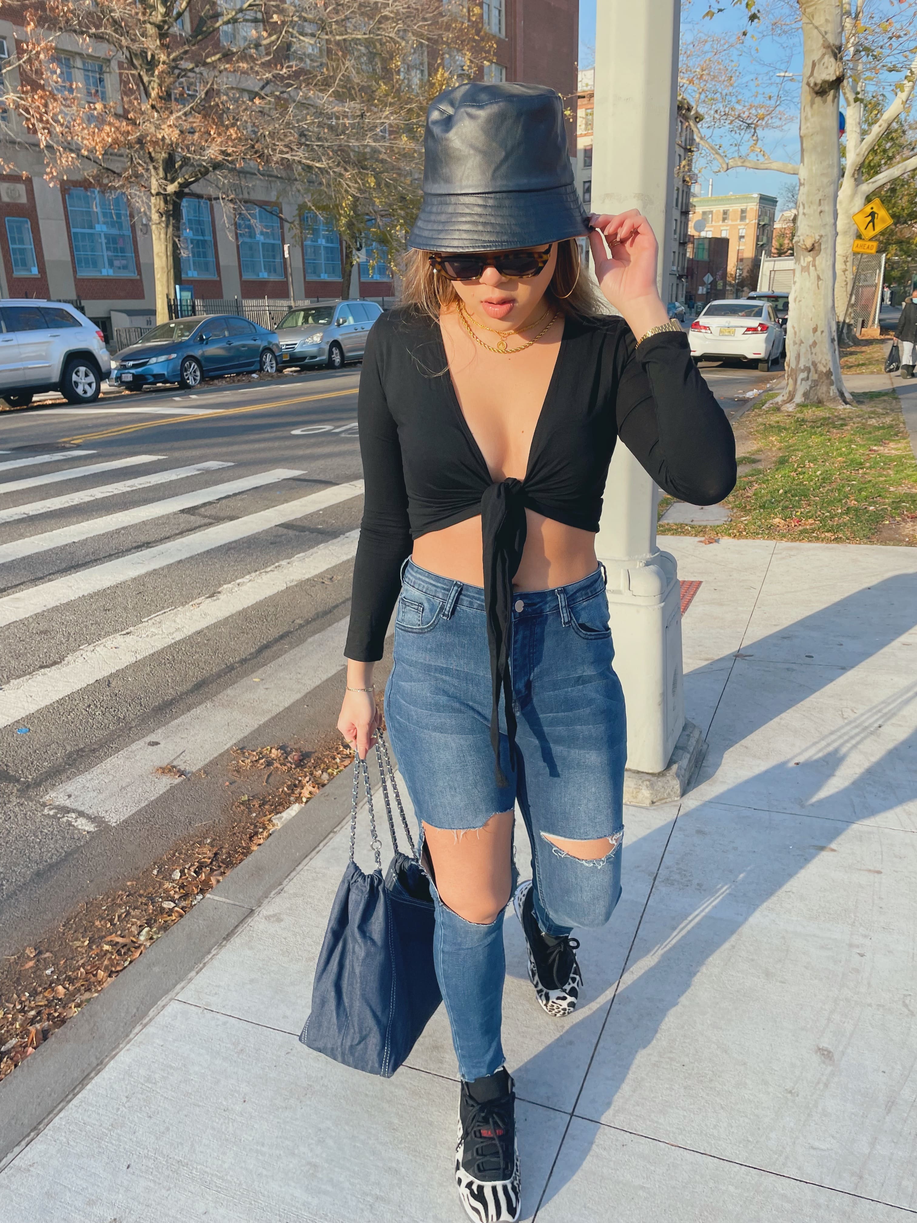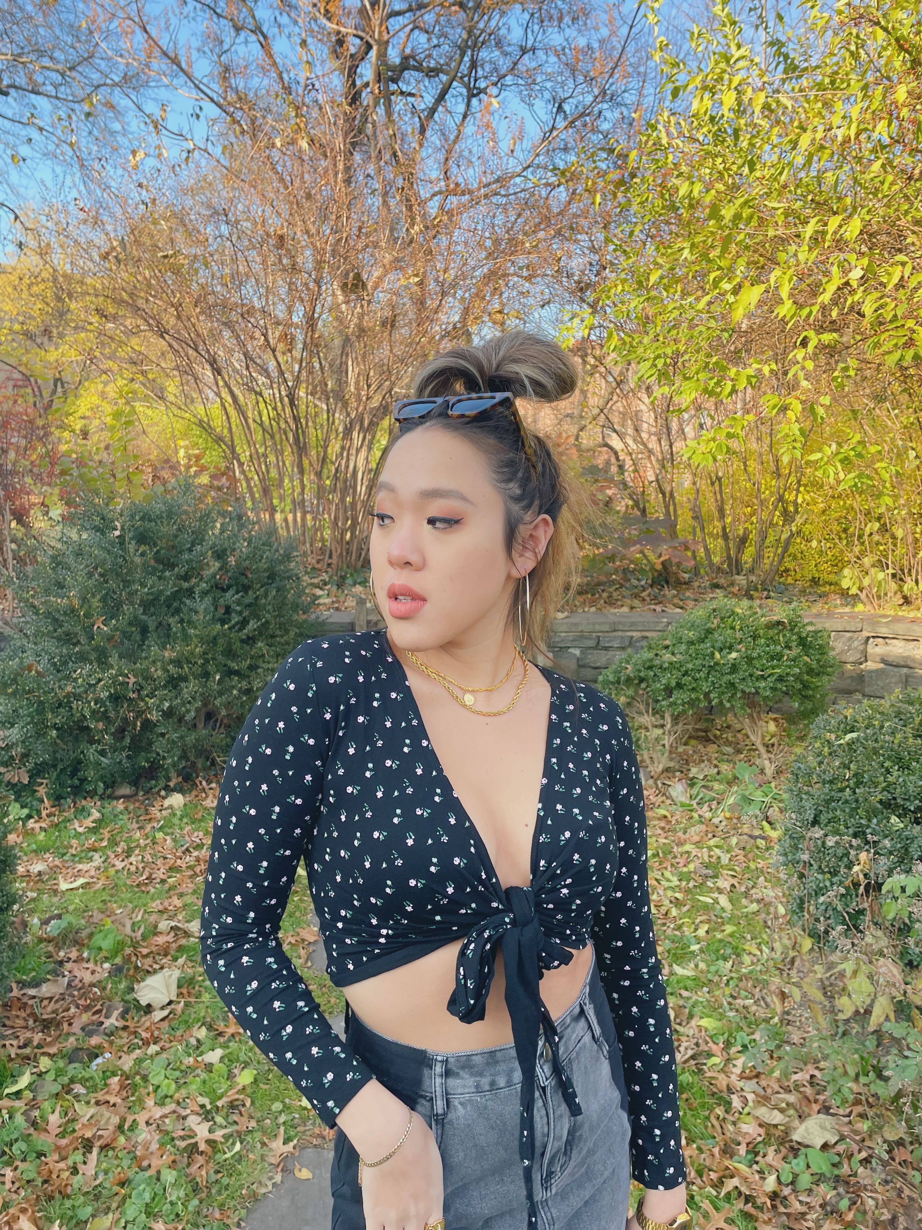 另一種兩邊綁起來,就是單純的深V上衣,很可以😎