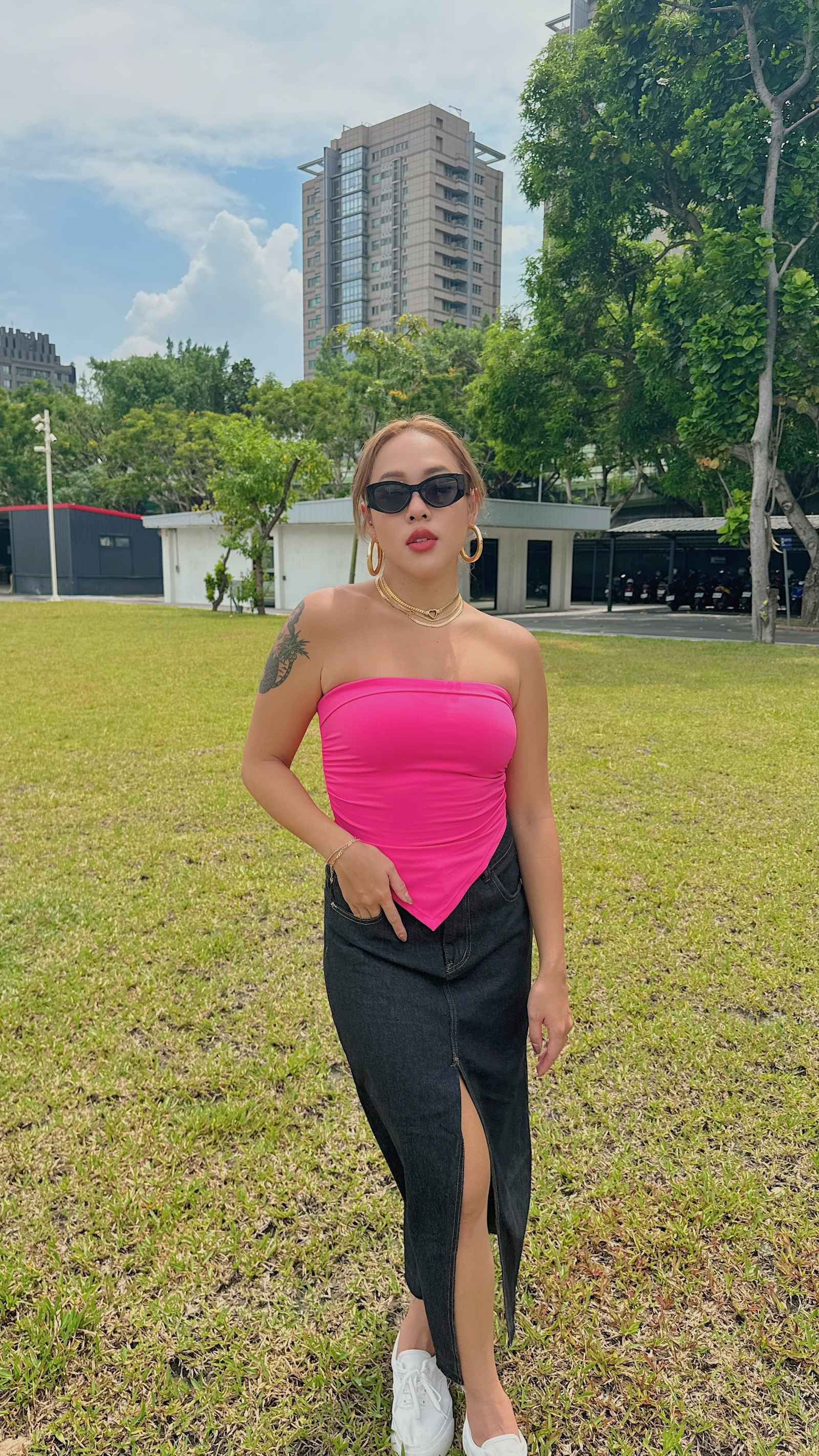 高腰修飾身形,開衩的剛剛好