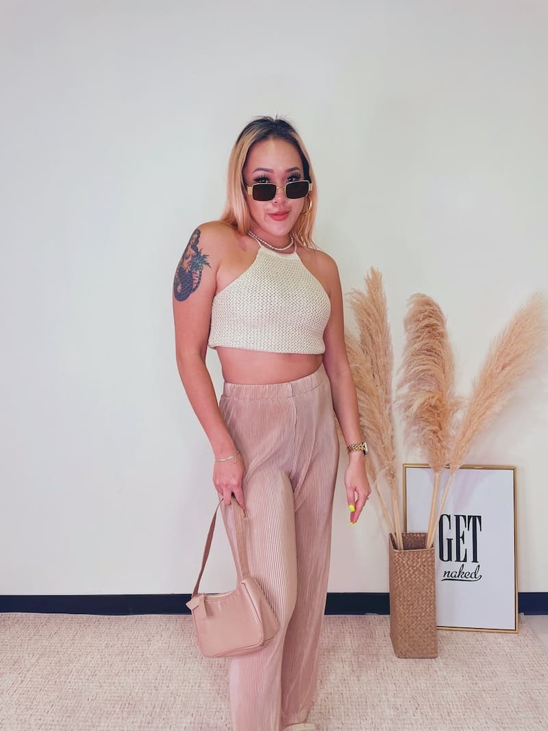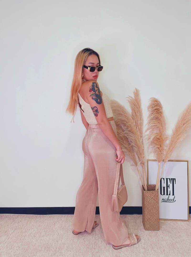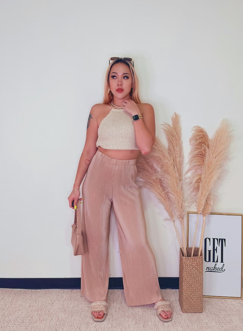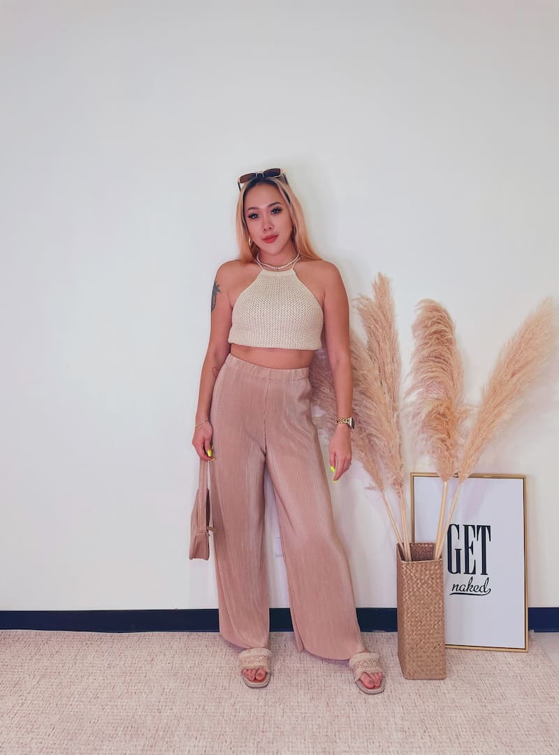 百搭又好穿的皺摺褲,鬆緊高腰圍搭配直筒褲