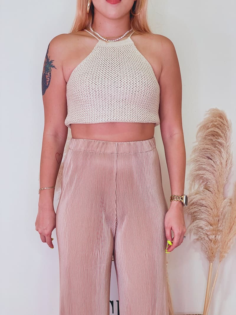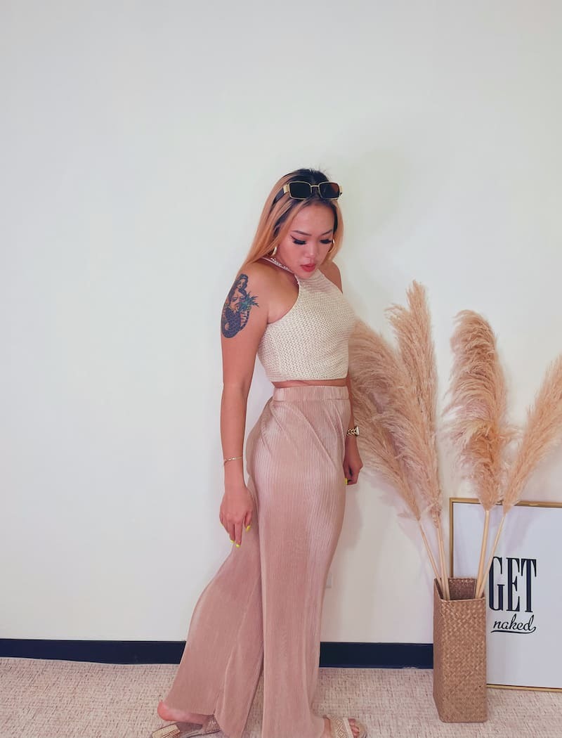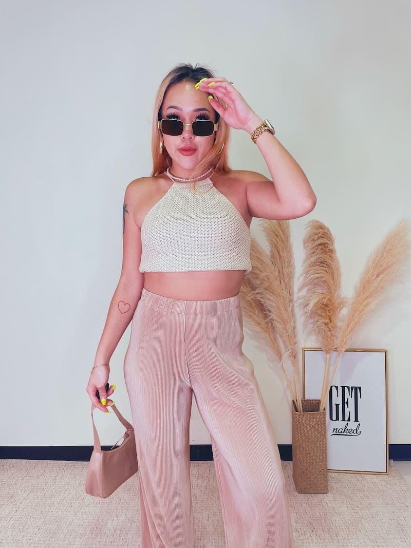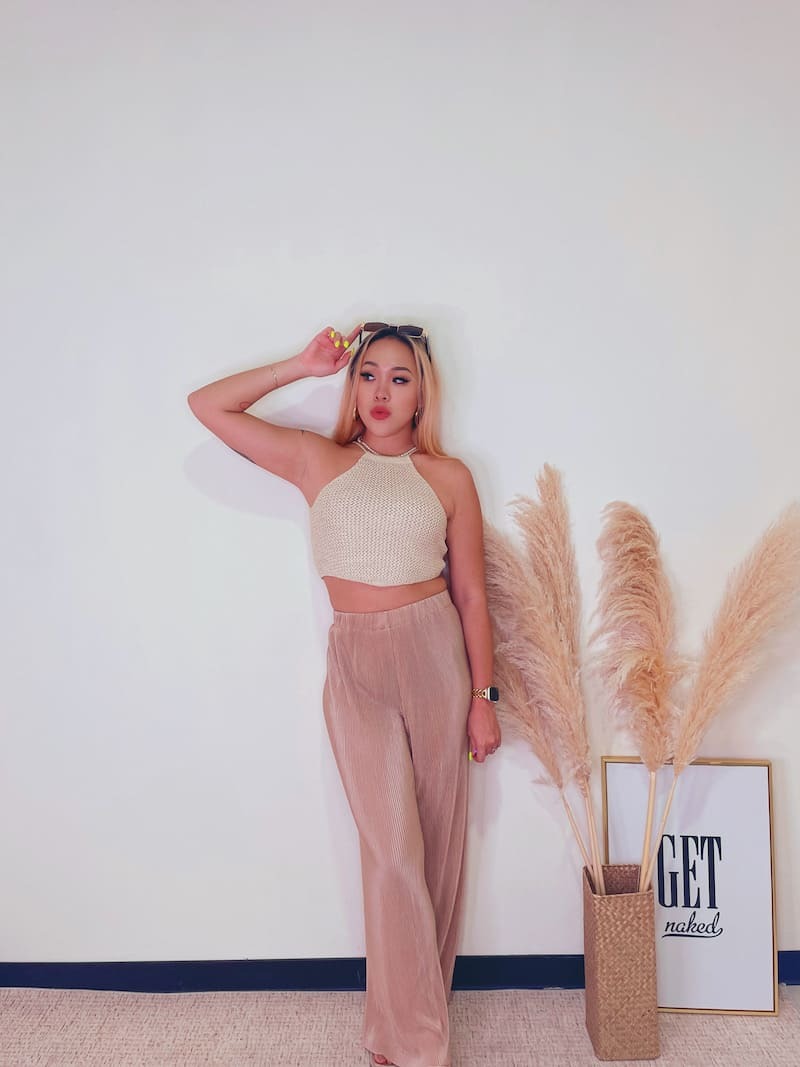百搭又好穿的皺摺褲,鬆緊高腰圍搭配直筒褲