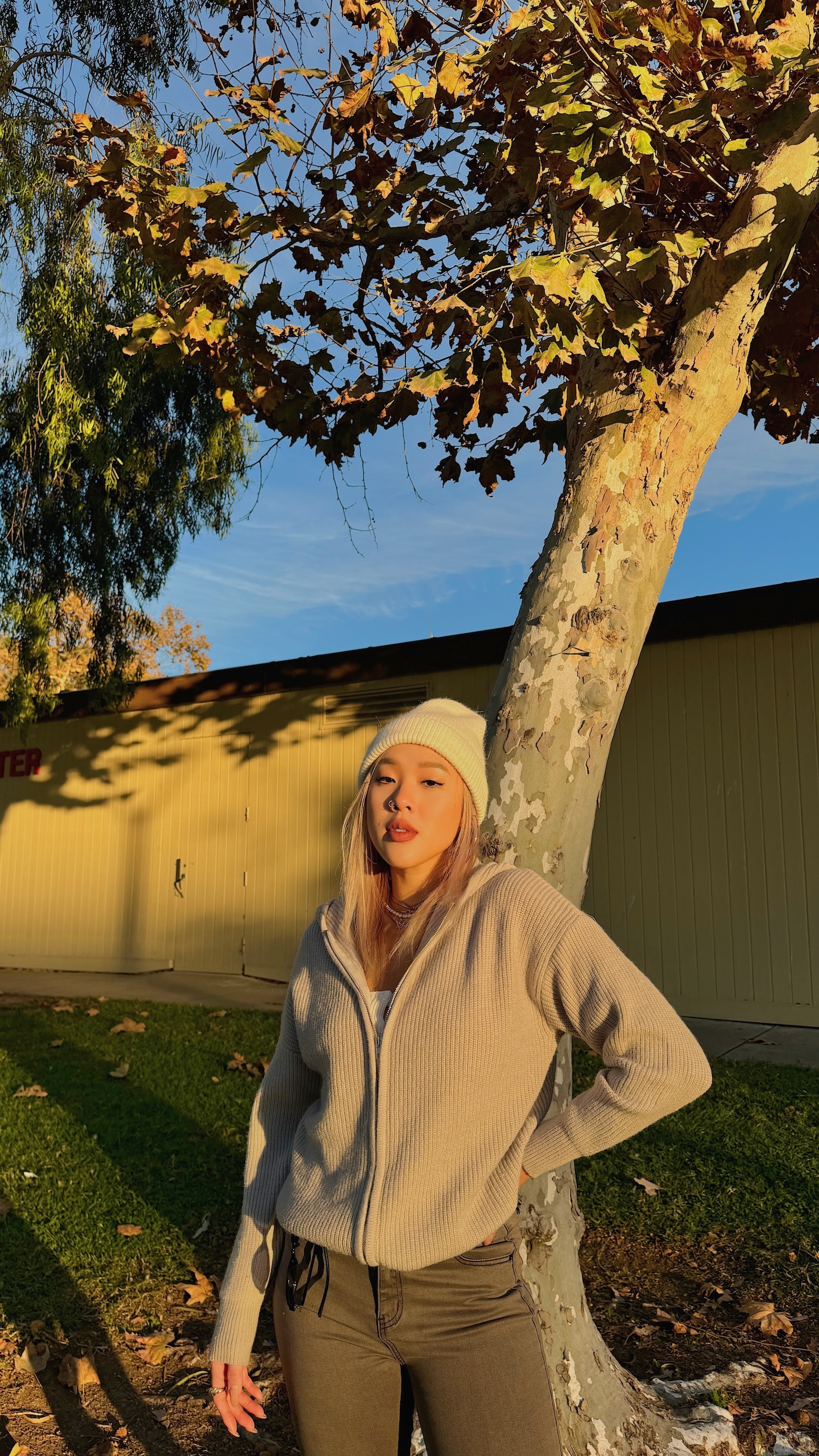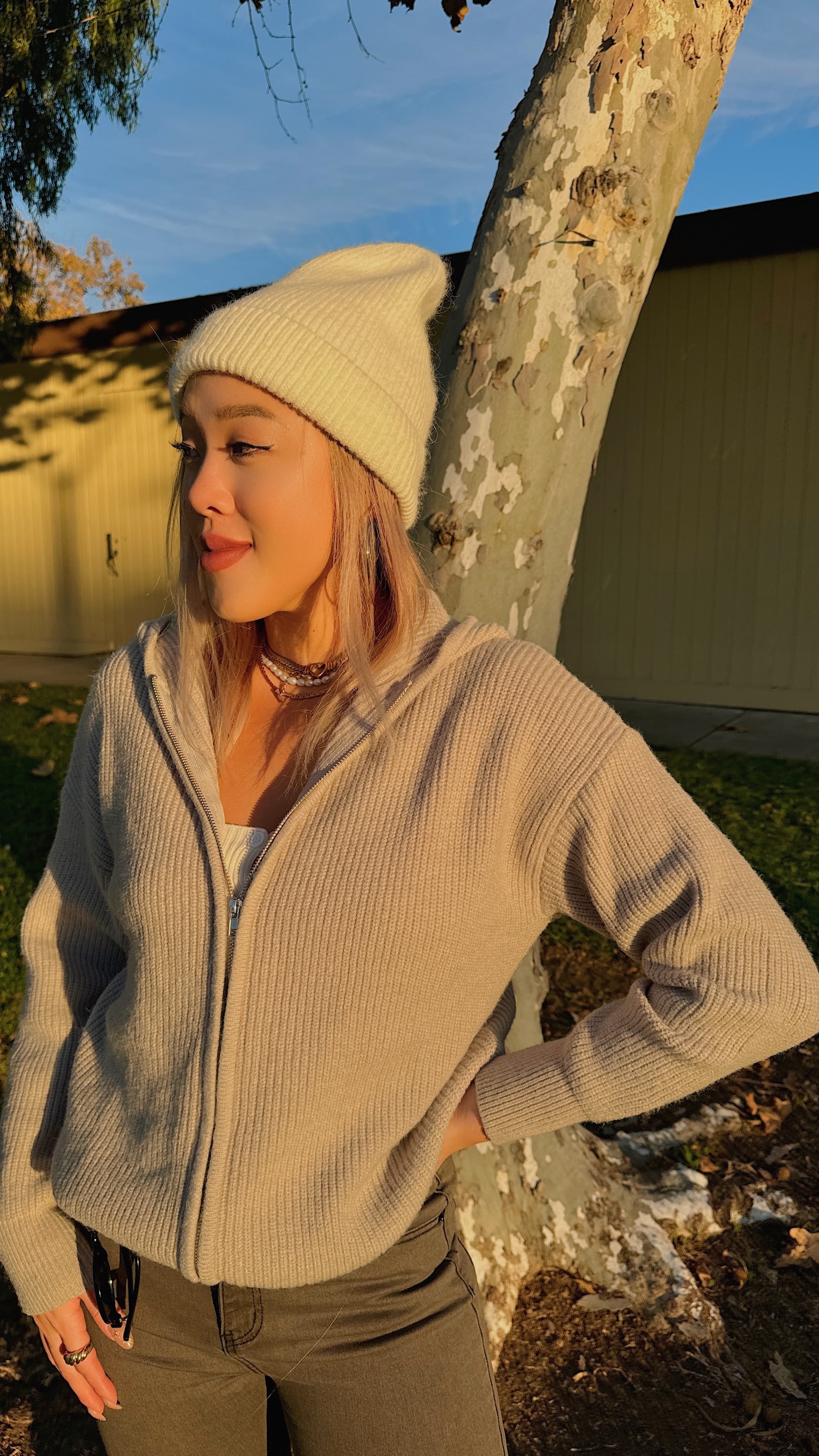百搭耐看的粗針織淺灰外套
