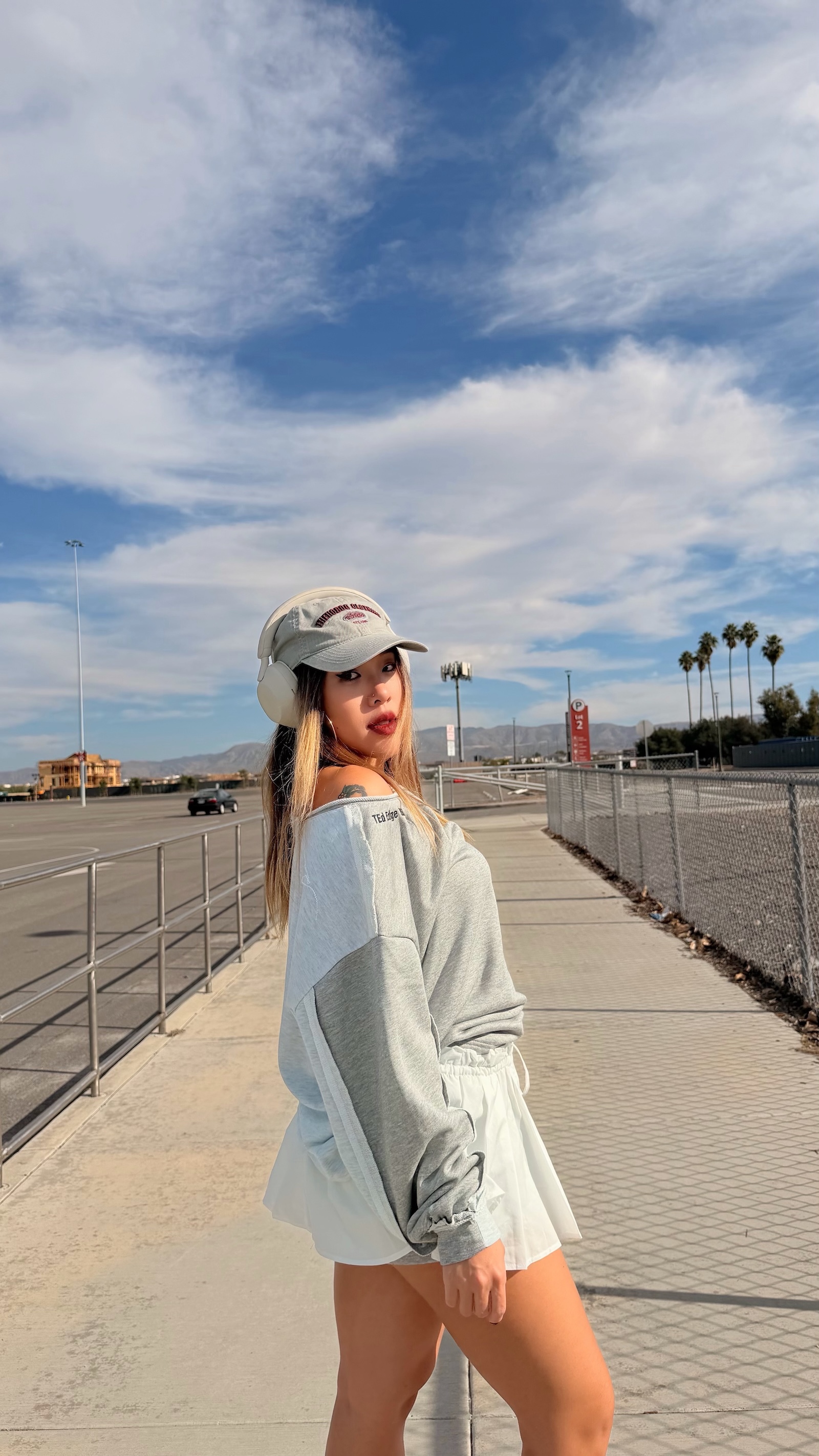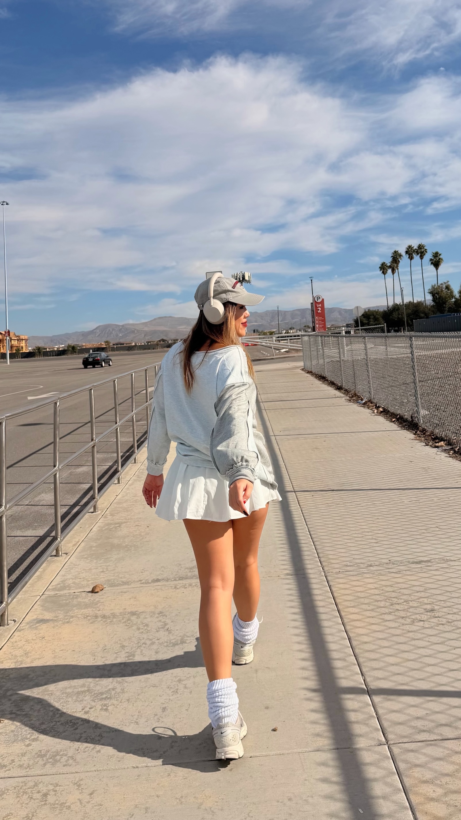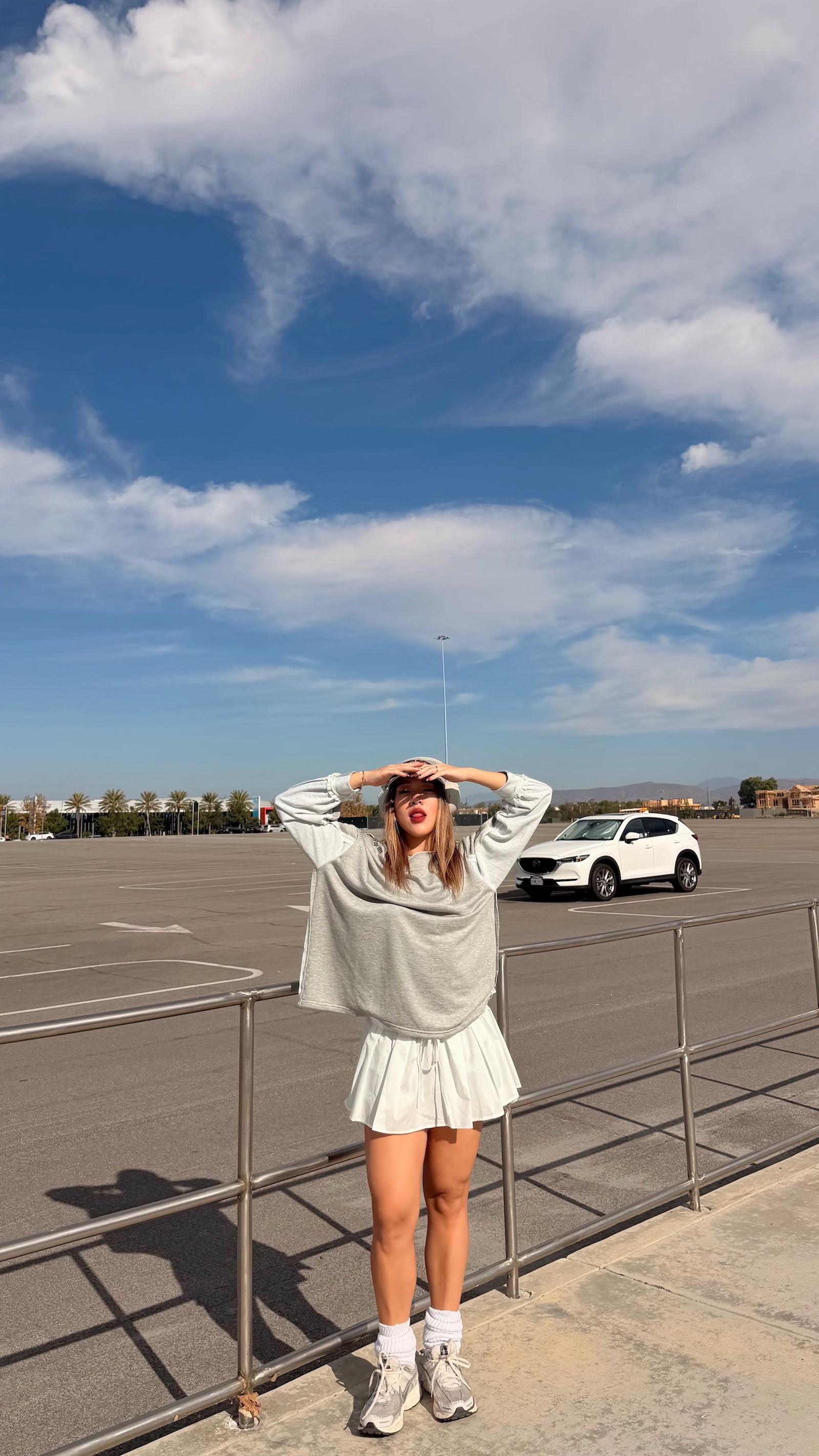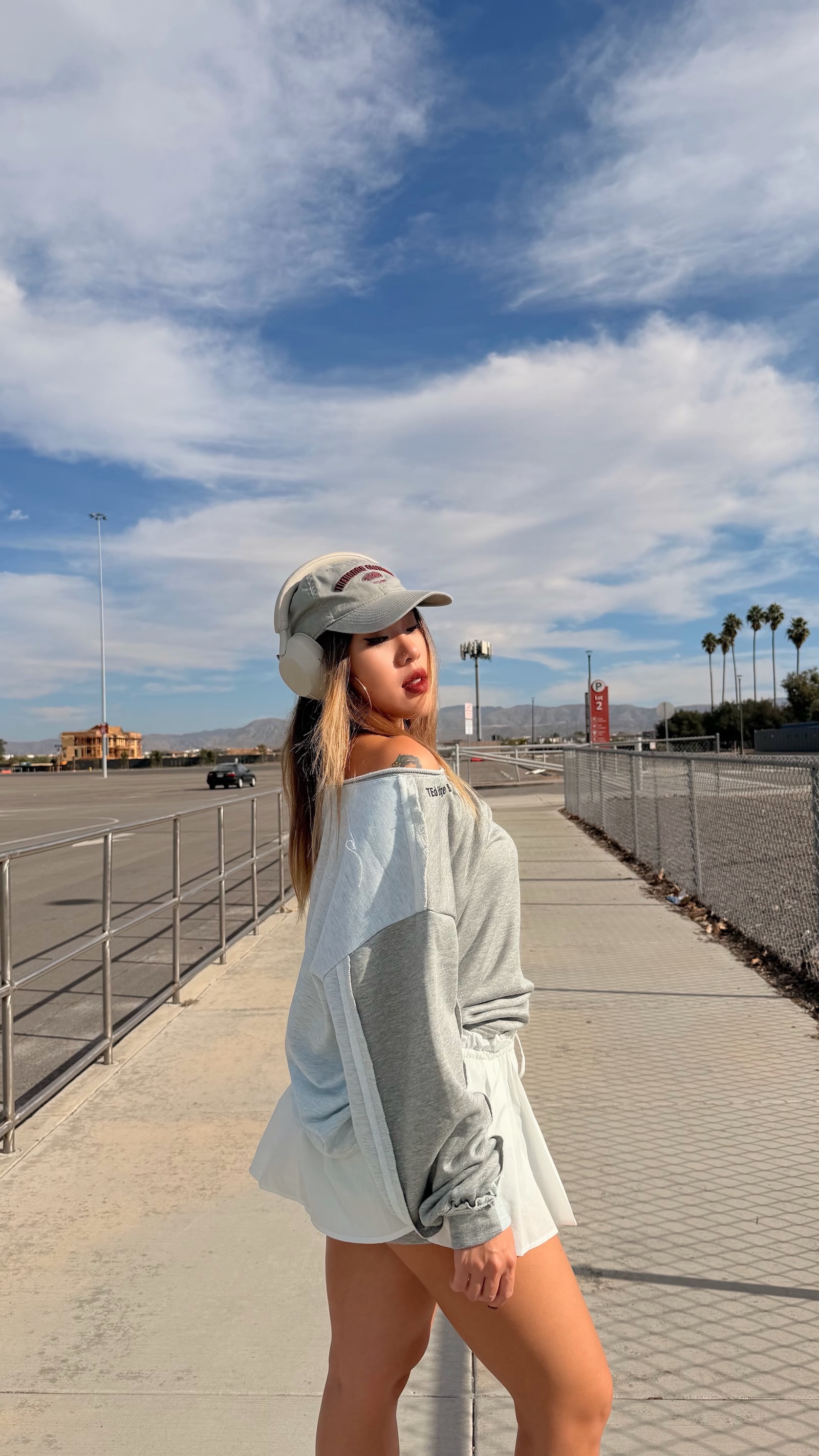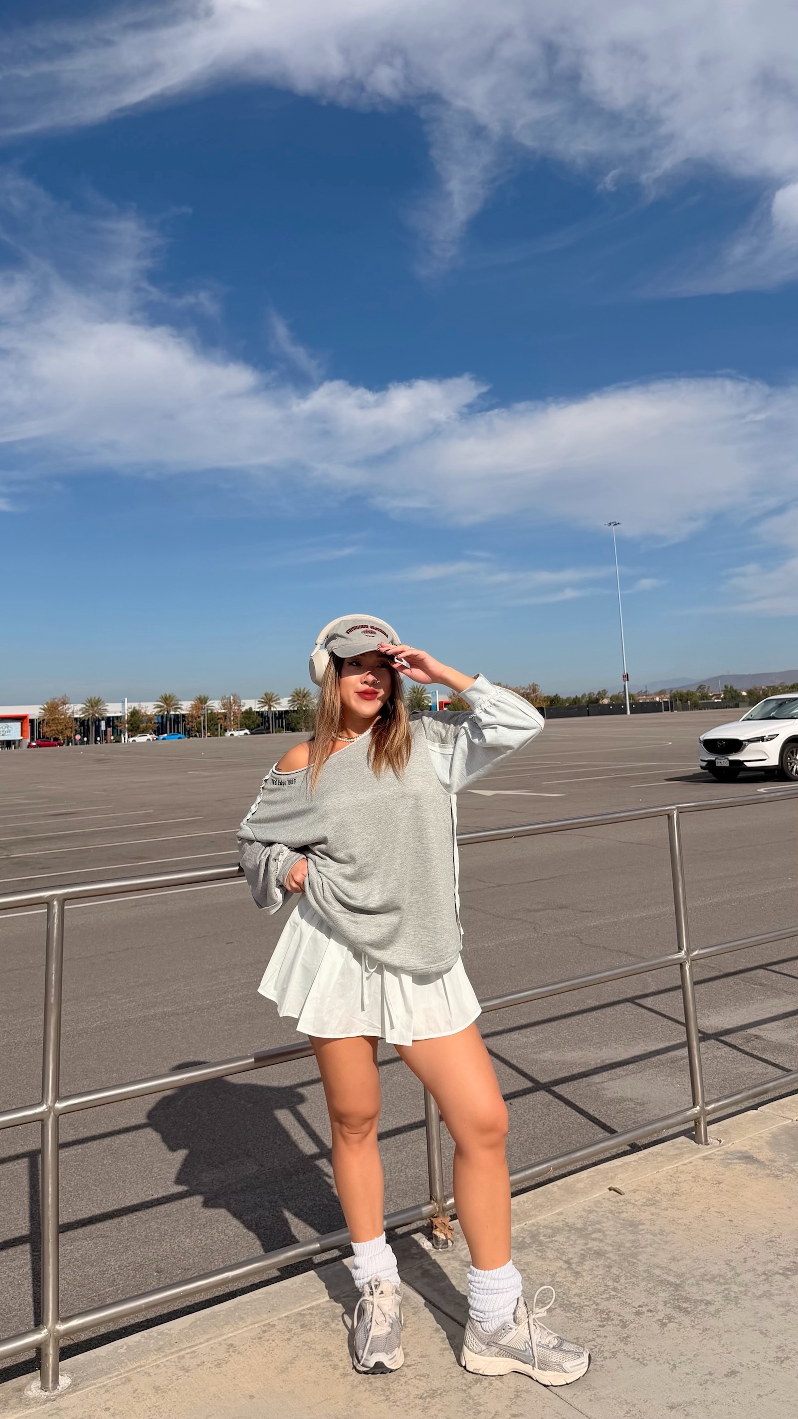 寬鬆搭配白色百褶裙,整套或分開搭都可以