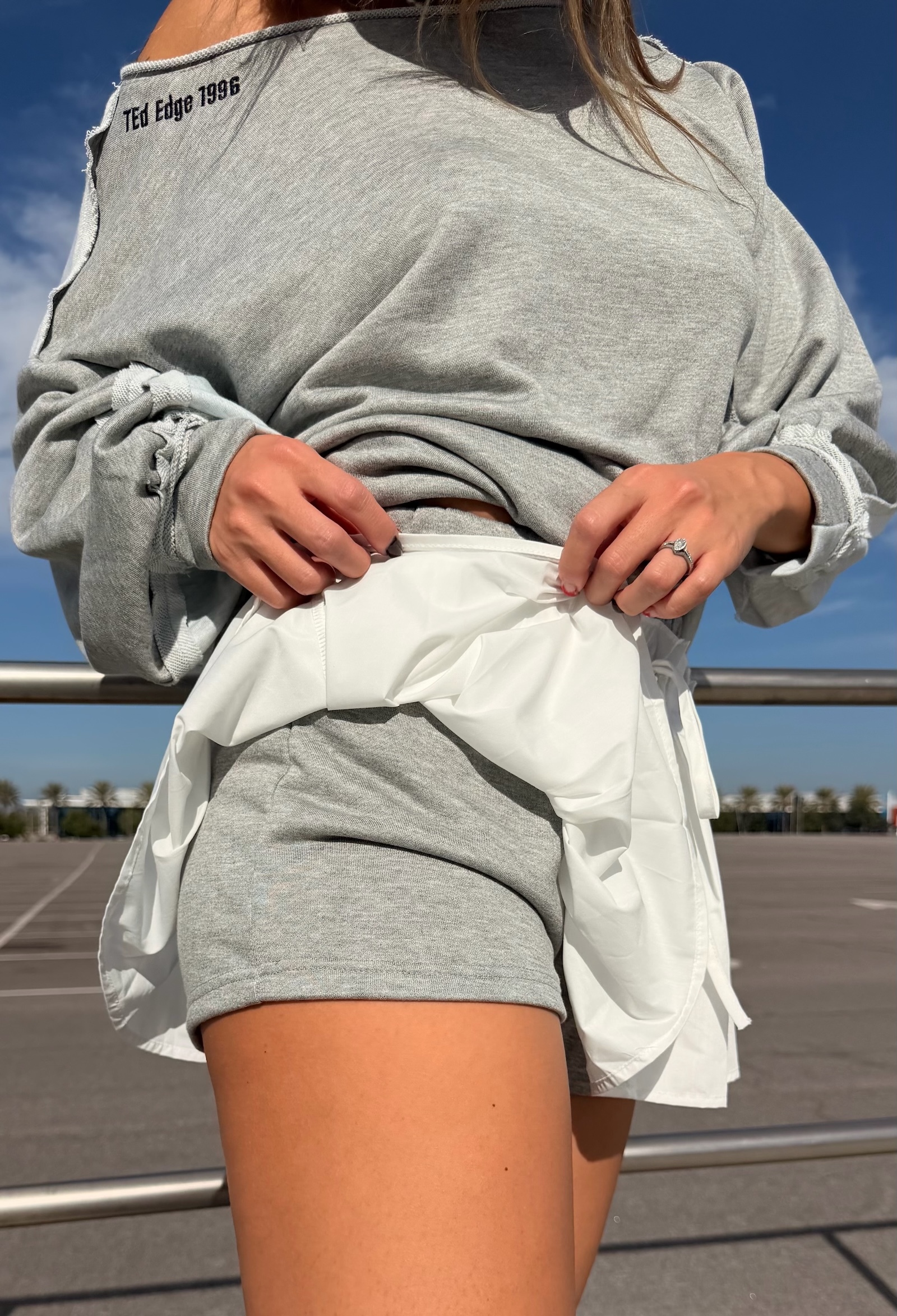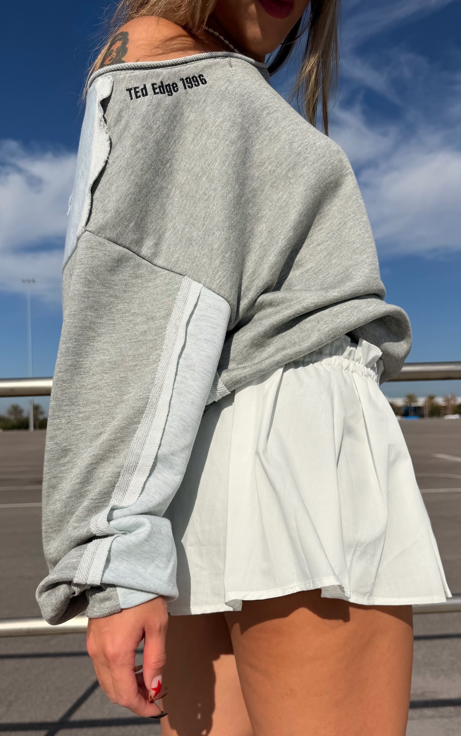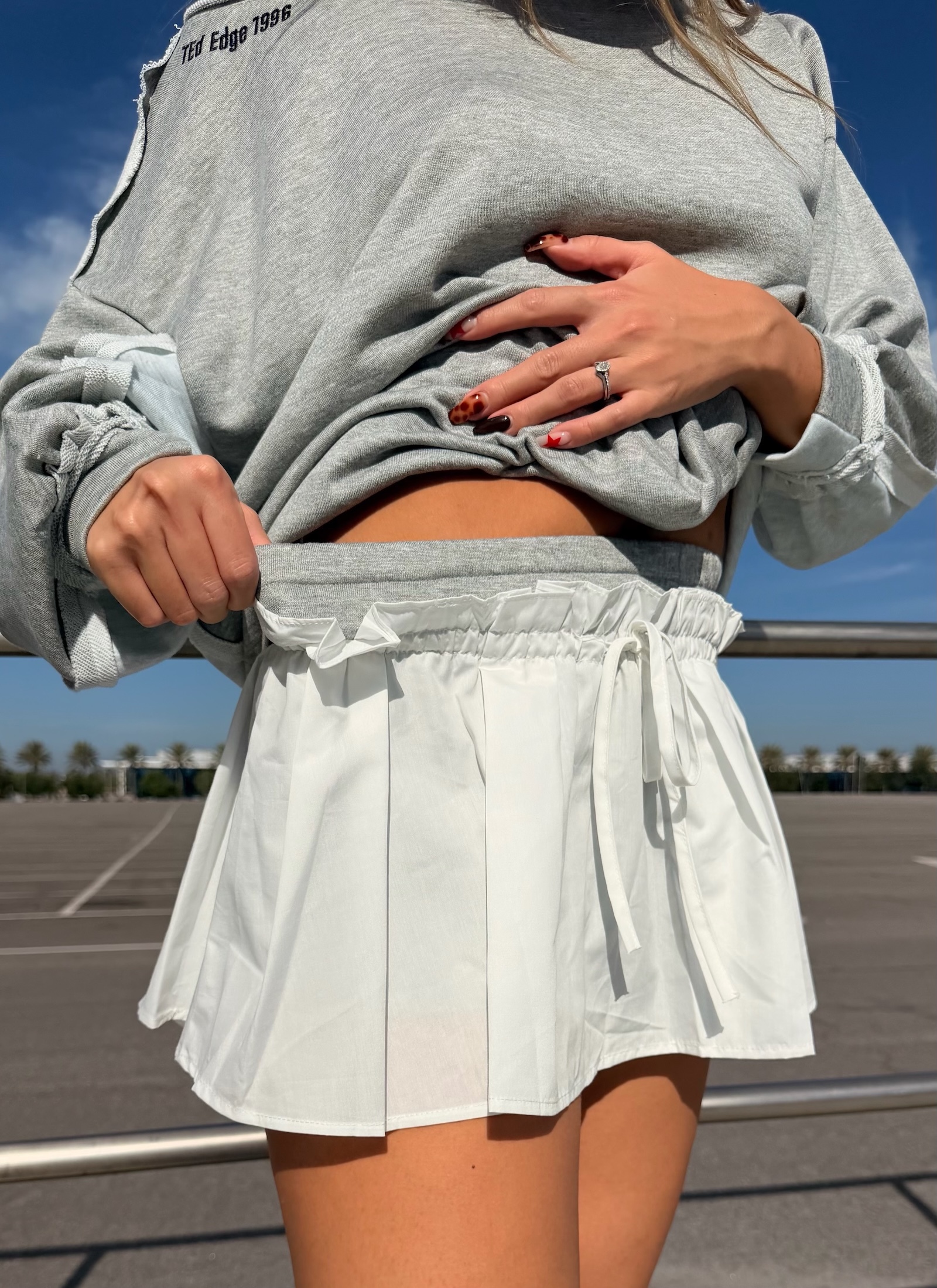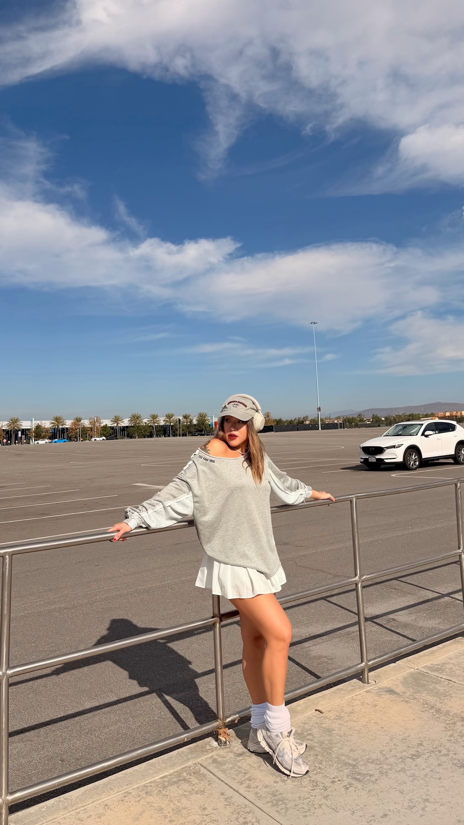 寬鬆搭配白色百褶裙,整套或分開搭都可以