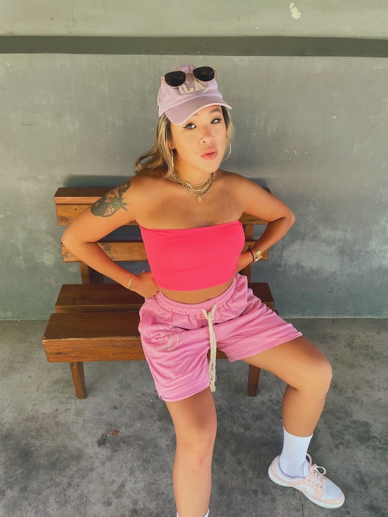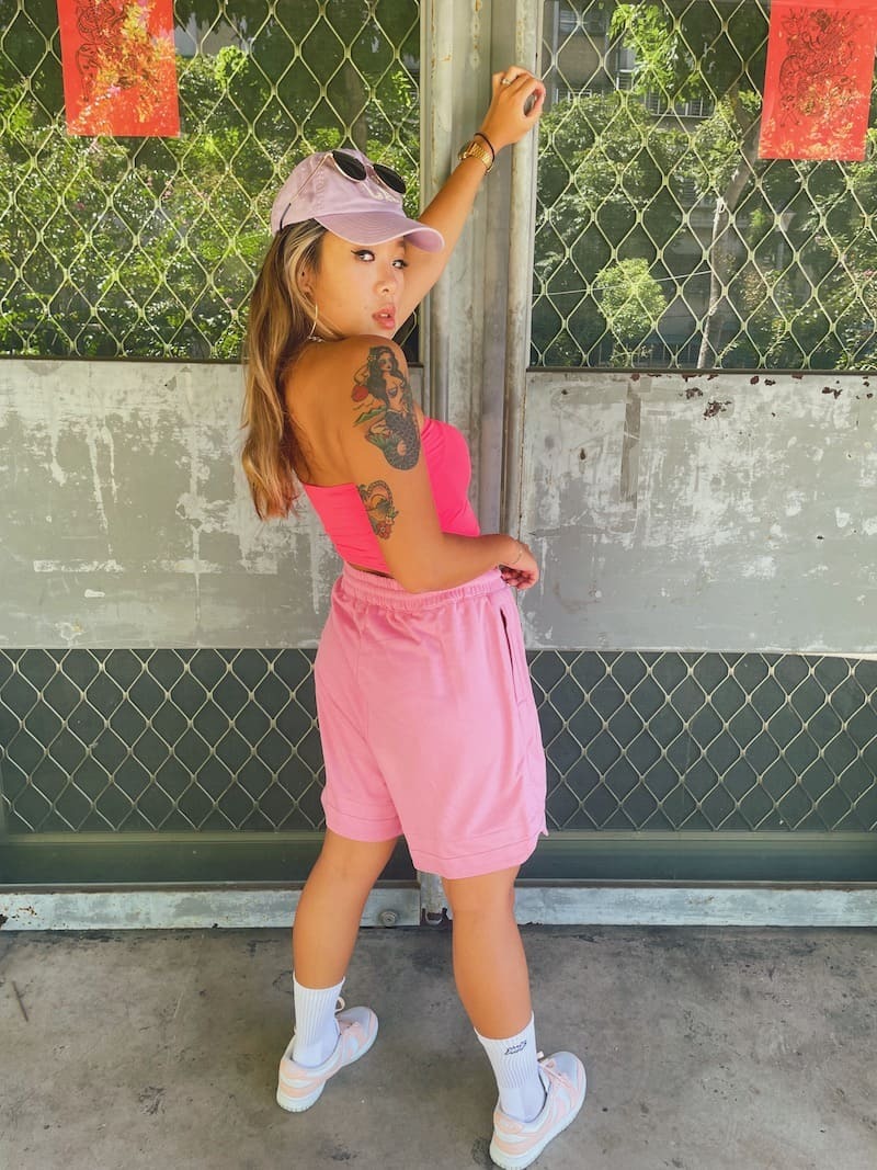 這件超可愛的粉色搭配帥氣的褲型,真的超好看