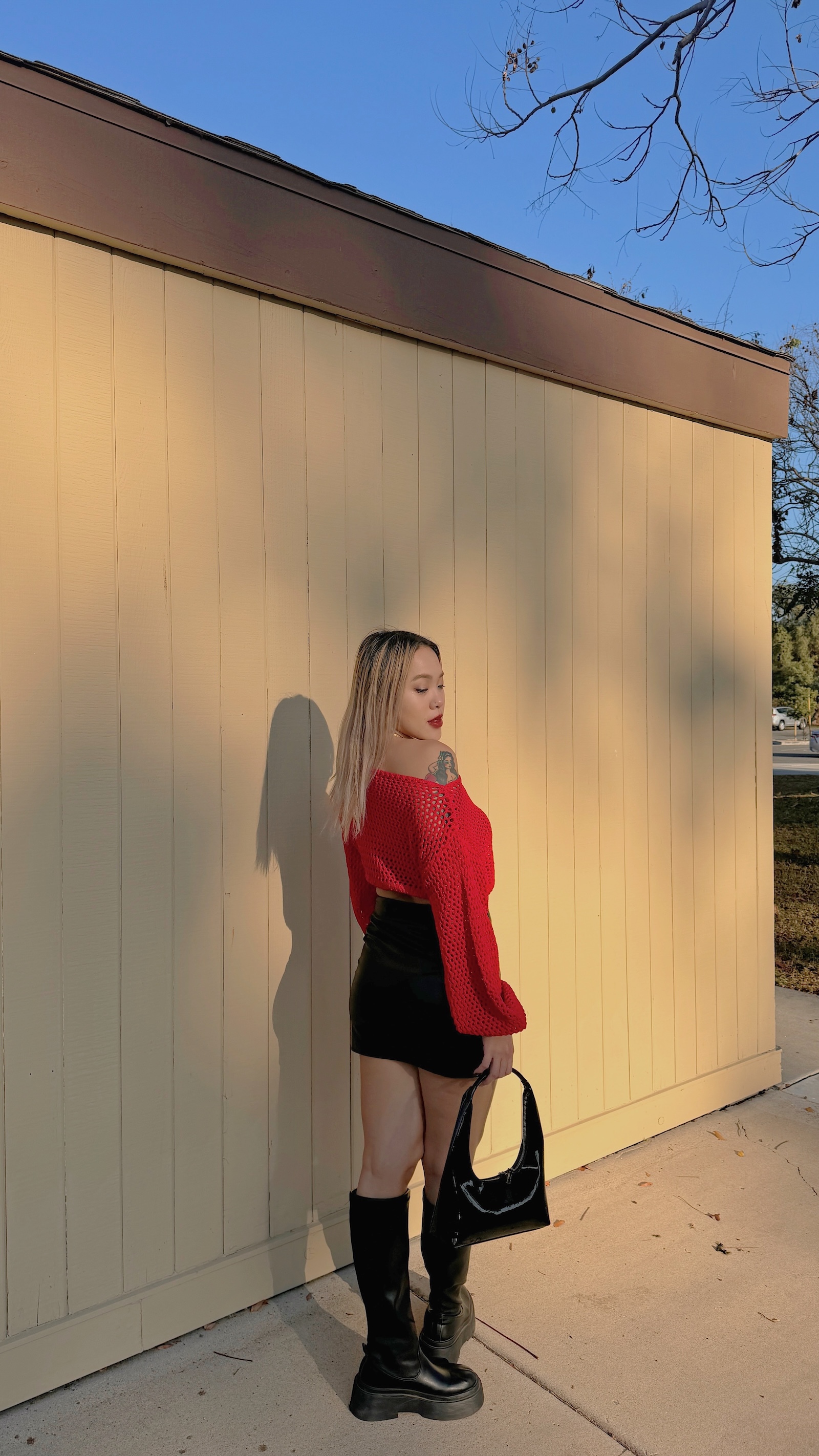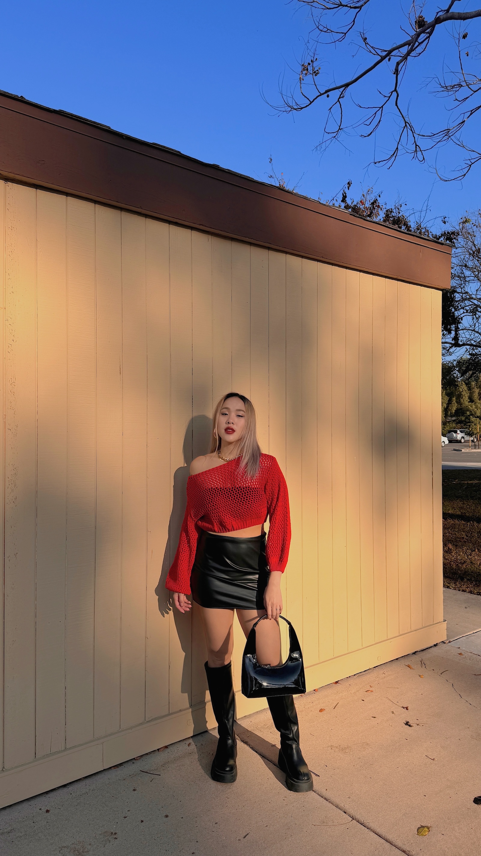 最愛的斜肩搭配下擺縮口