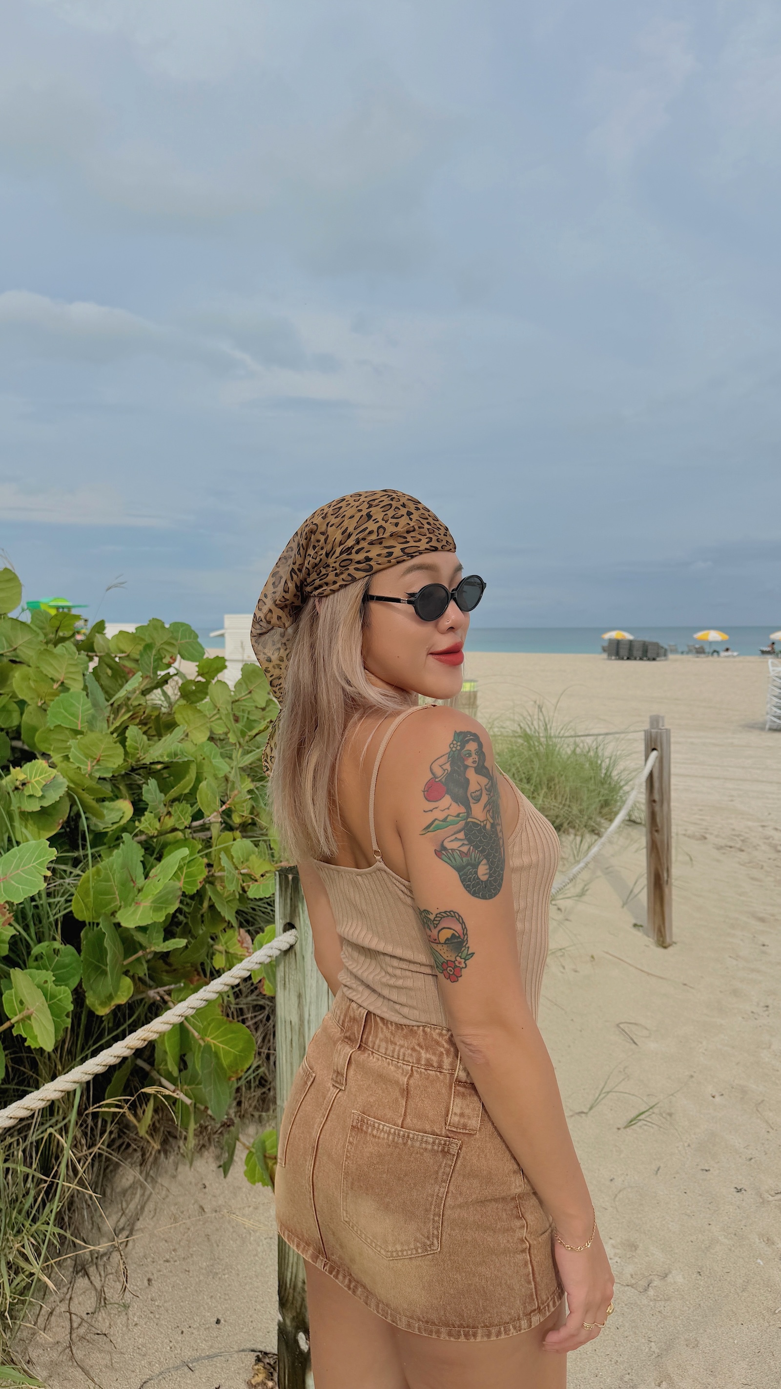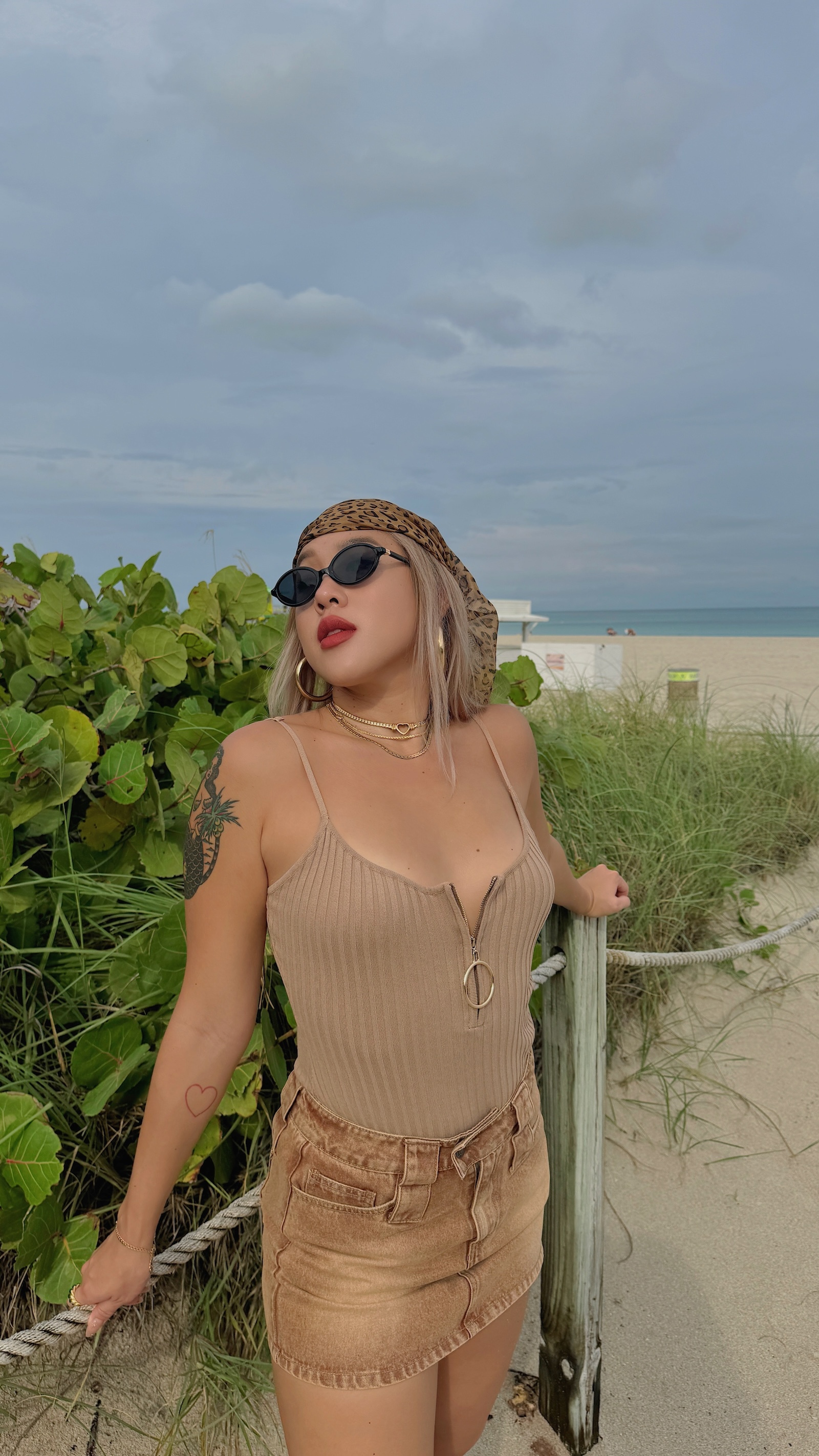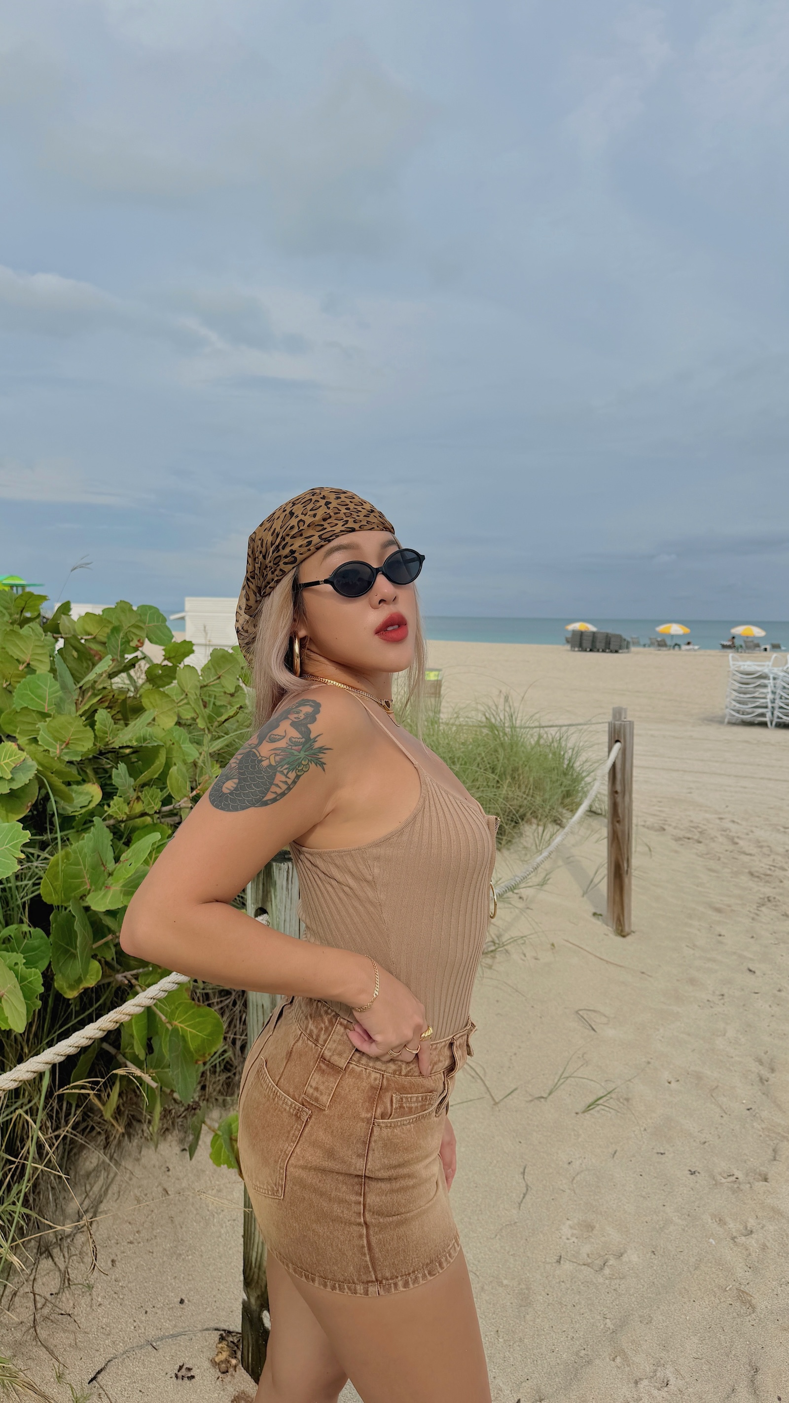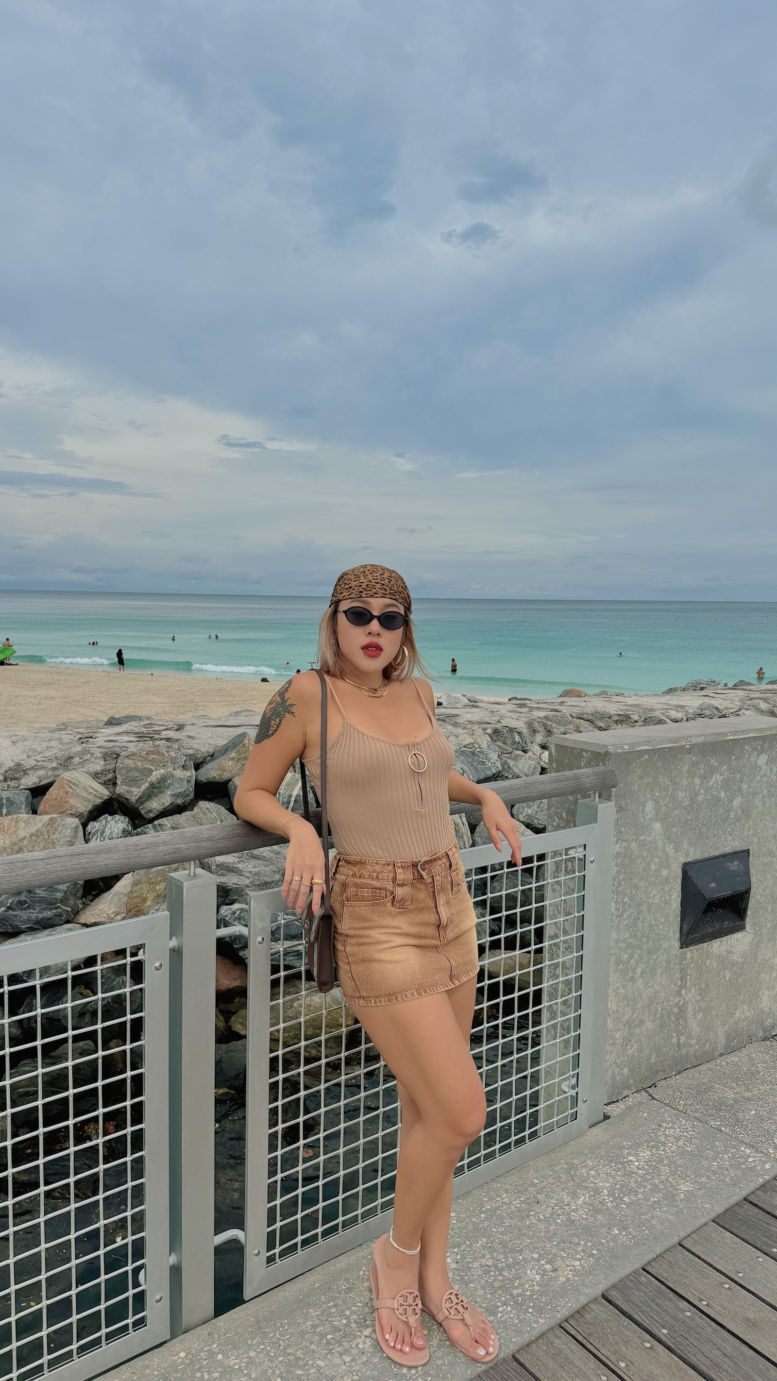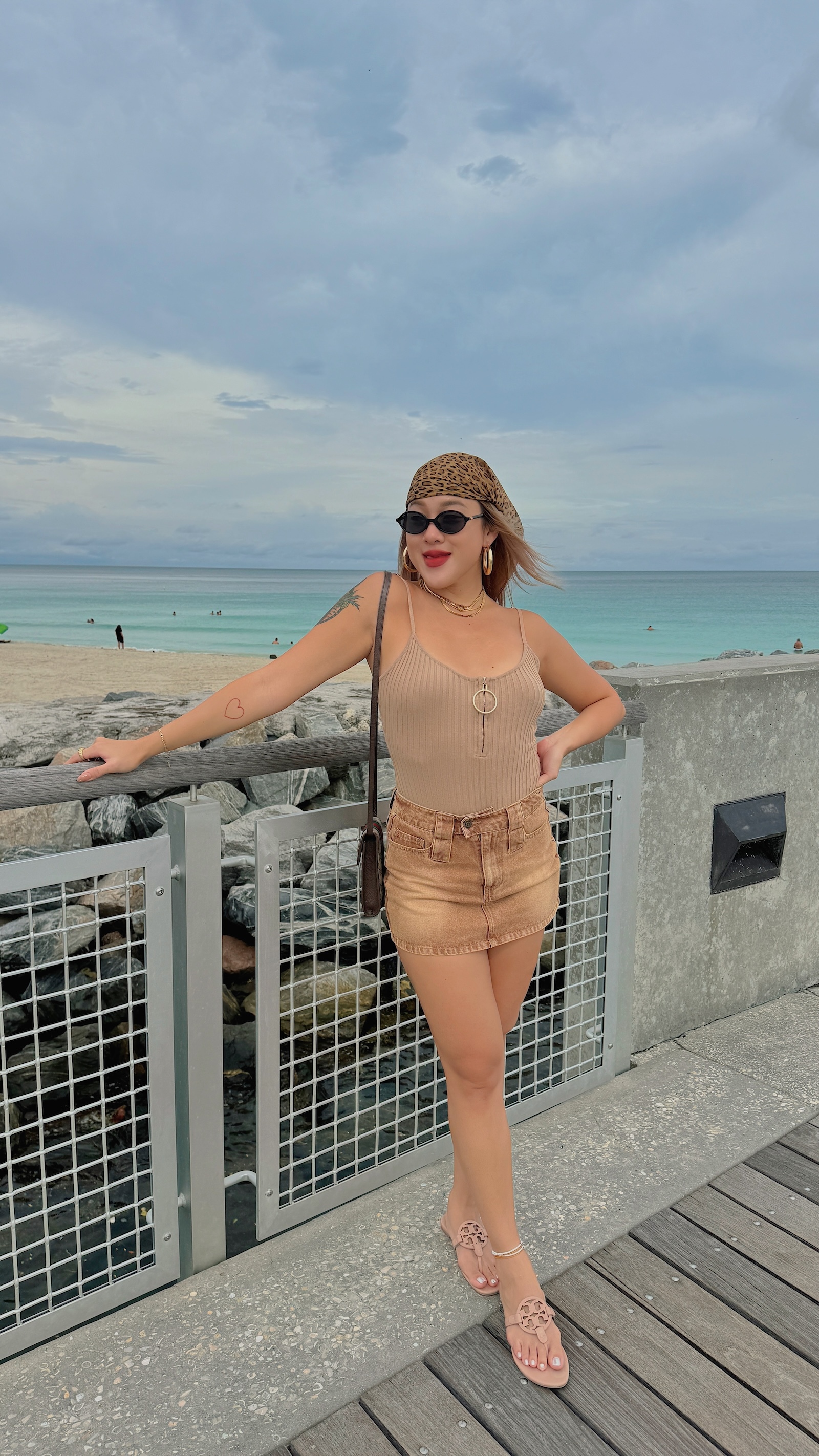 丹寧布料,內裡有短褲不用擔心曝光喔!