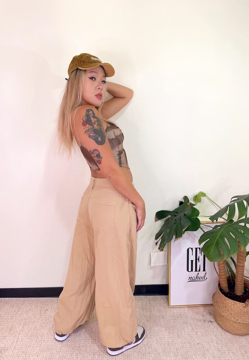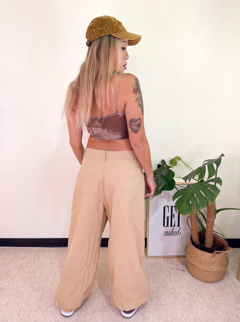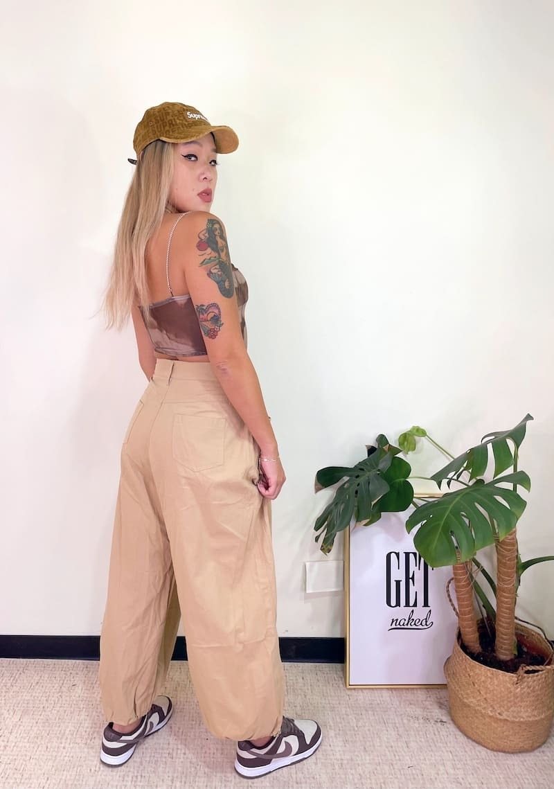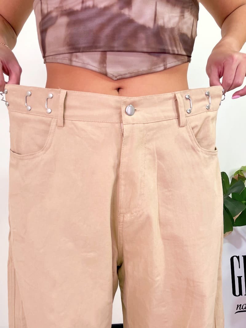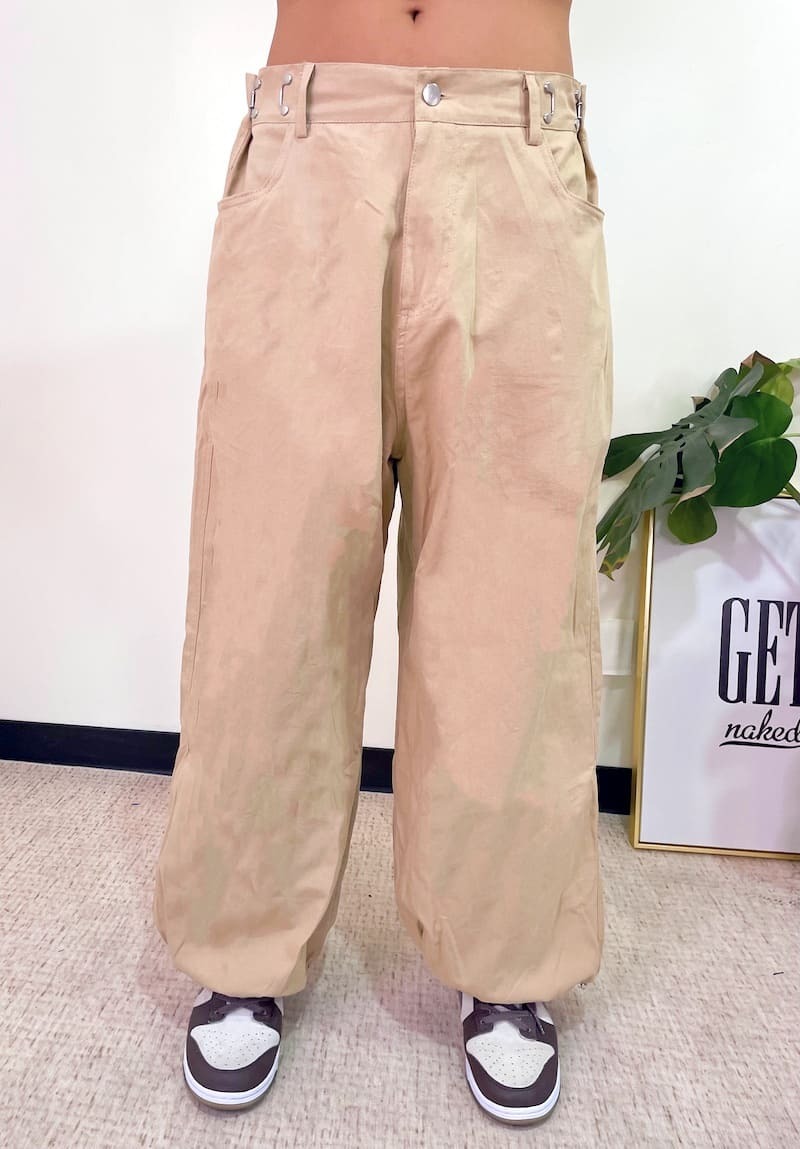 腰圍部分扣緊變高腰褲,不扣變嘻哈寬褲