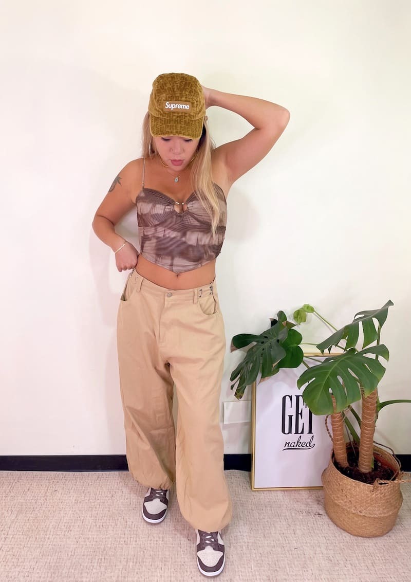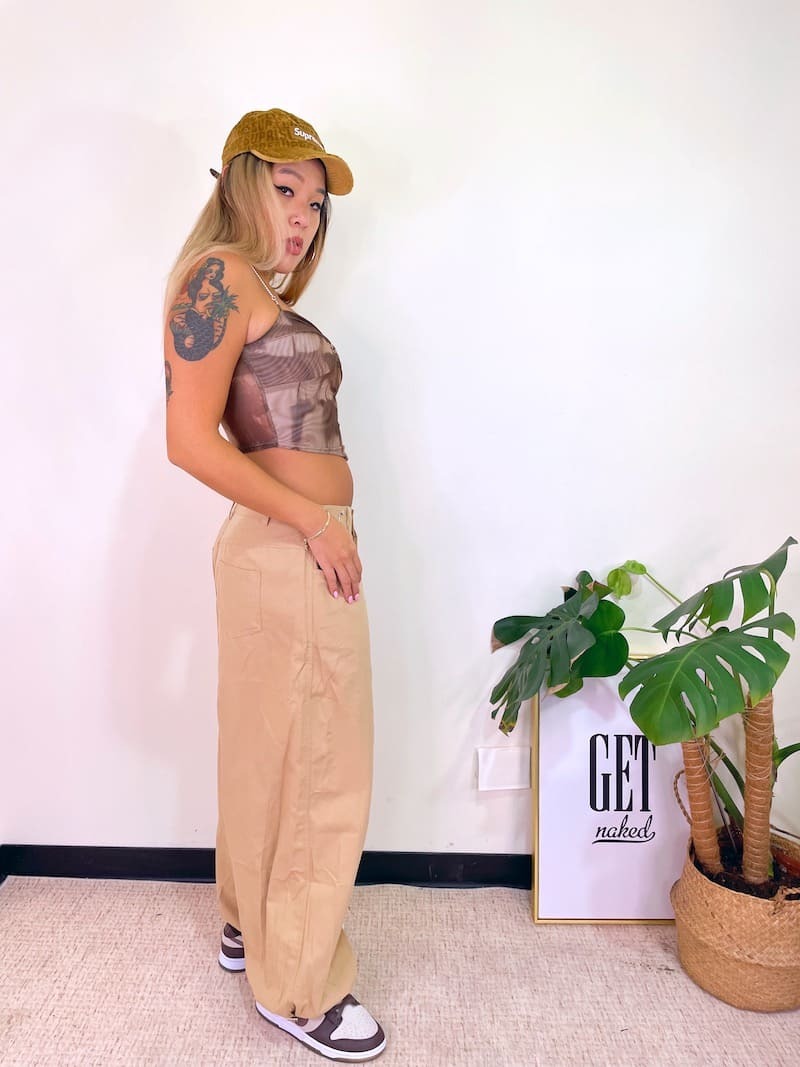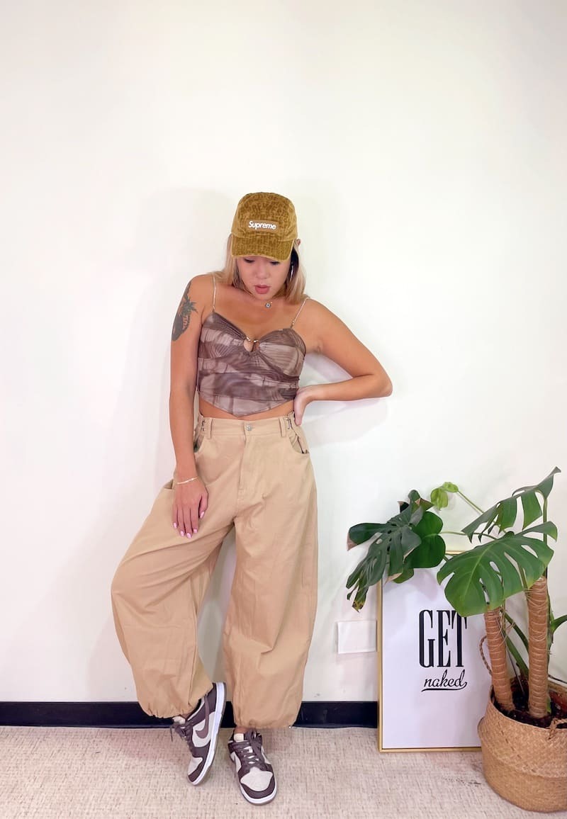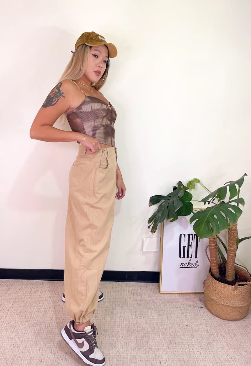 腰圍部分扣緊變高腰褲,不扣變嘻哈寬褲
