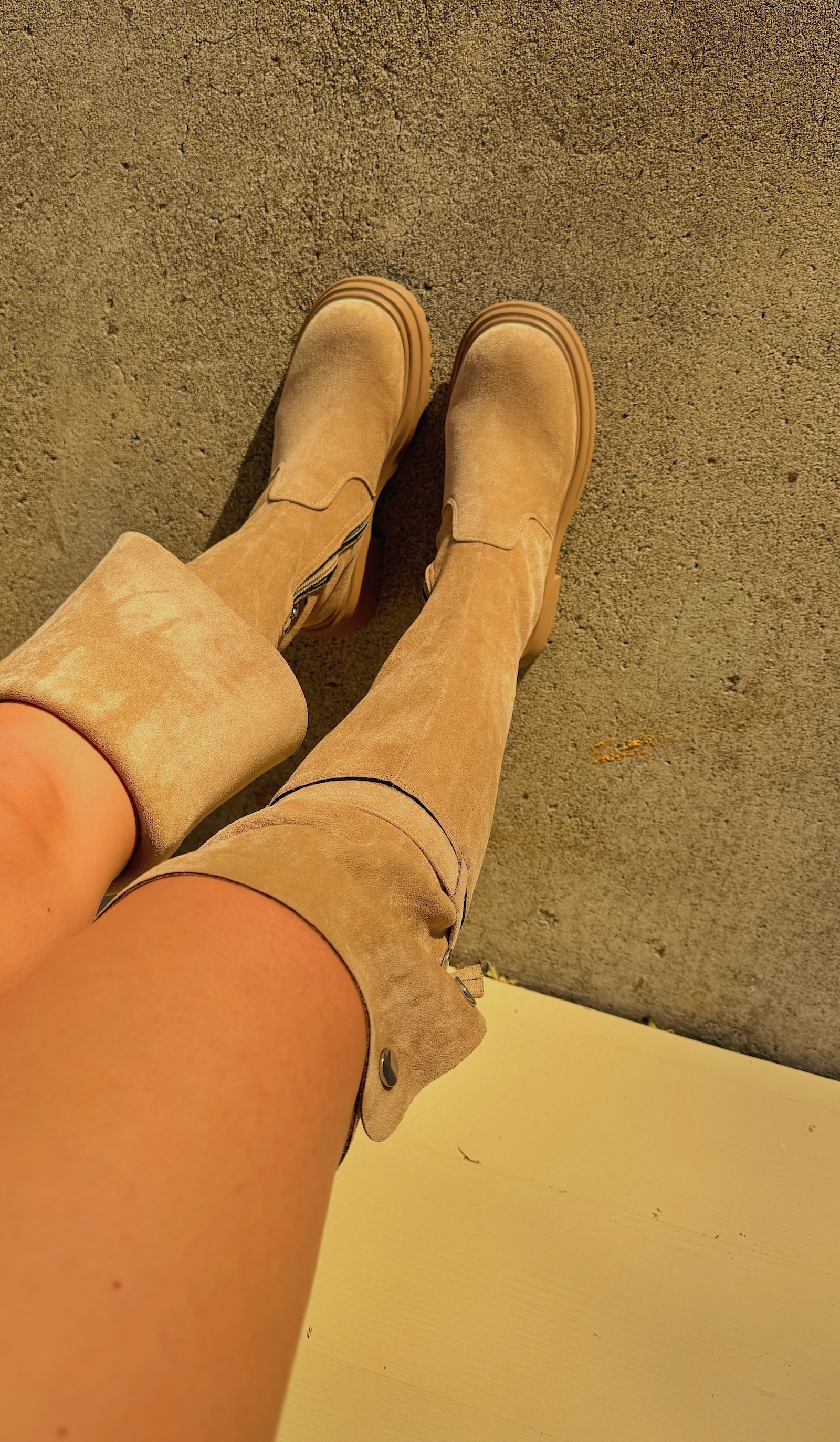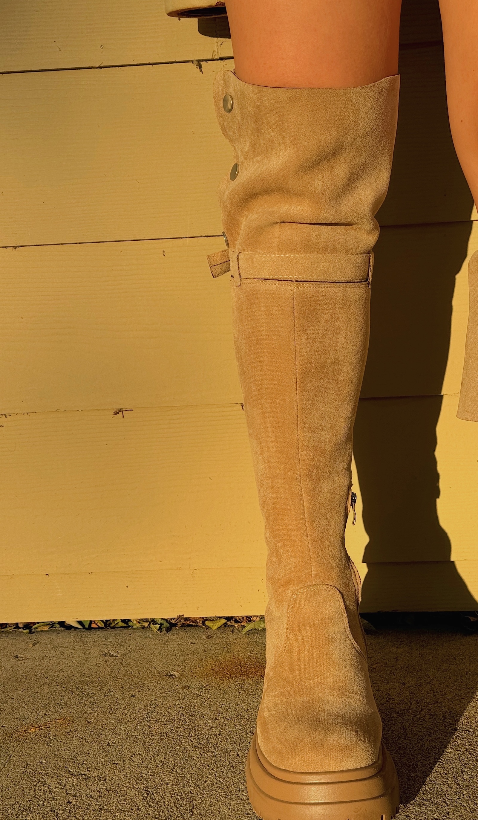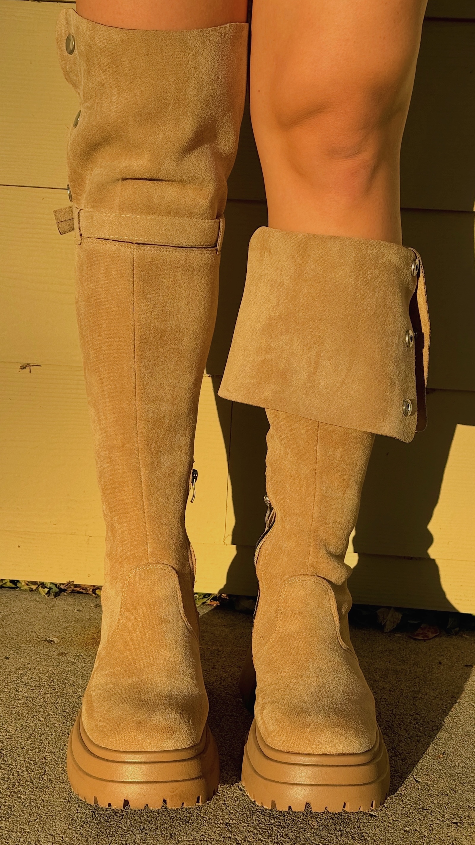 搭配過膝的排扣設計,反折下來變成膝下靴