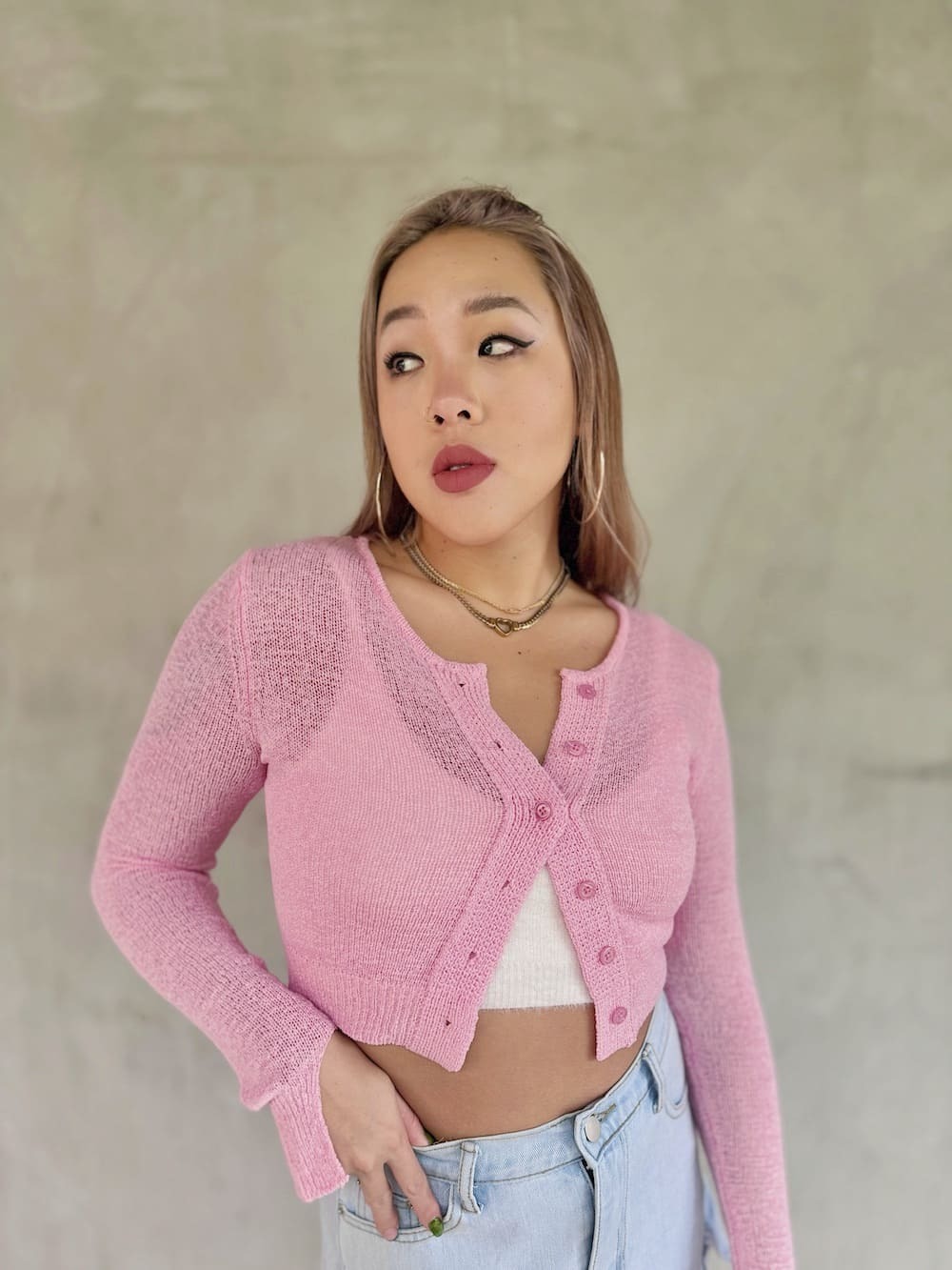 穿起來溫暖美的粉色罩衫💗