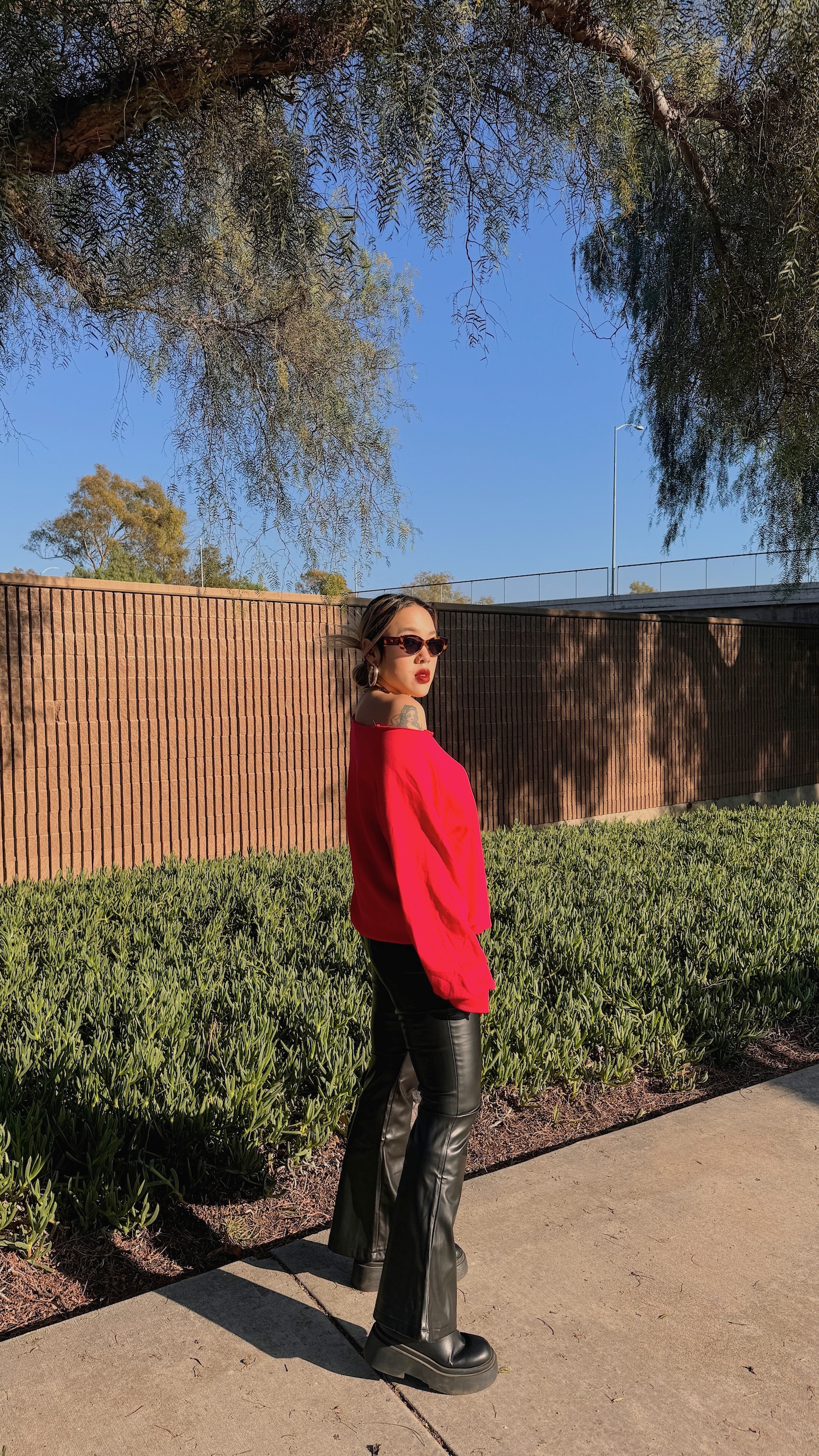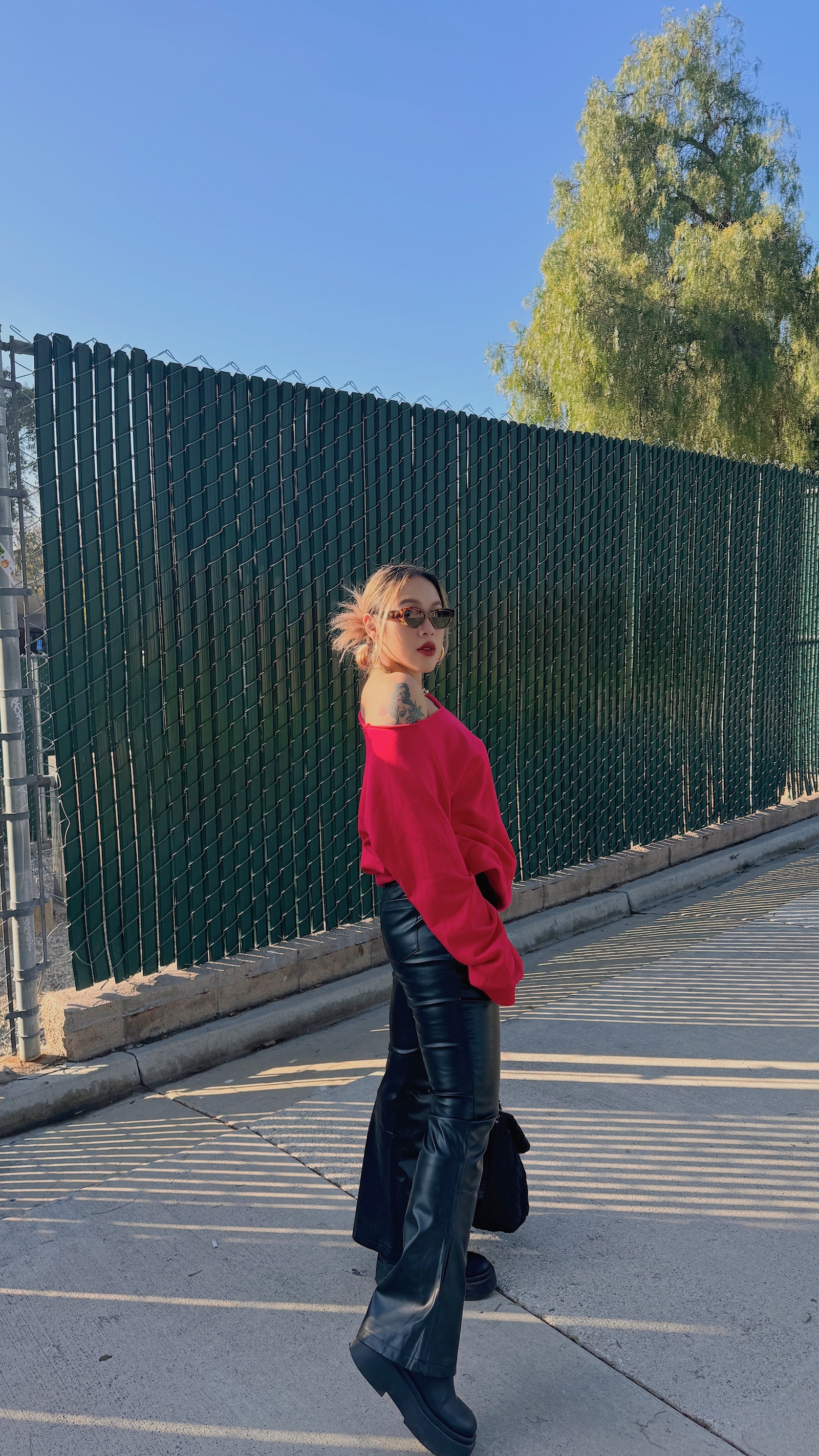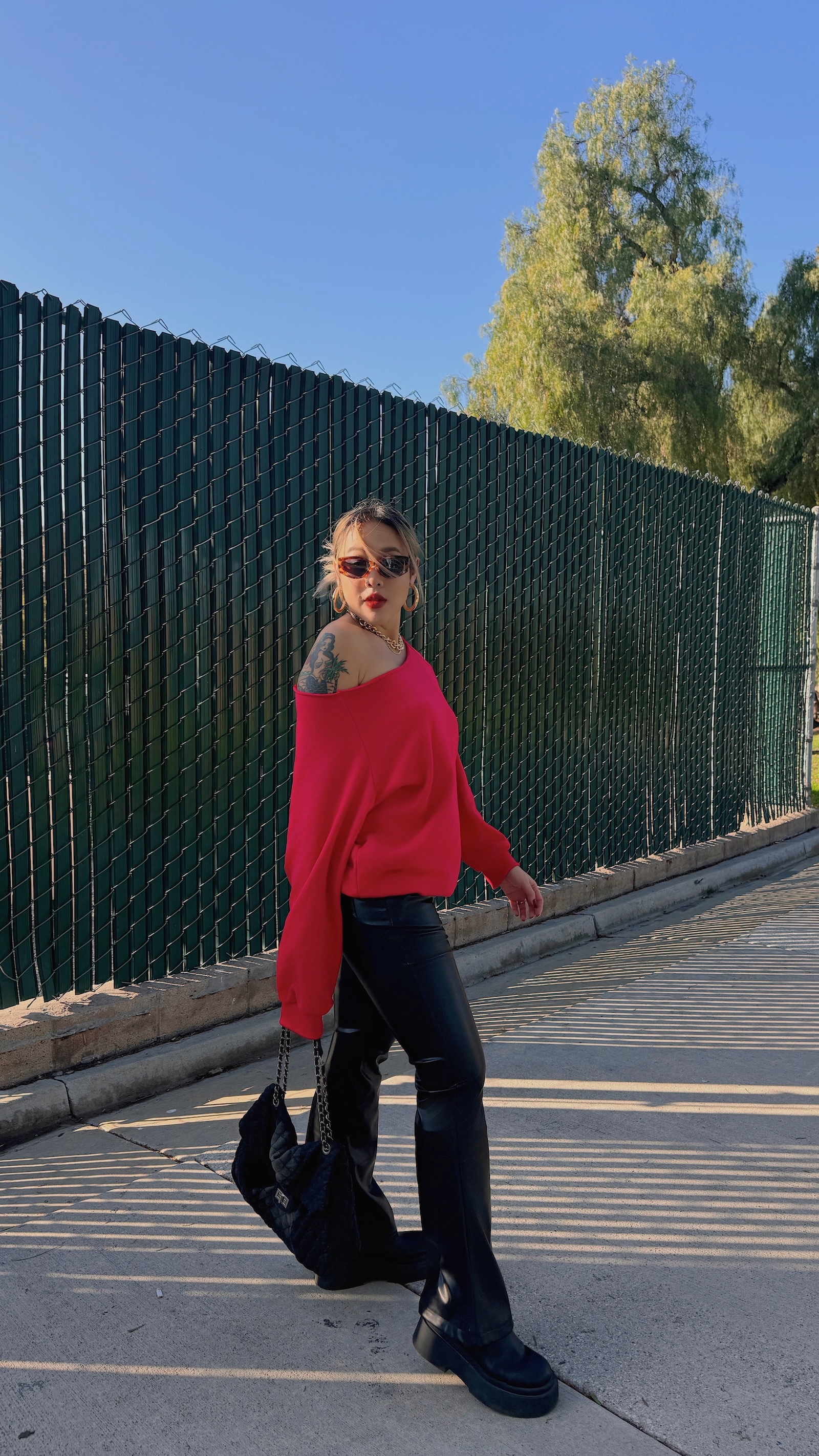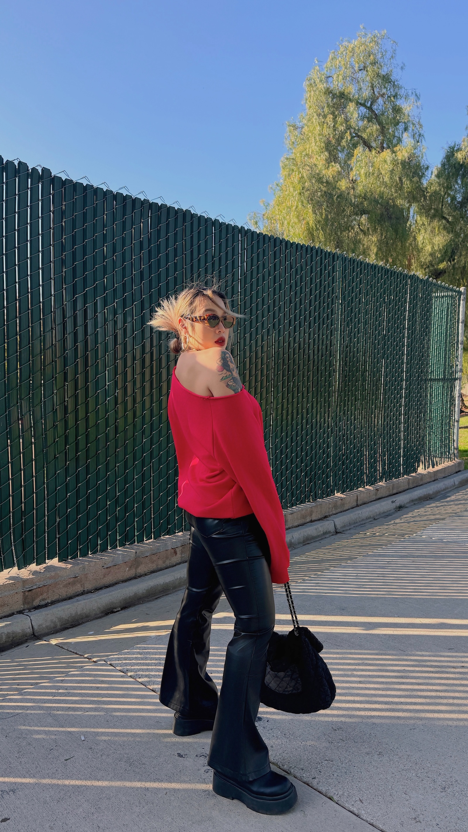 皮質搭配喇叭褲根本就是神物😍