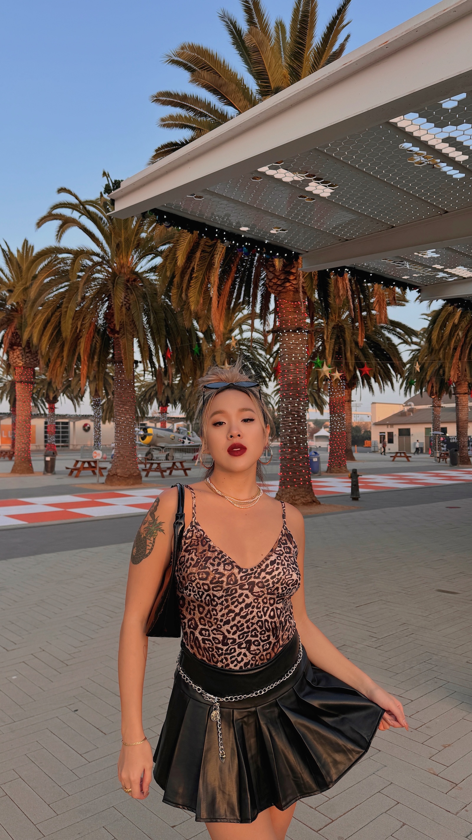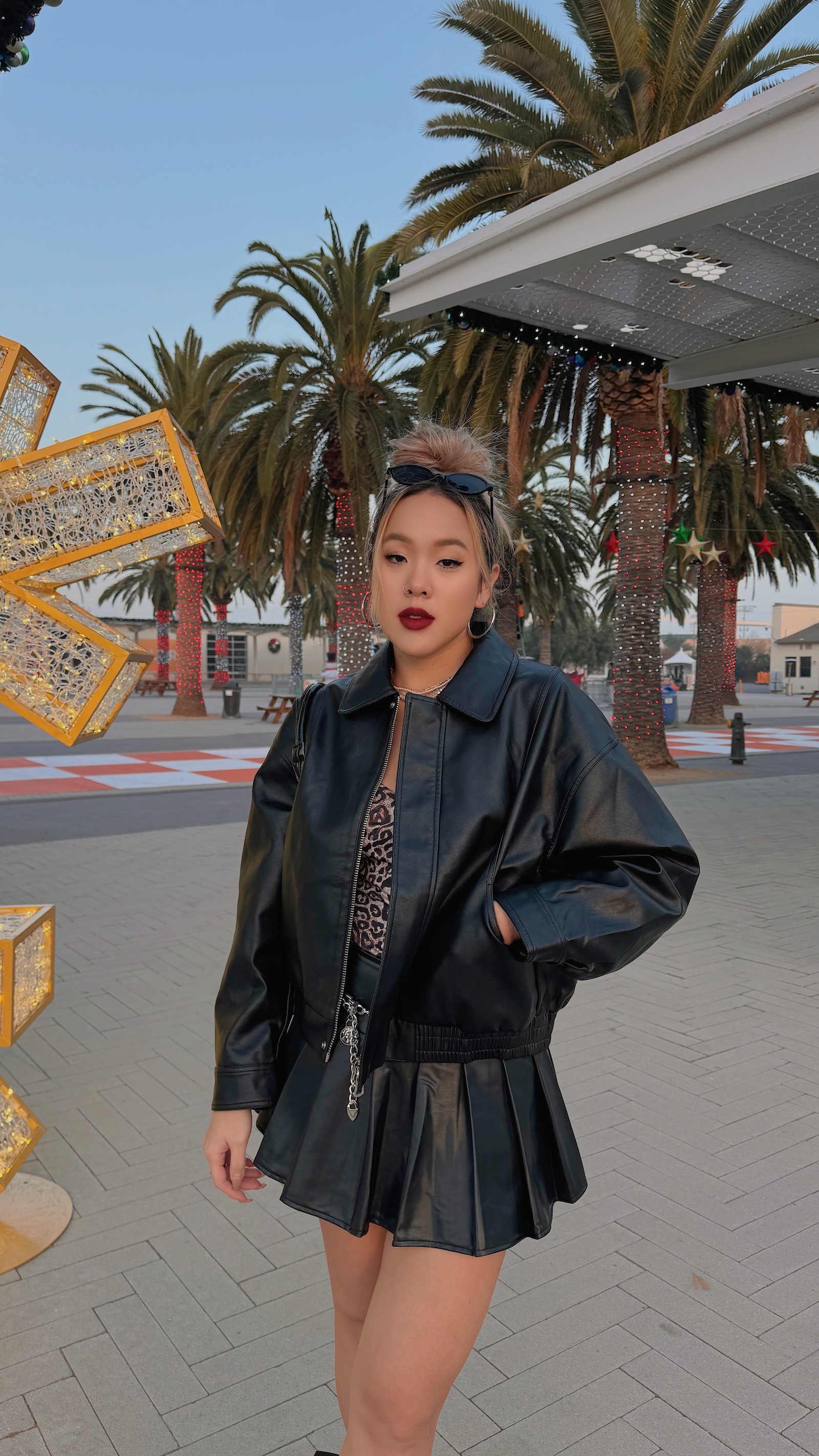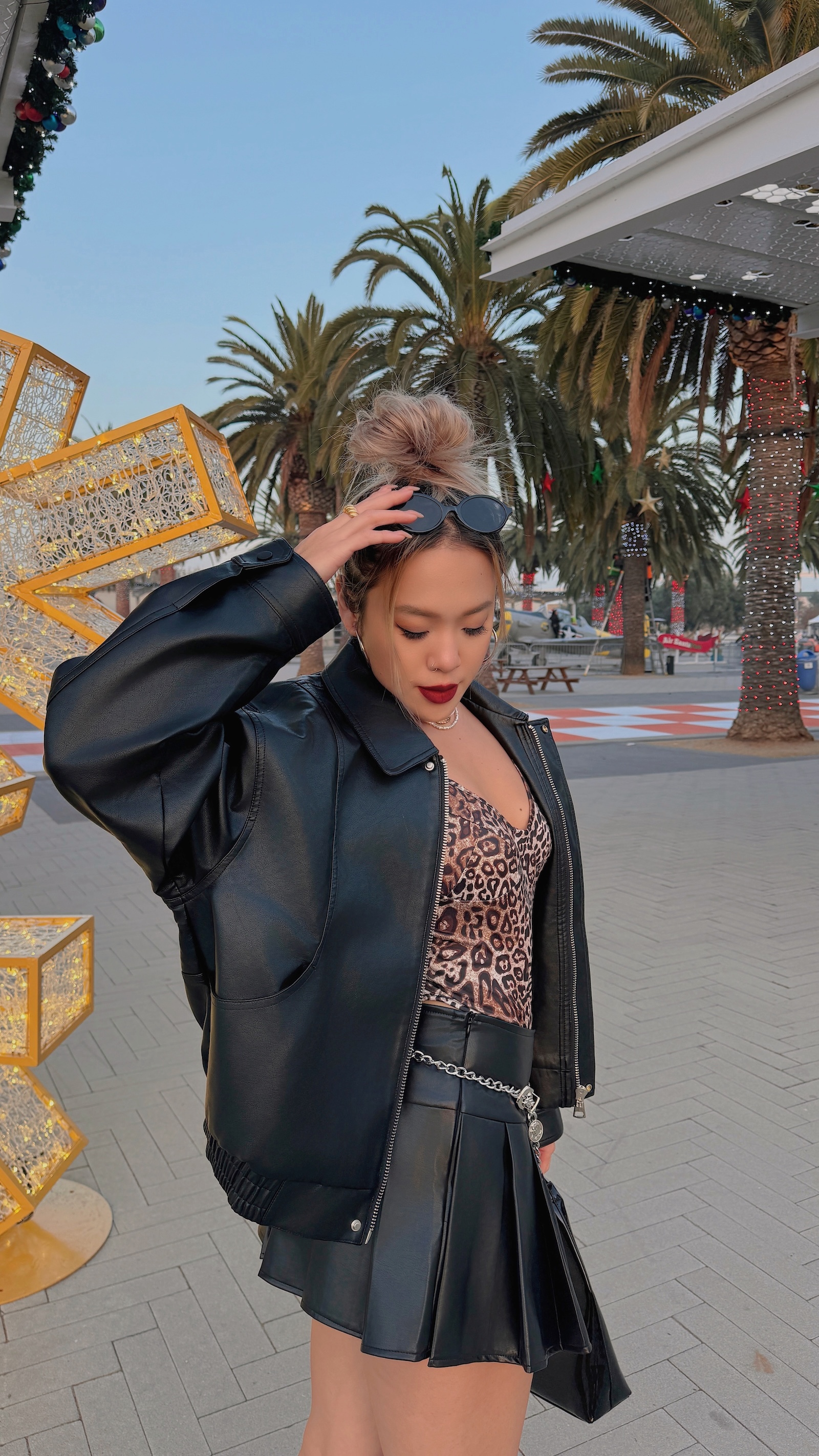 皮質感百褶裙更是讚!多了皮質的個性