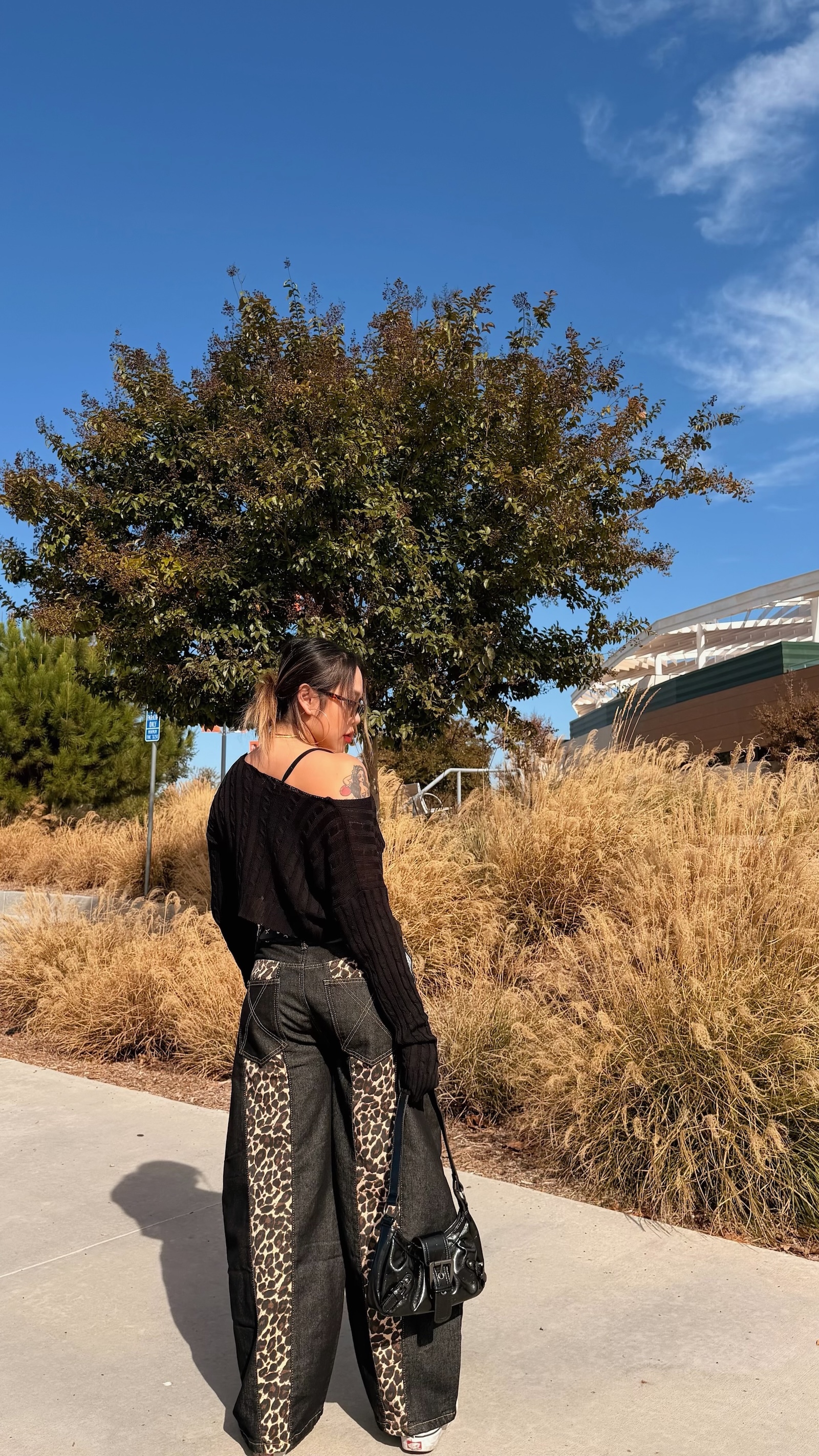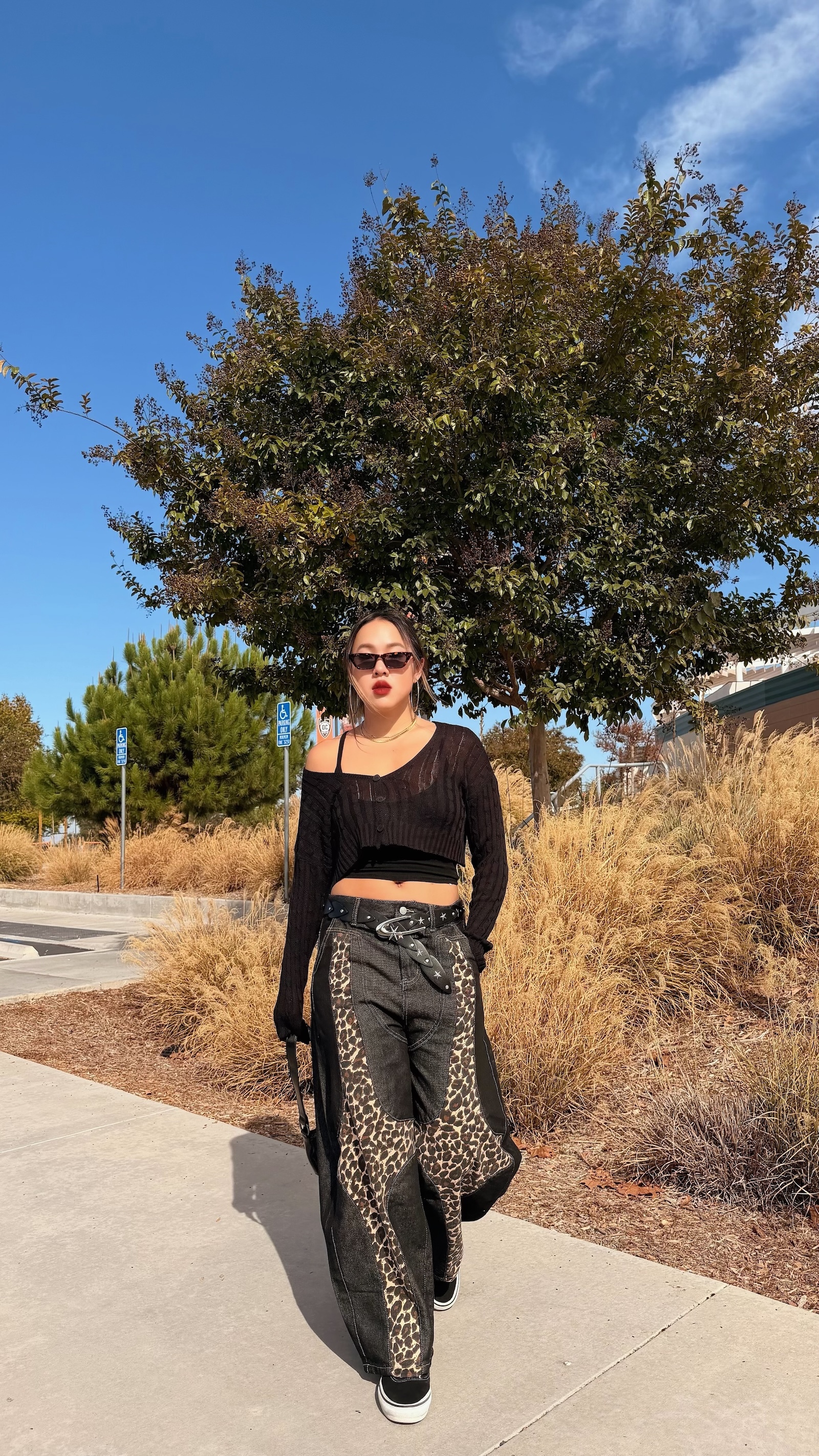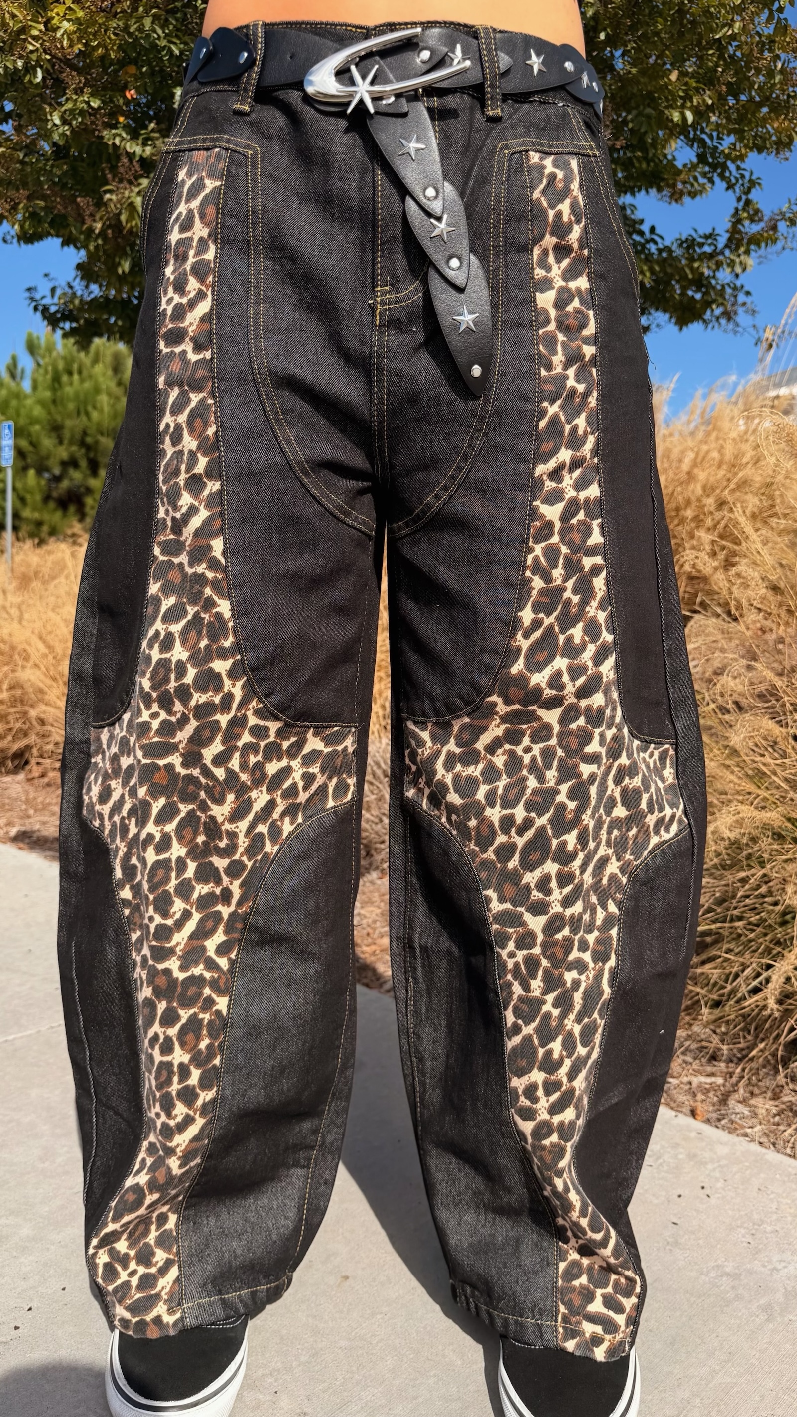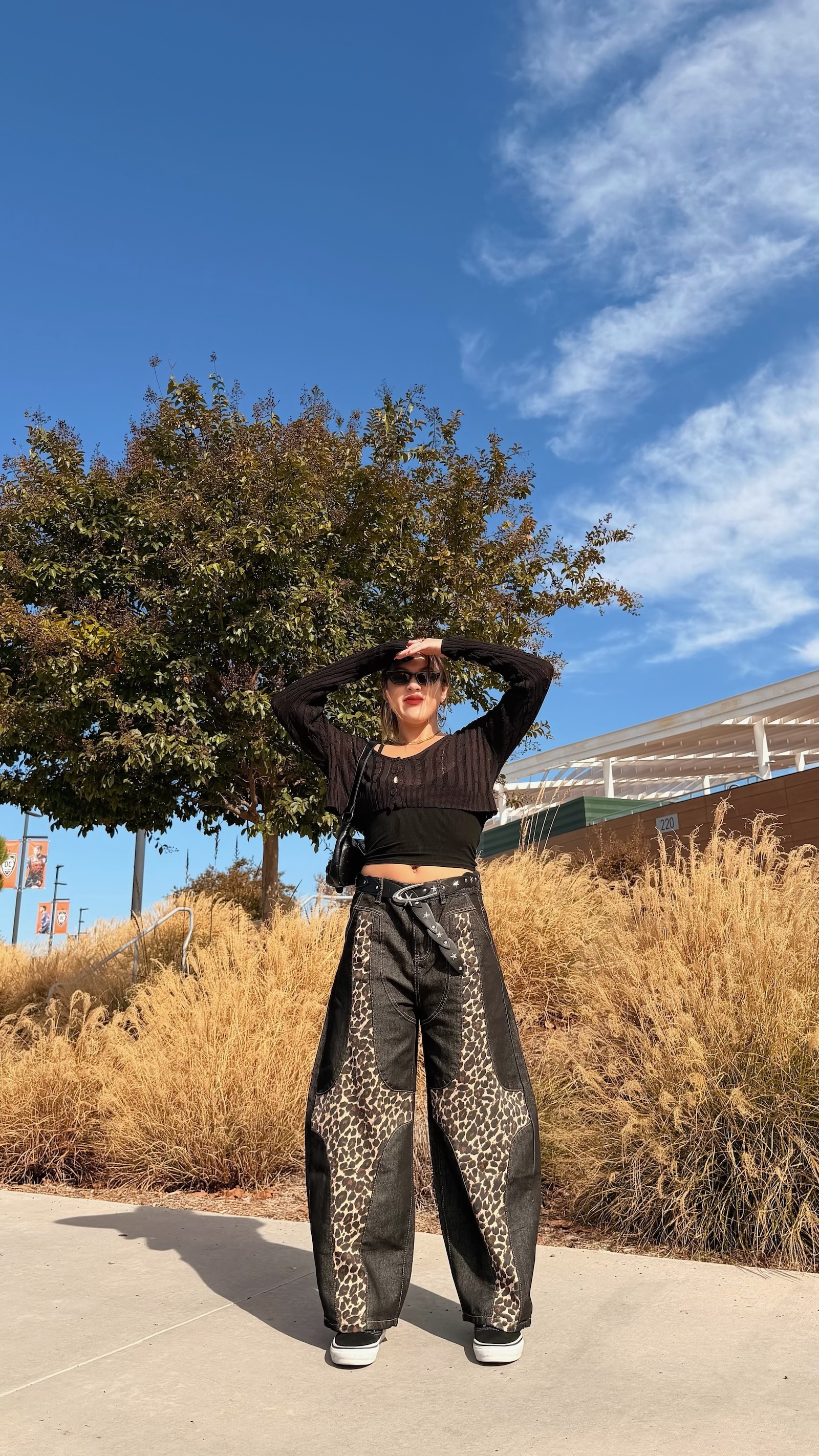 深色豹紋X深藍寬褲,太高級感