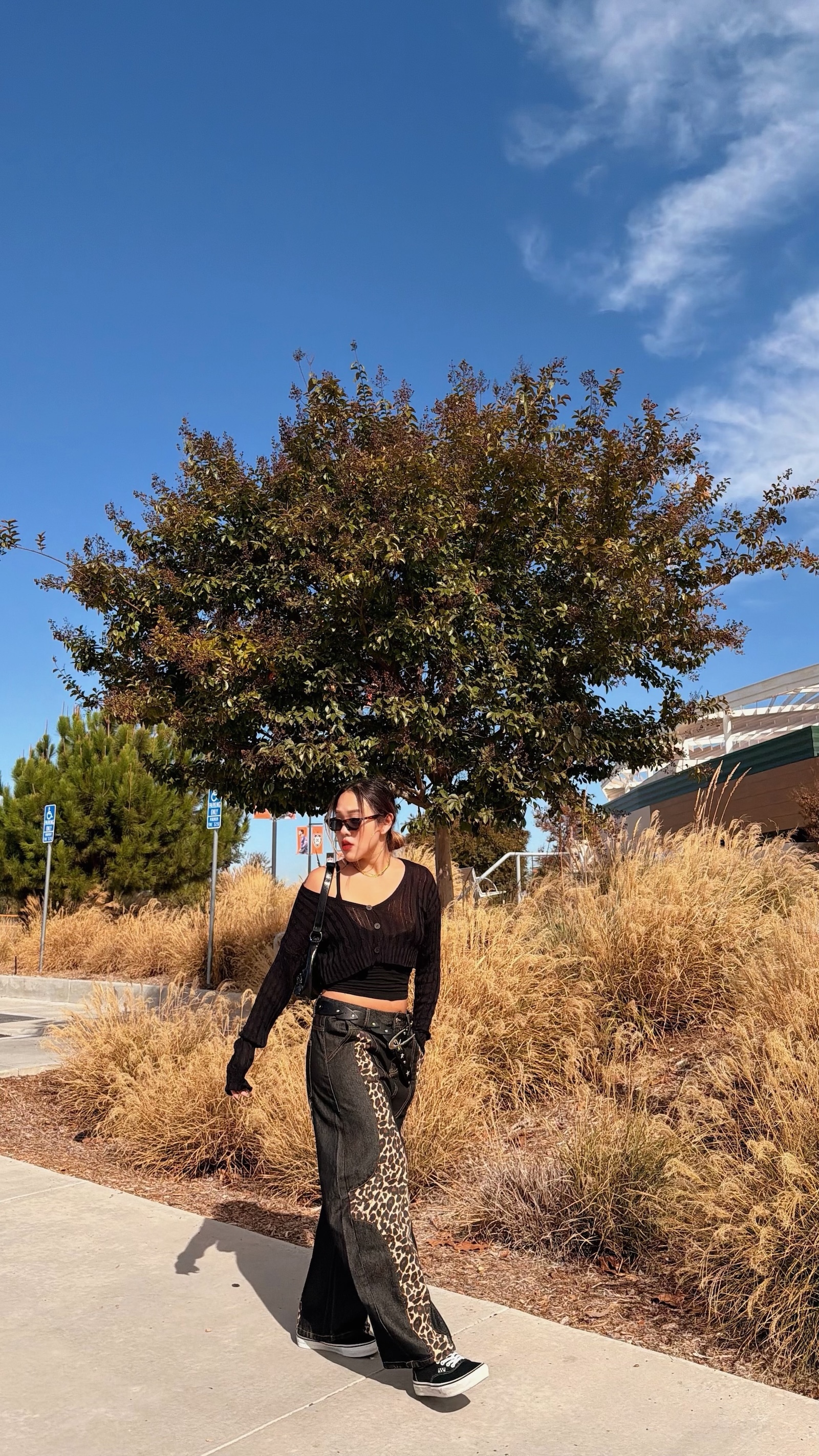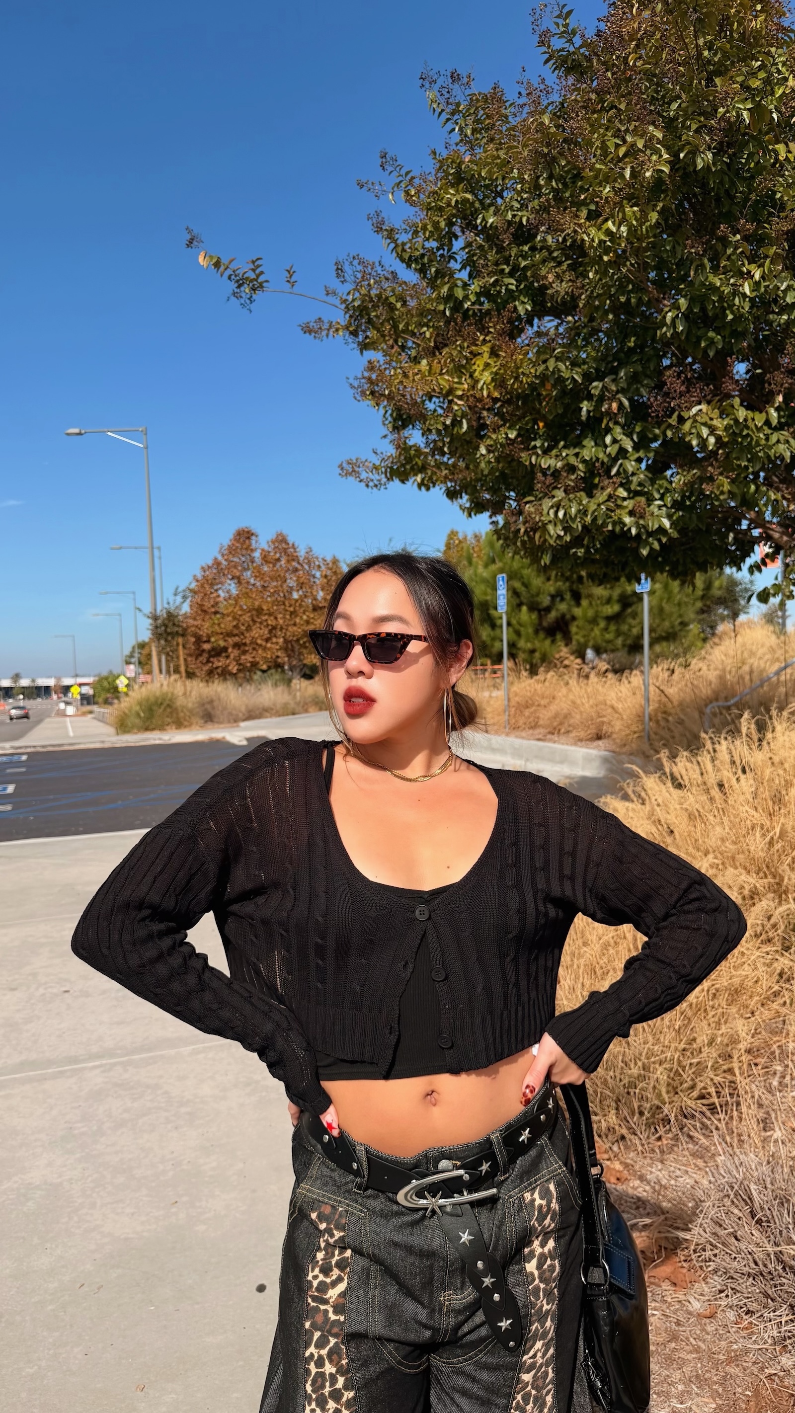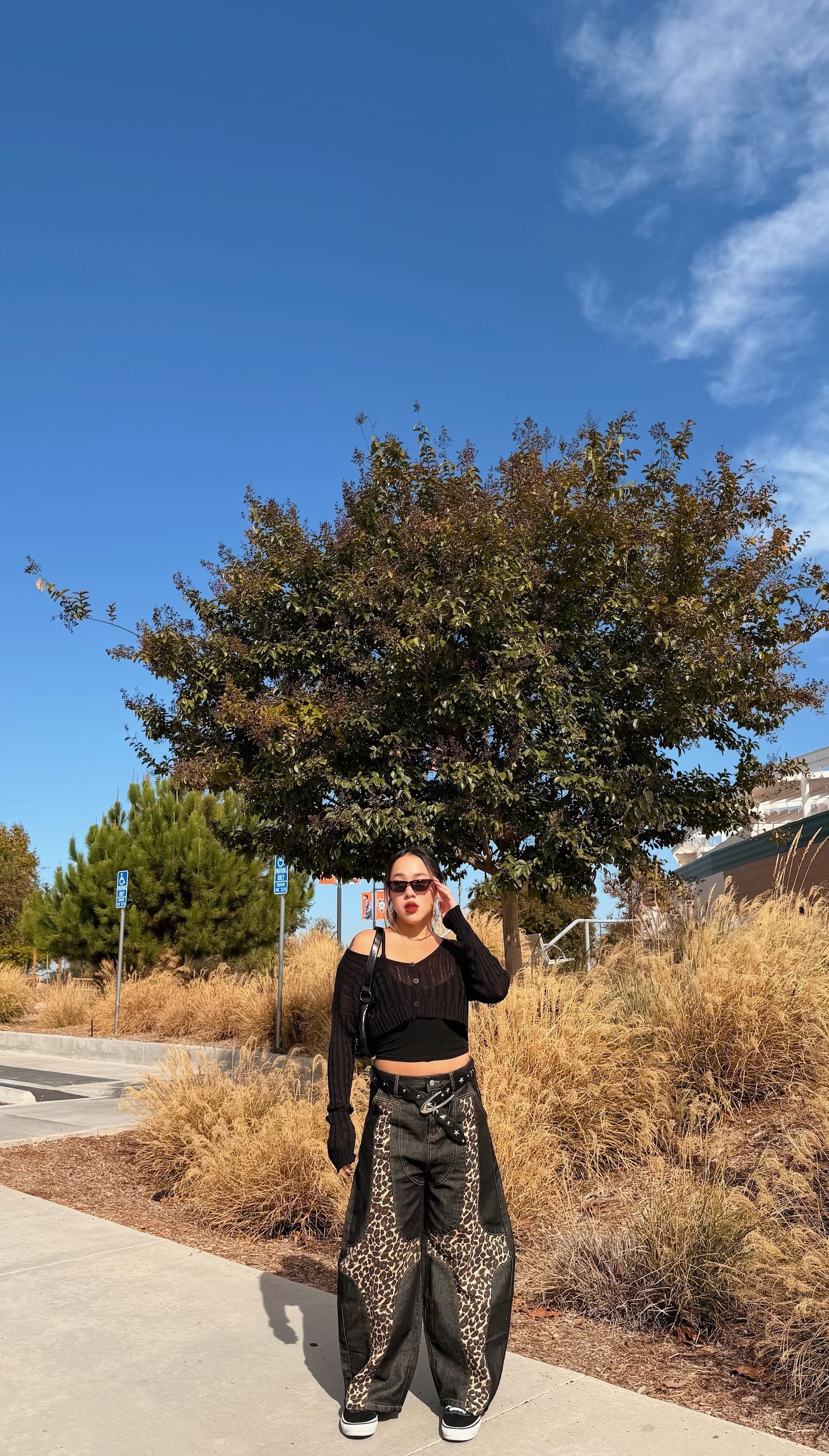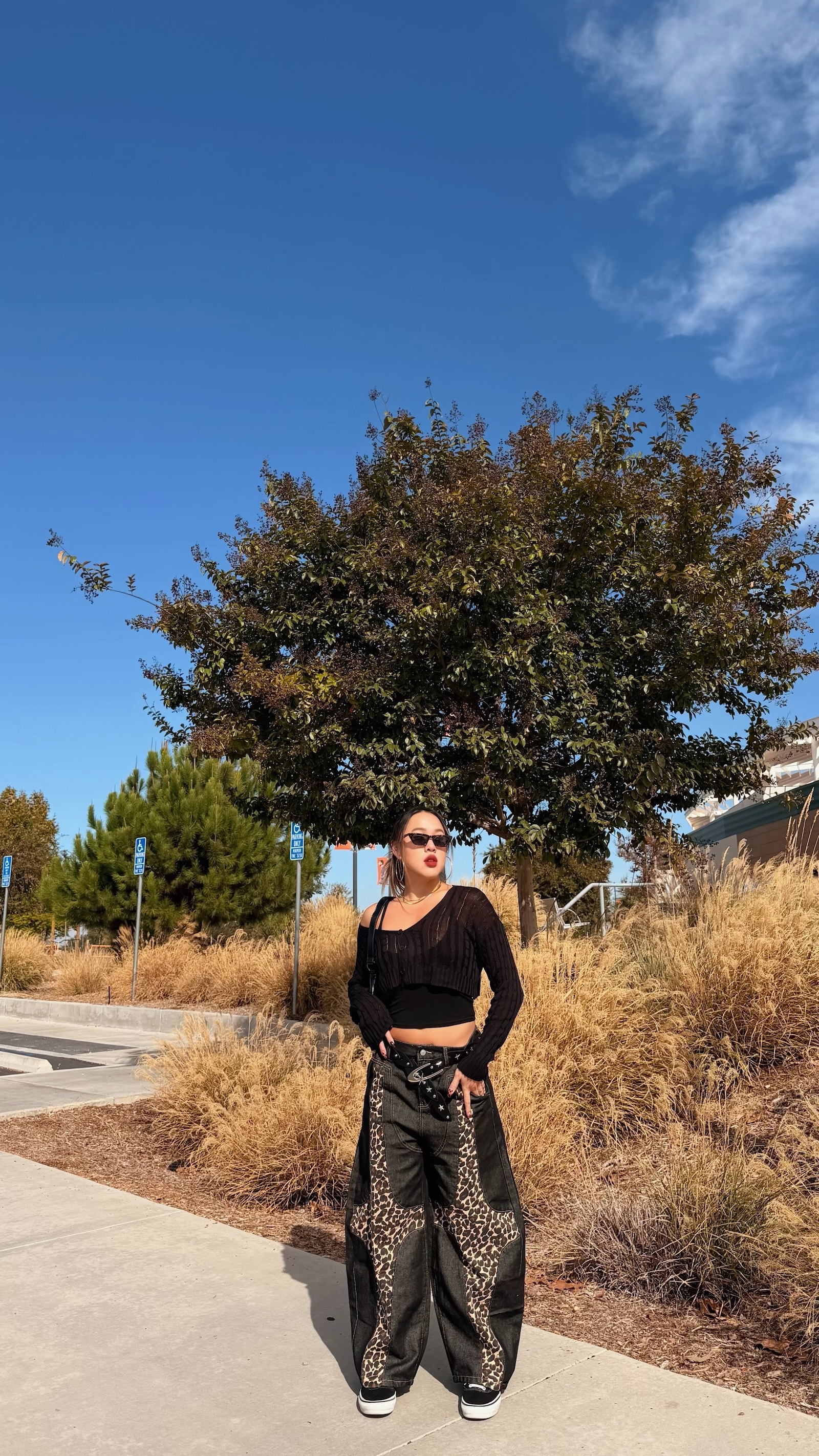 深色豹紋X深藍寬褲,太高級感