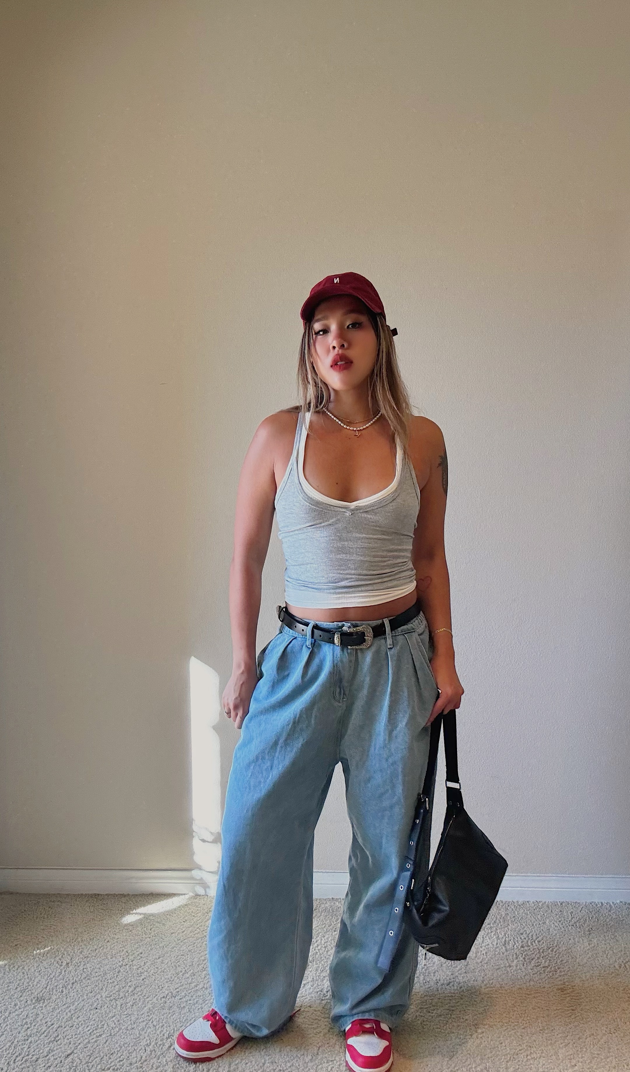 細肩搭配深V剪裁,簡單又有美式感🇺🇸