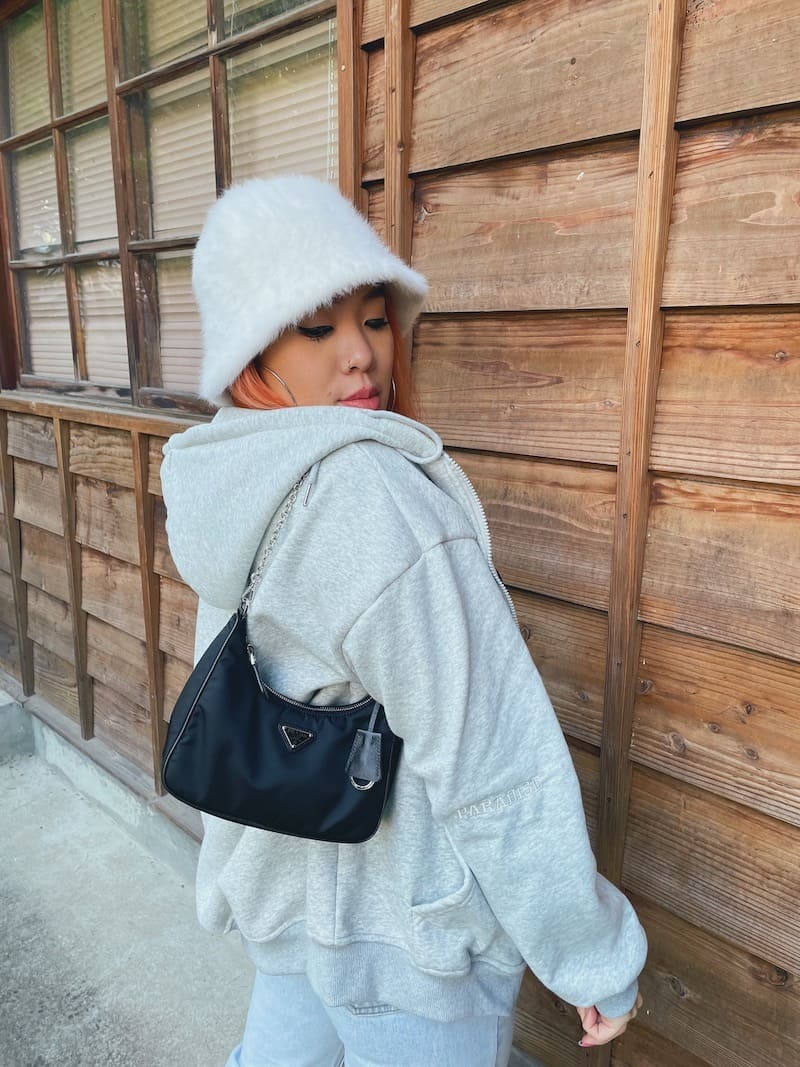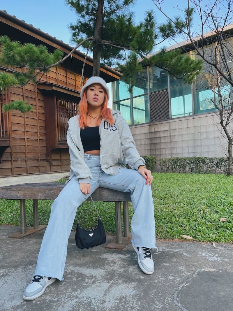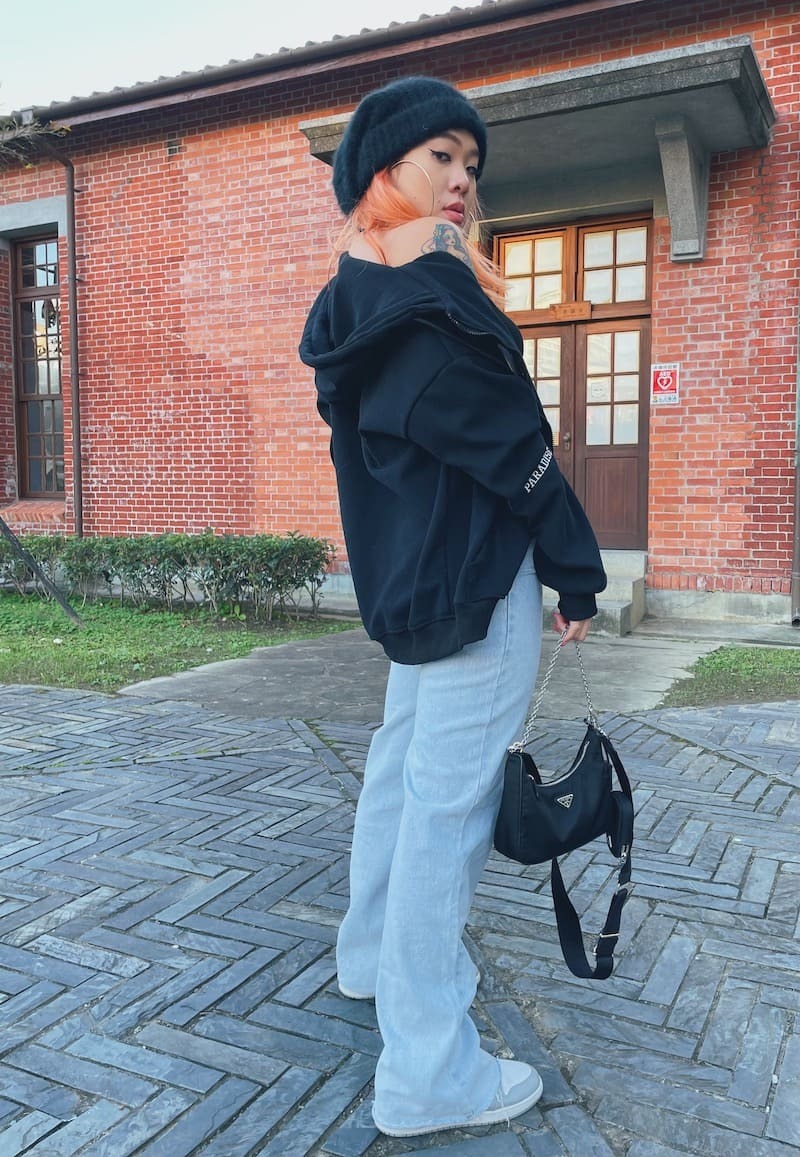 灰色搭配黑色標語,慵懶隨性