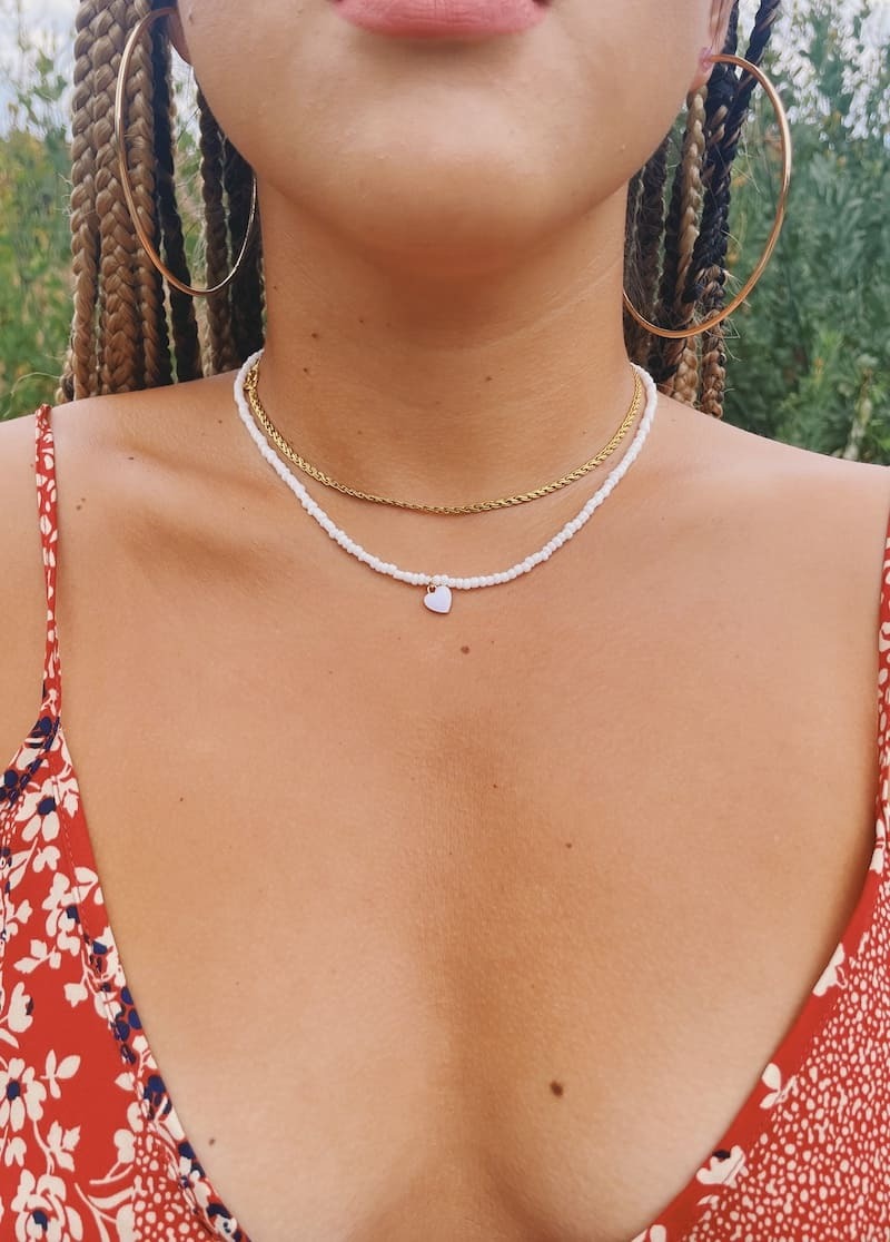 貝殼感的白色串珠搭配迷你版的白色愛心