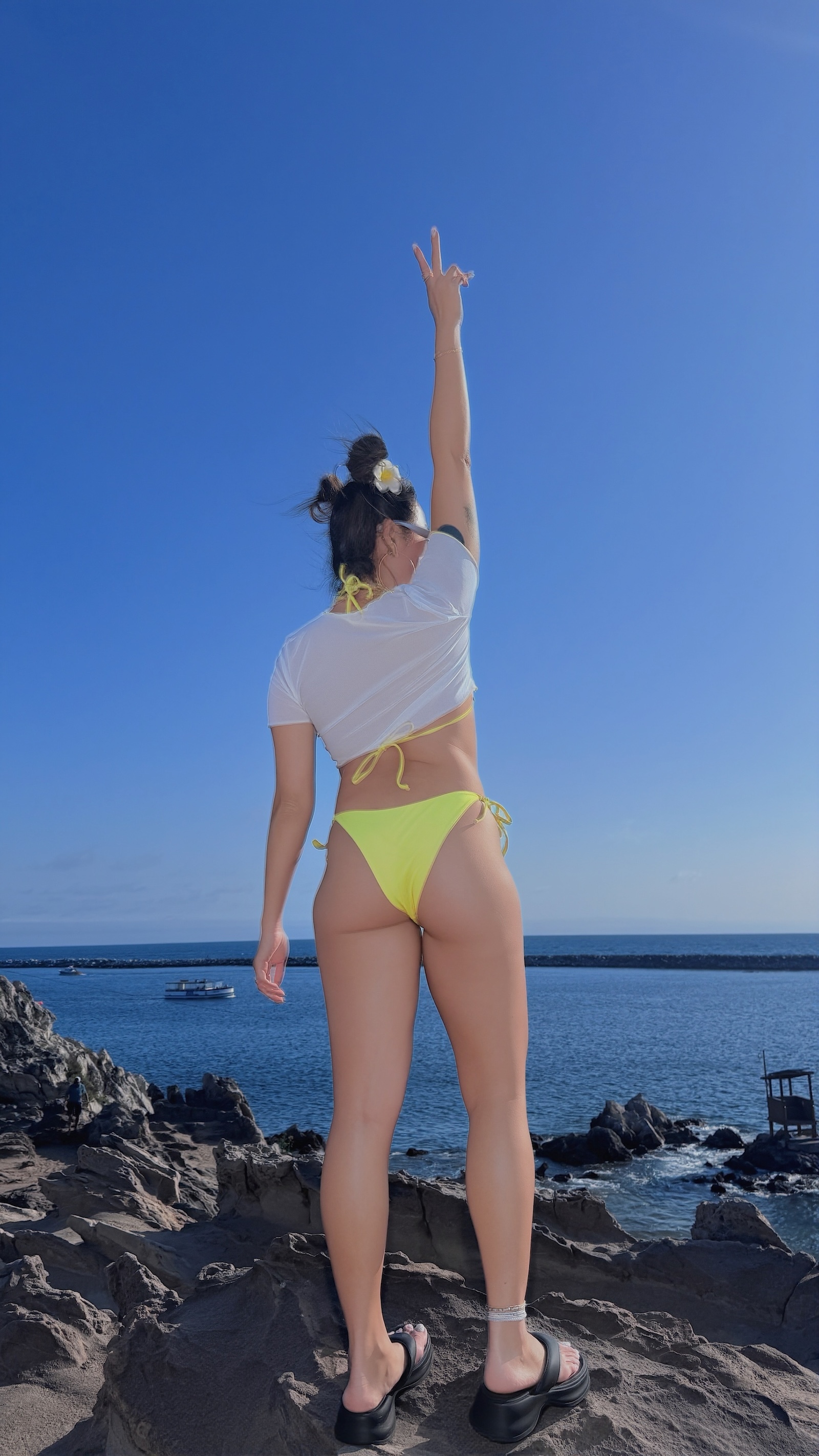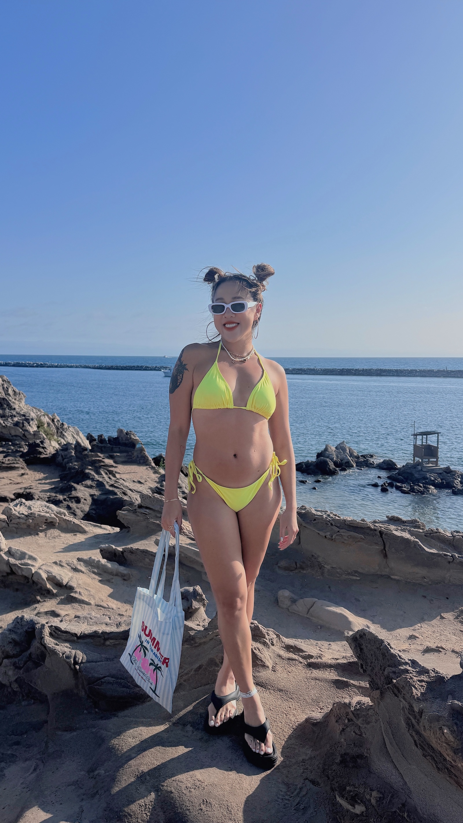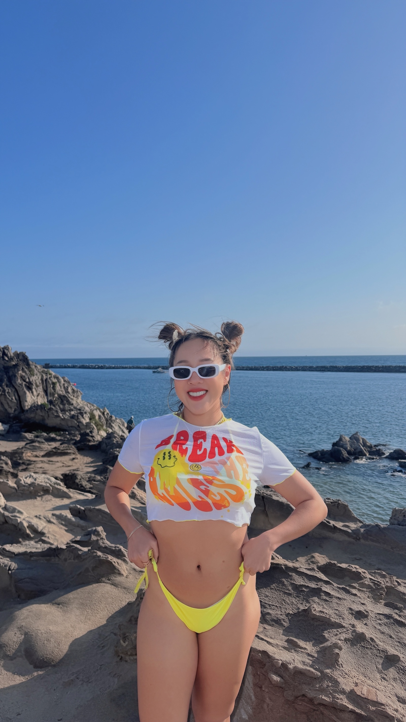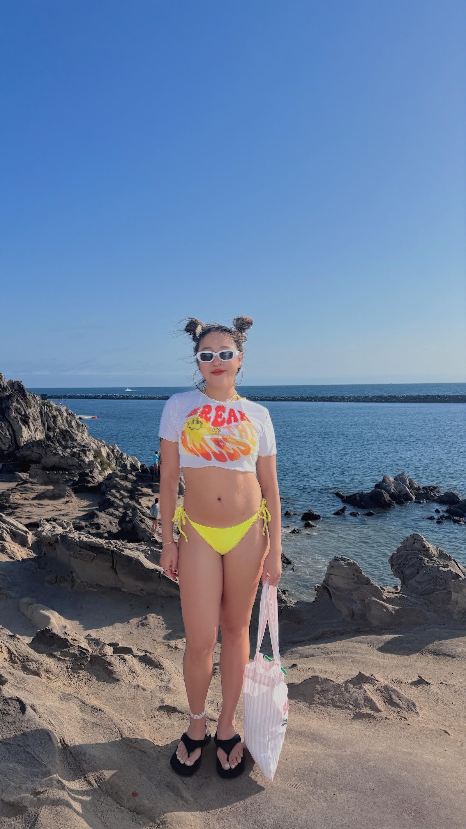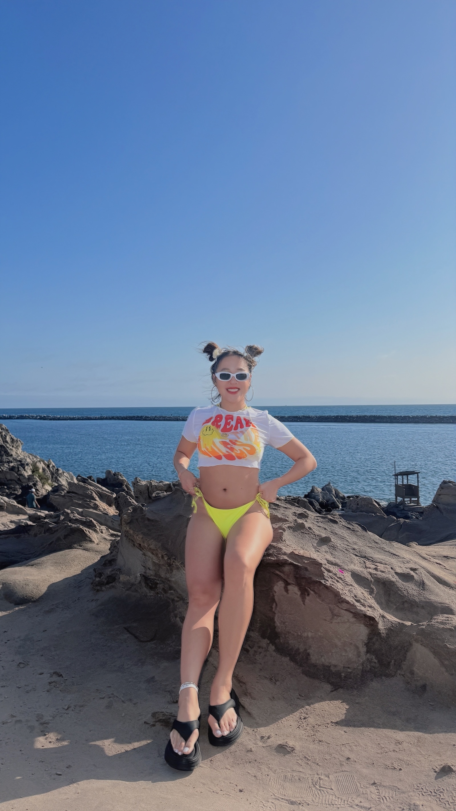 超亮的黃色經典Bikini單穿就很夏天