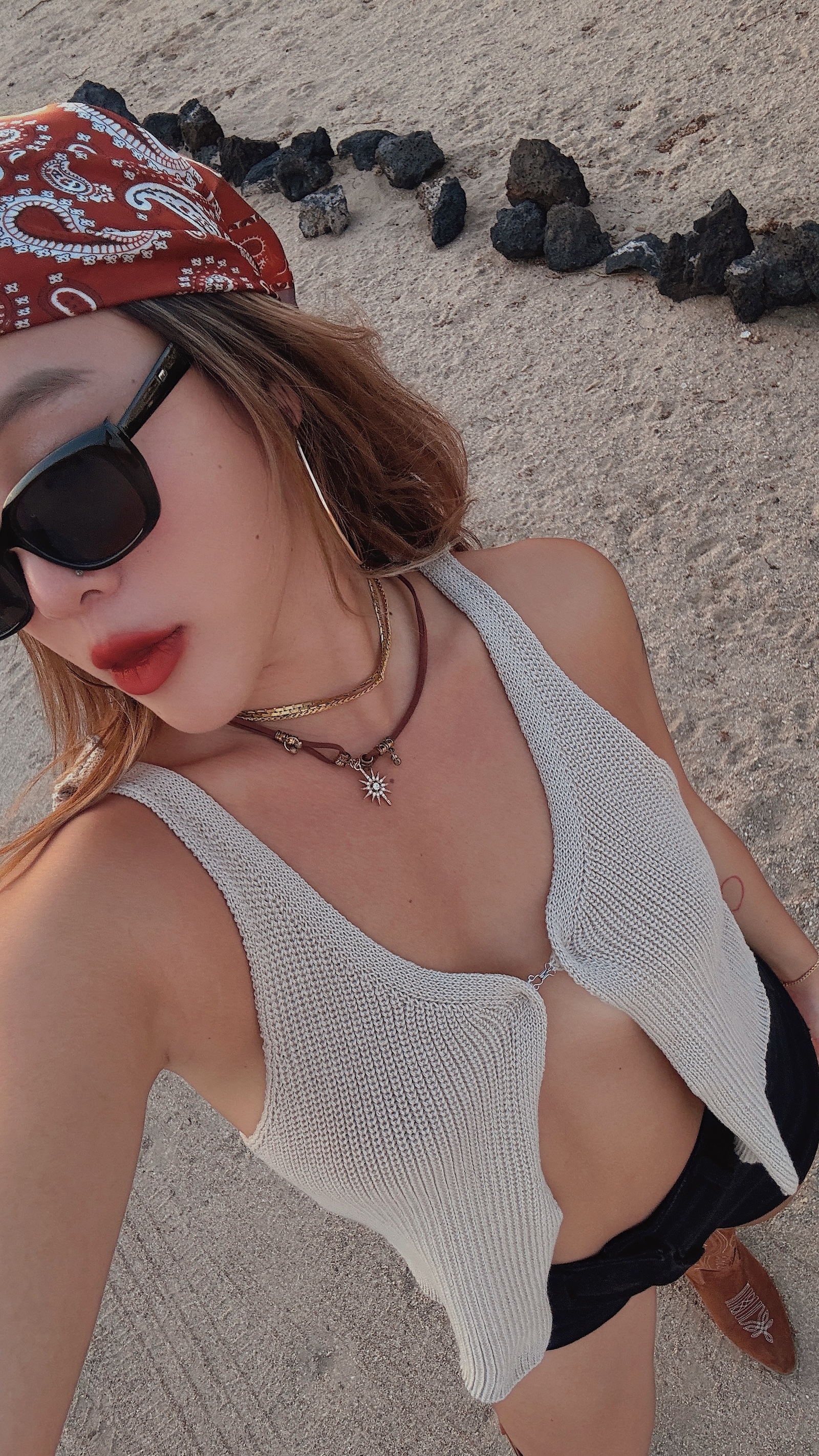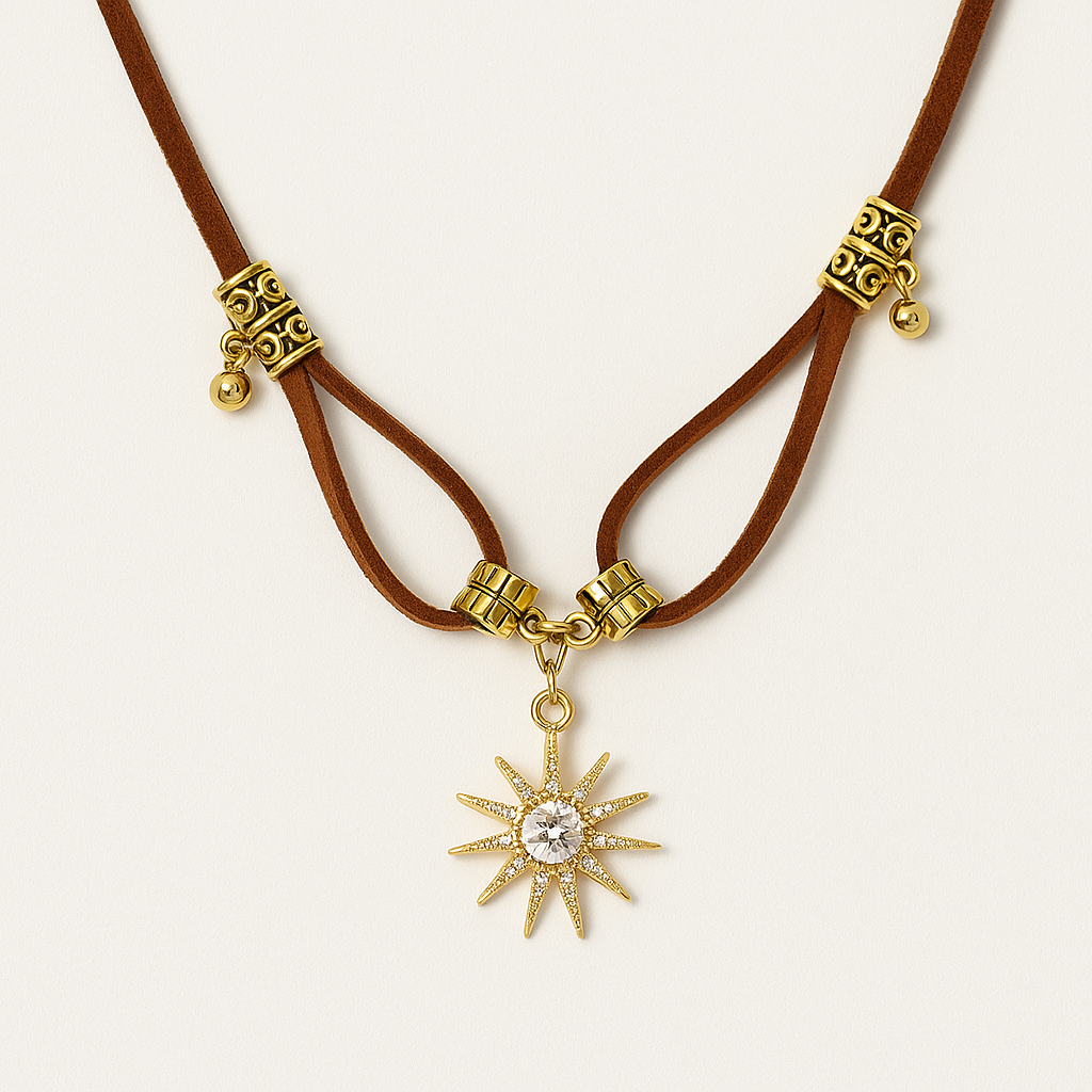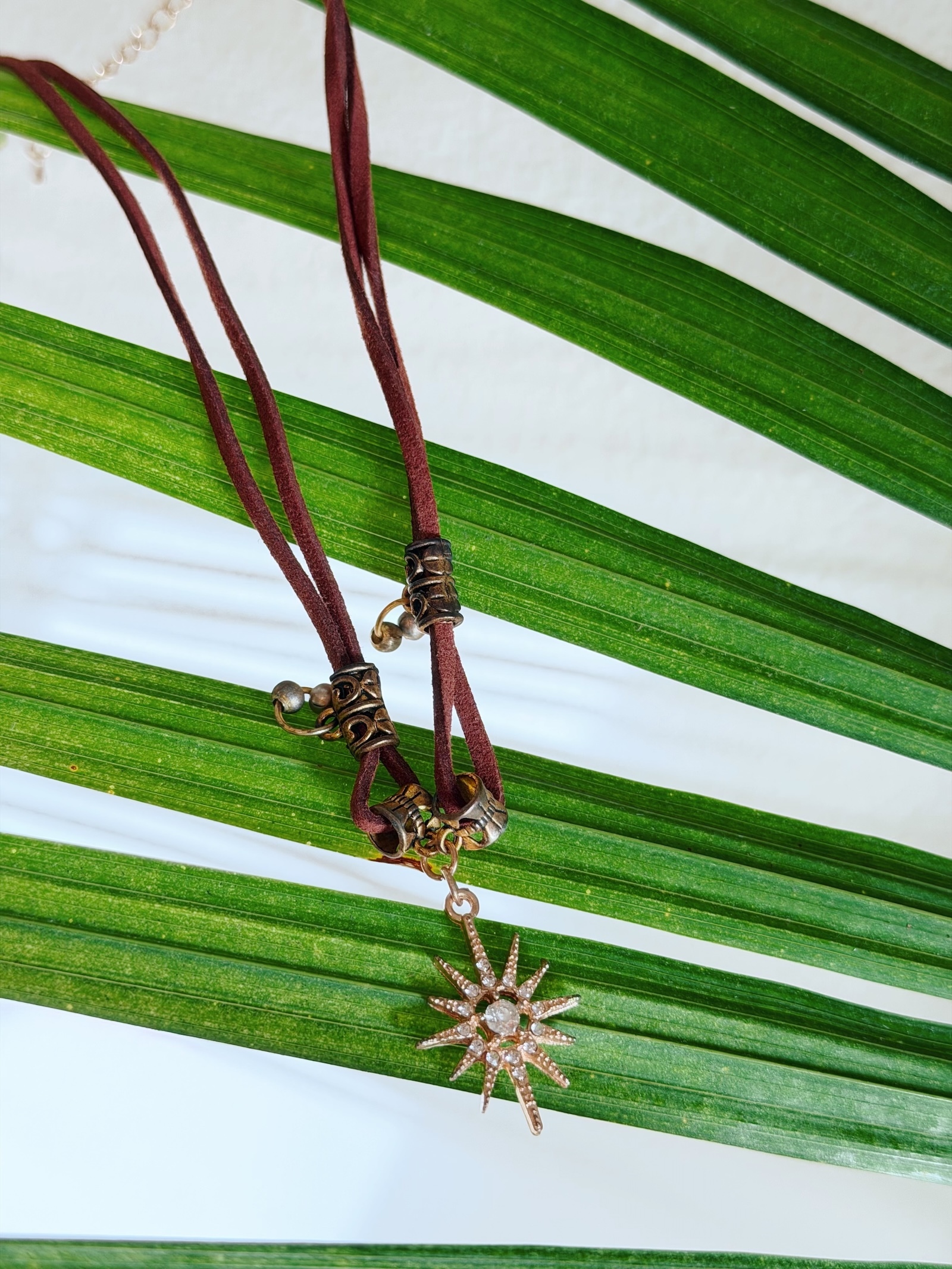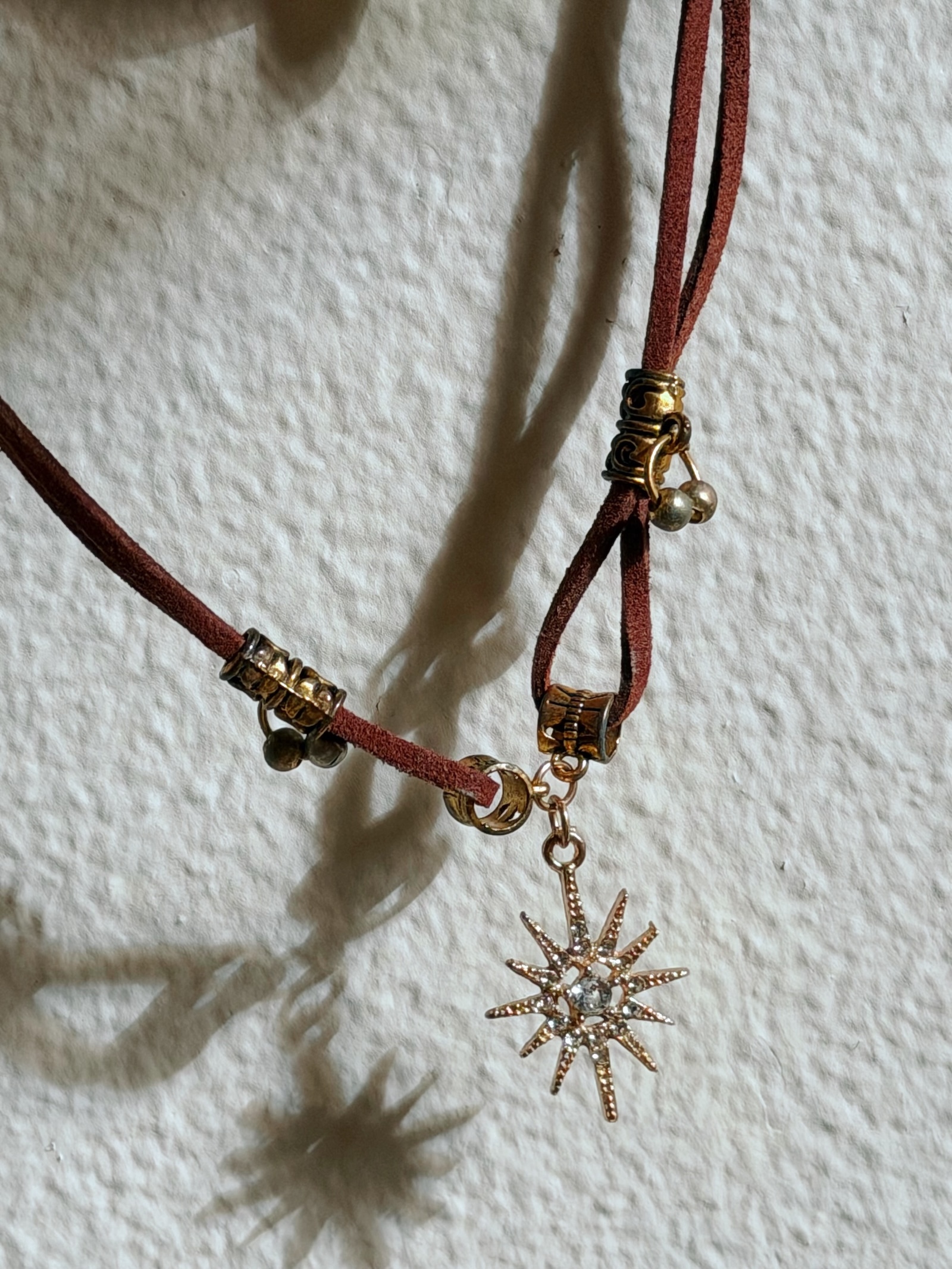 深棕色仿麂皮絨繩搭配金色鑽星星