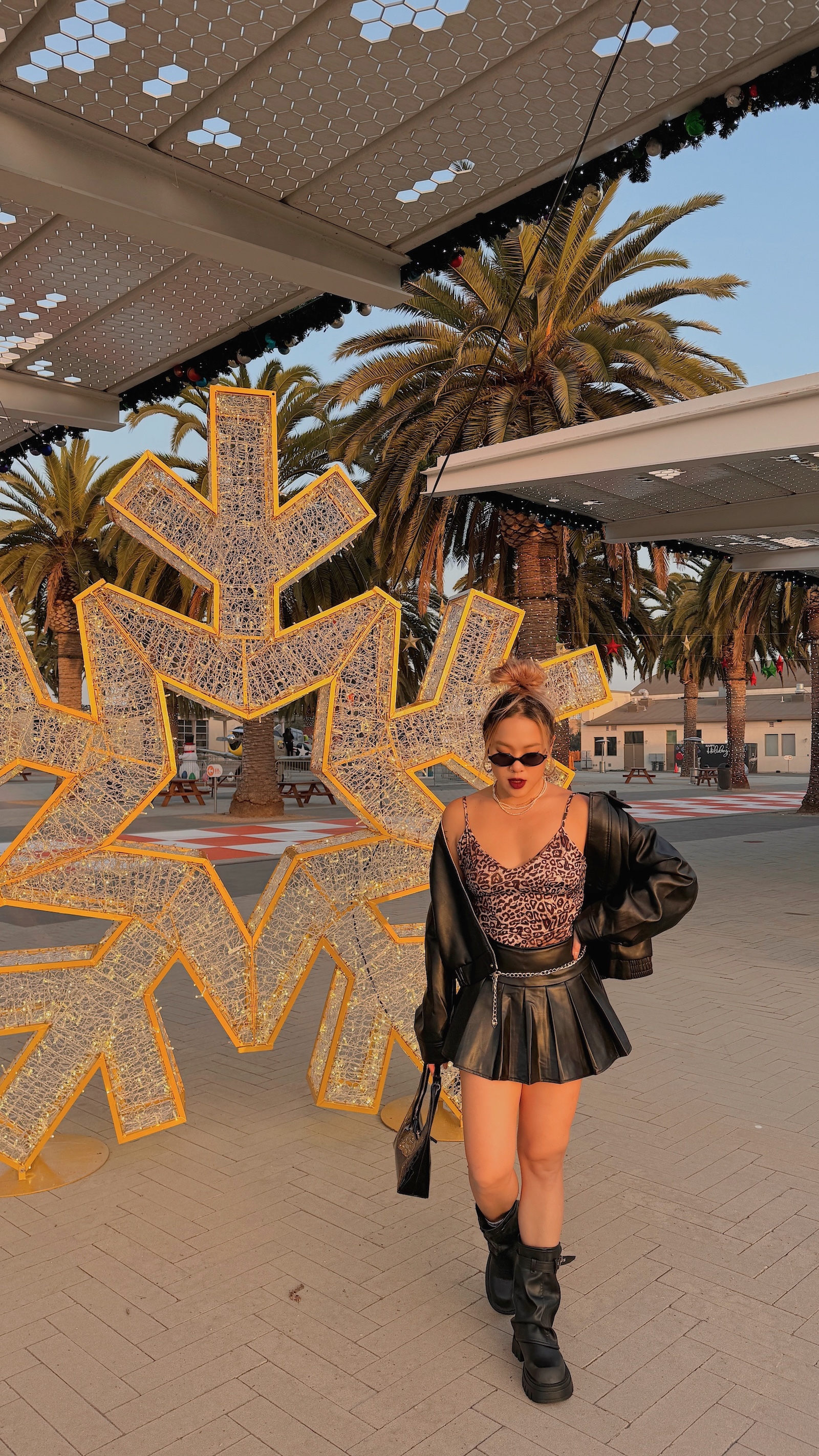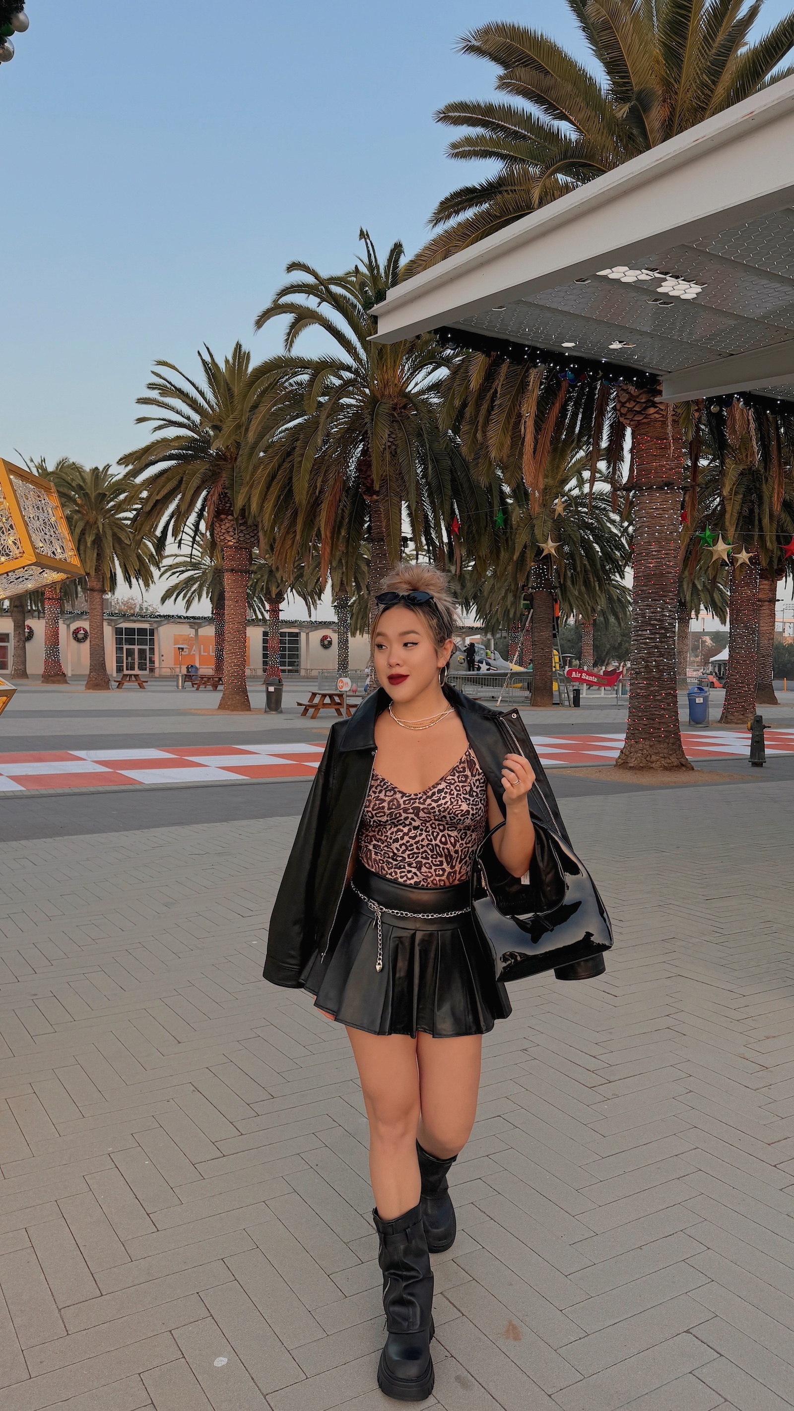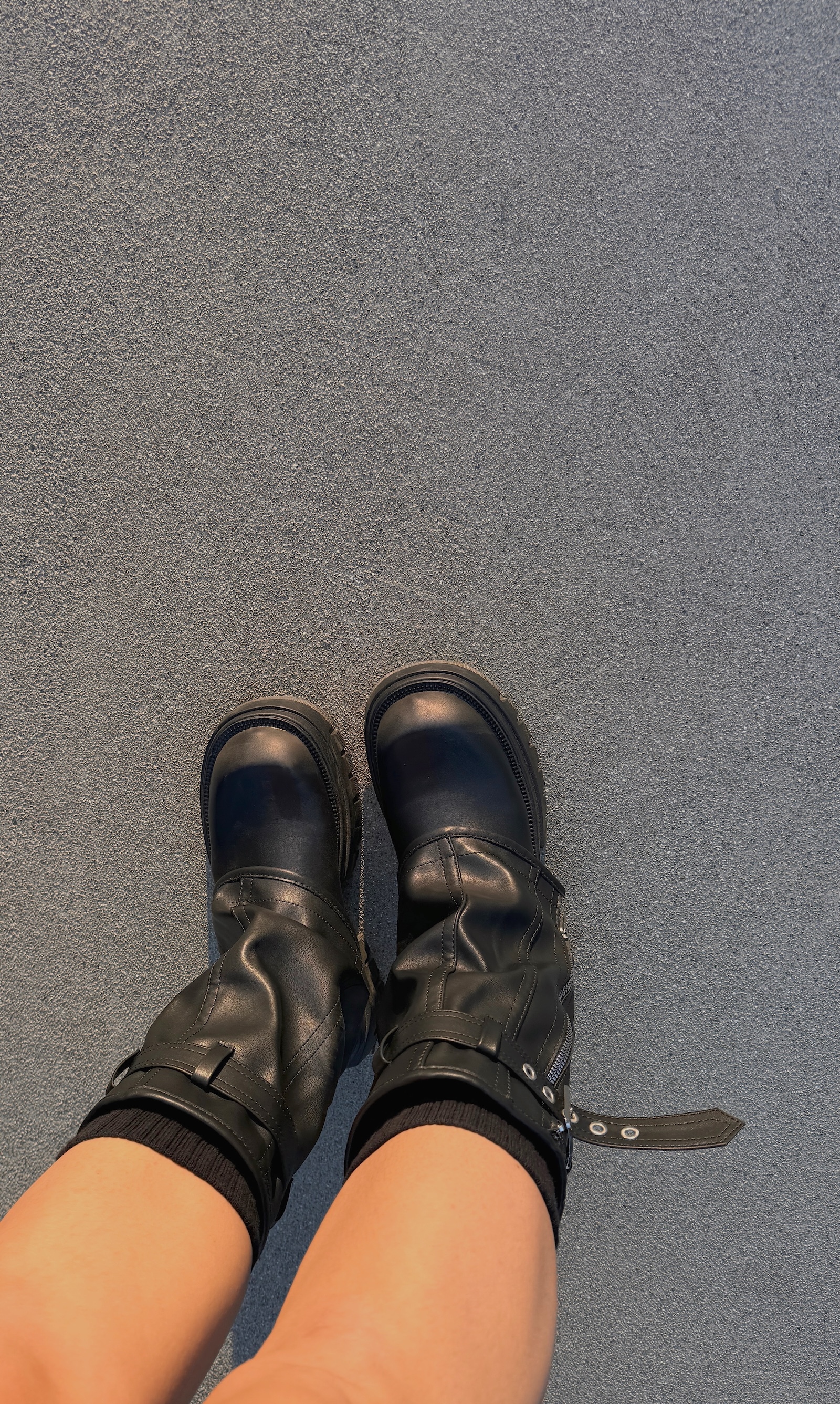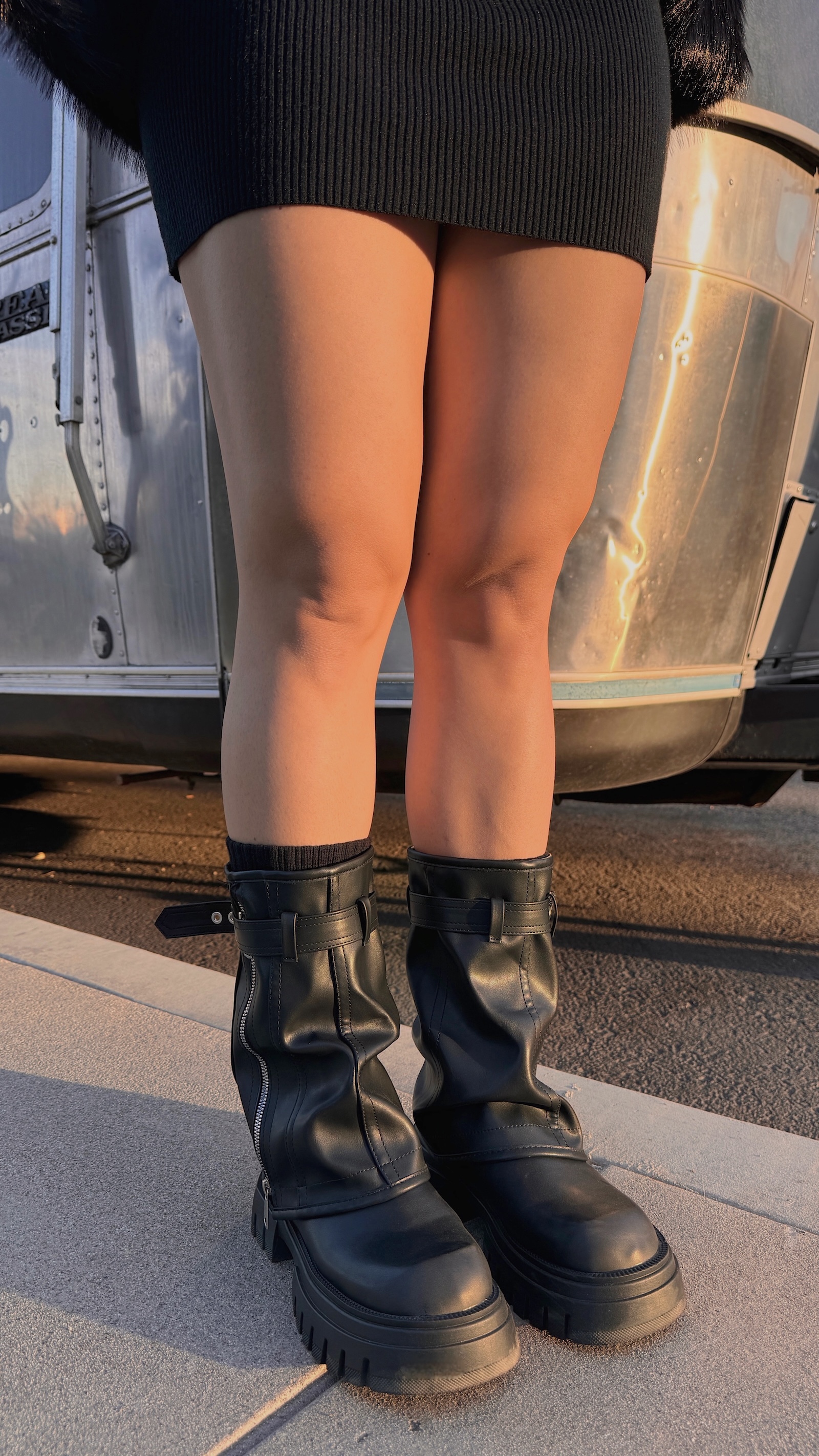 襪套感造型搭配皮帶及拉鍊