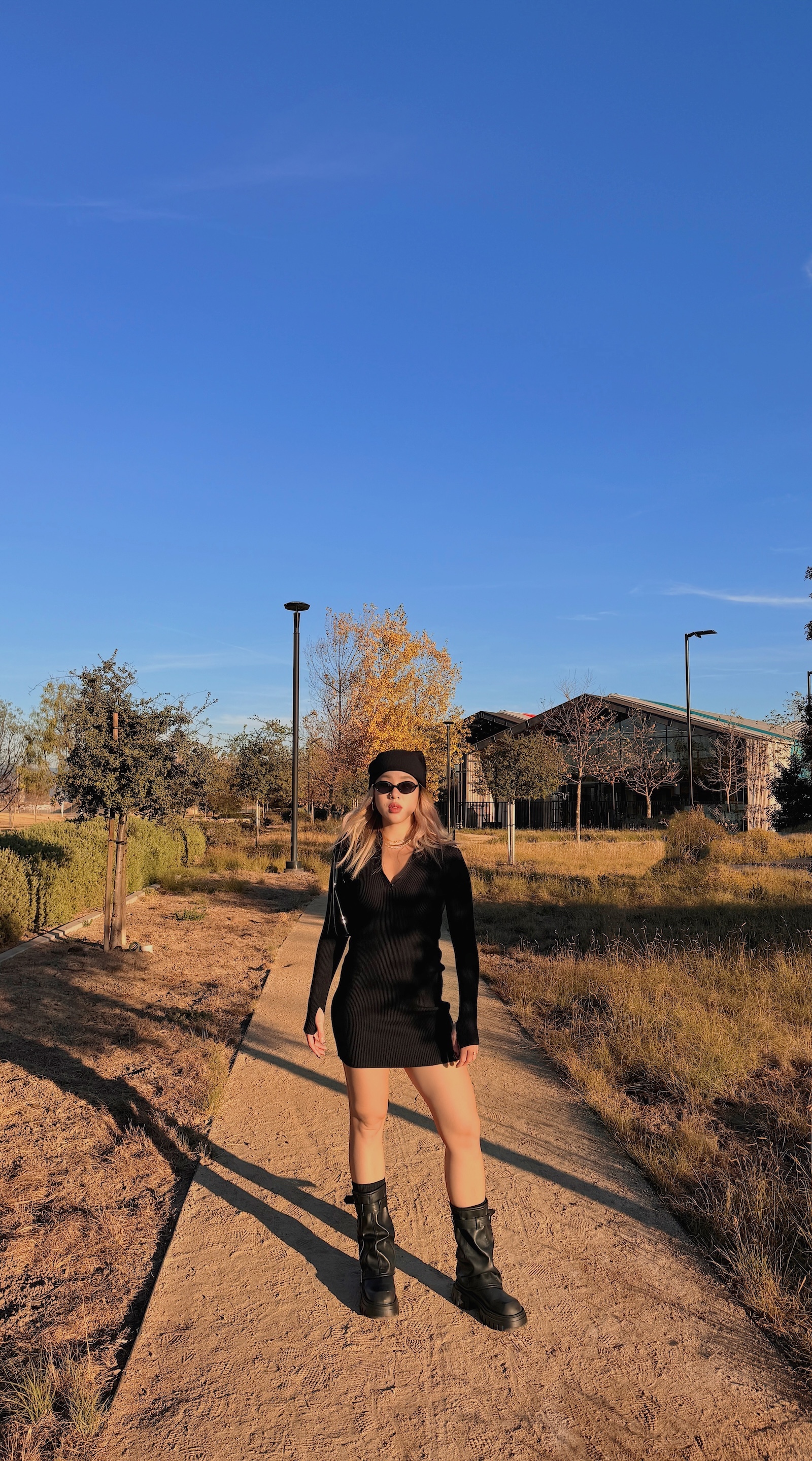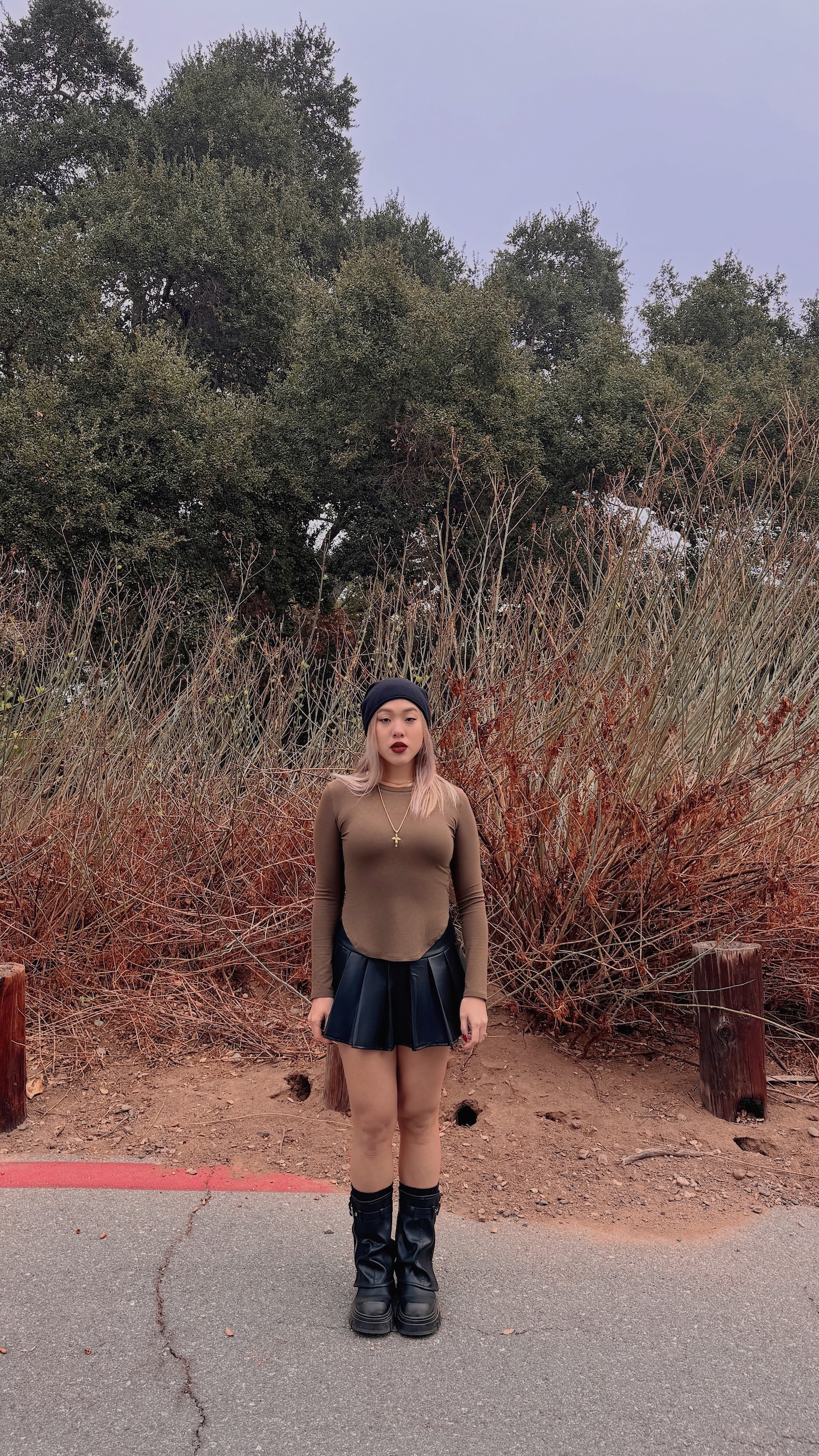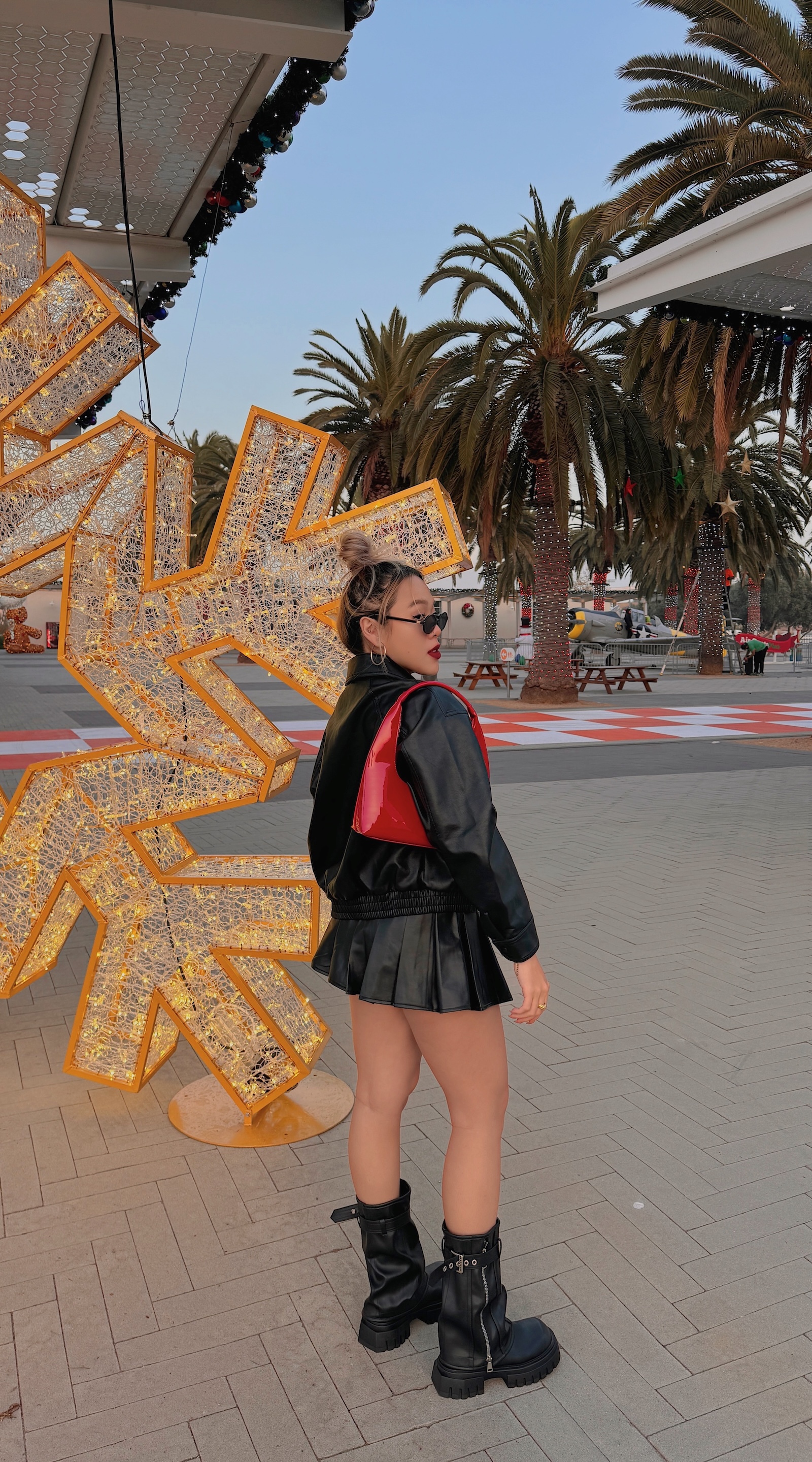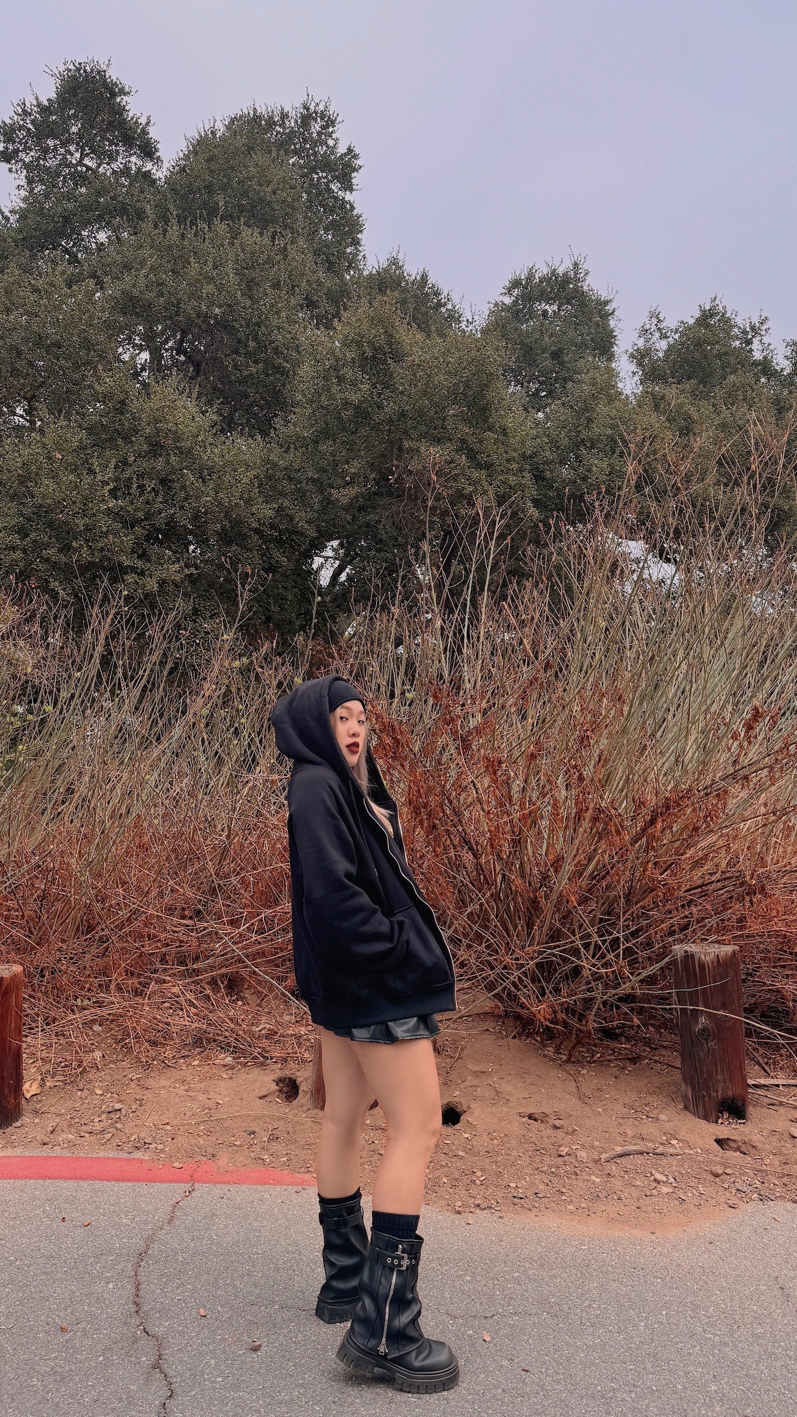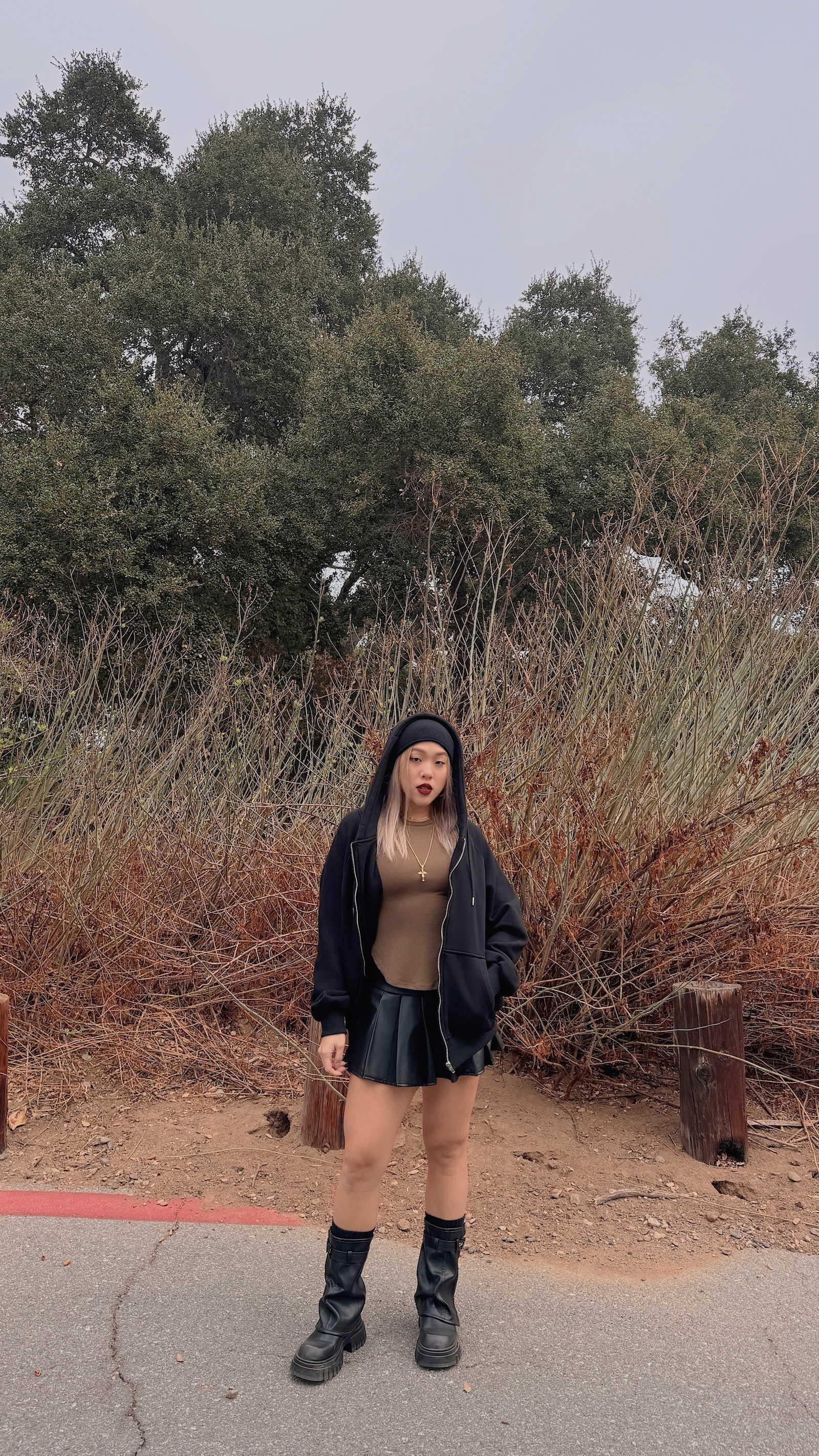 襪套感造型搭配皮帶及拉鍊