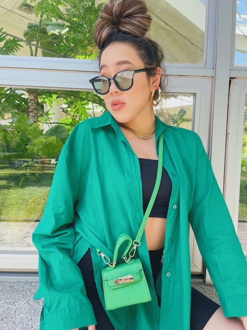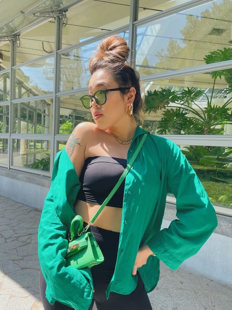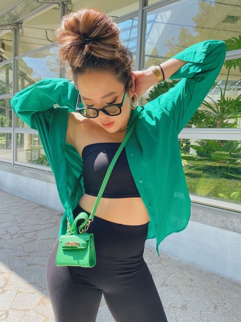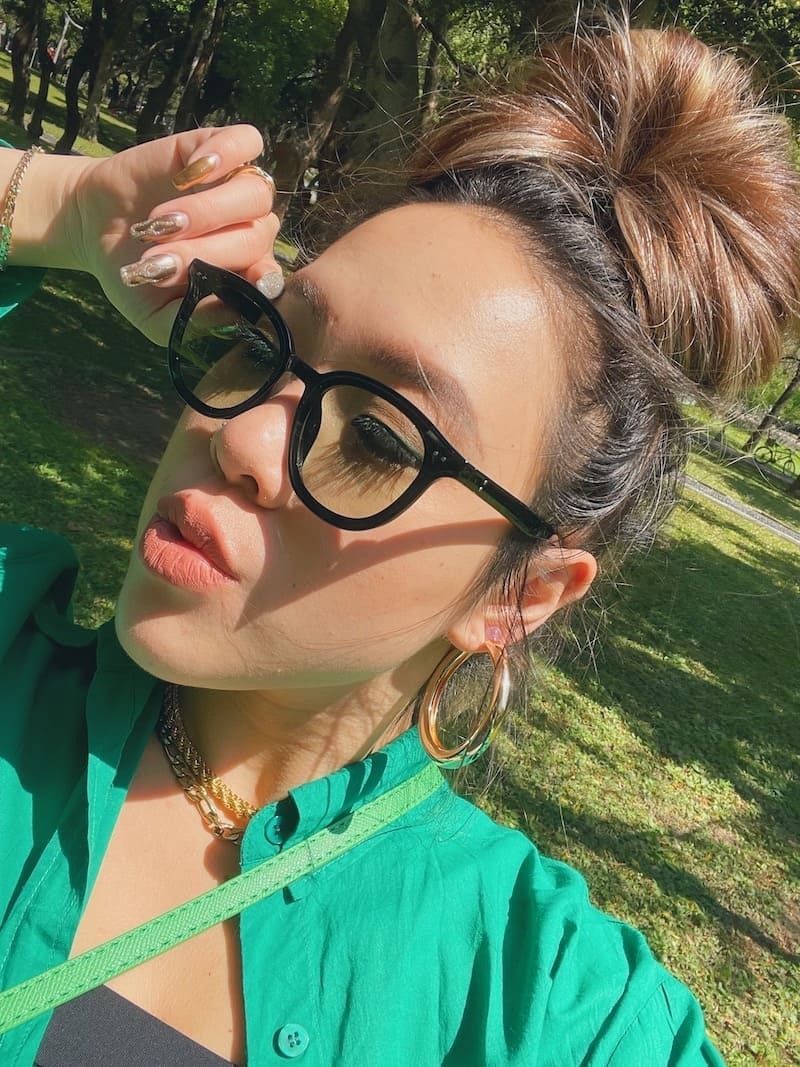 這副拍照超好看!經典的黑框搭配墨綠鏡片,很時尚💚