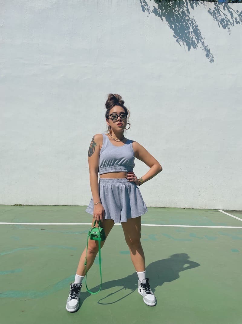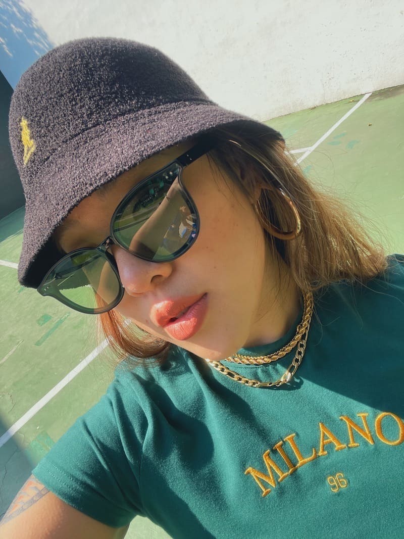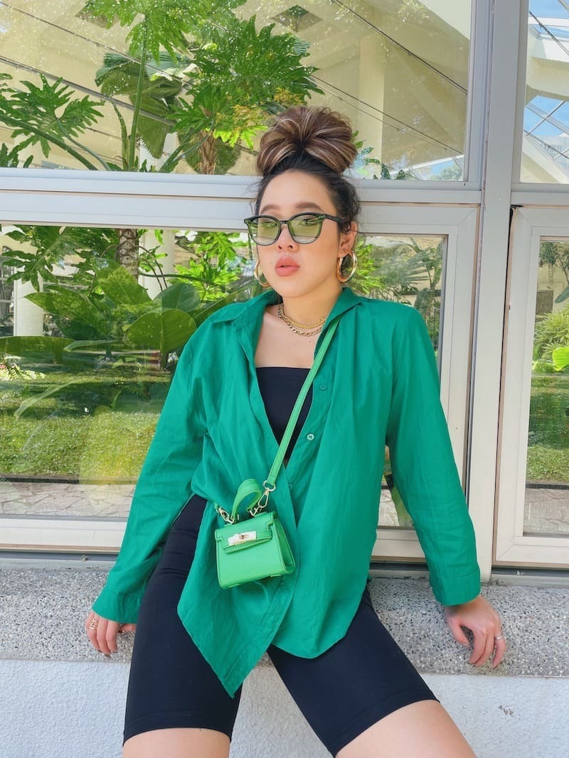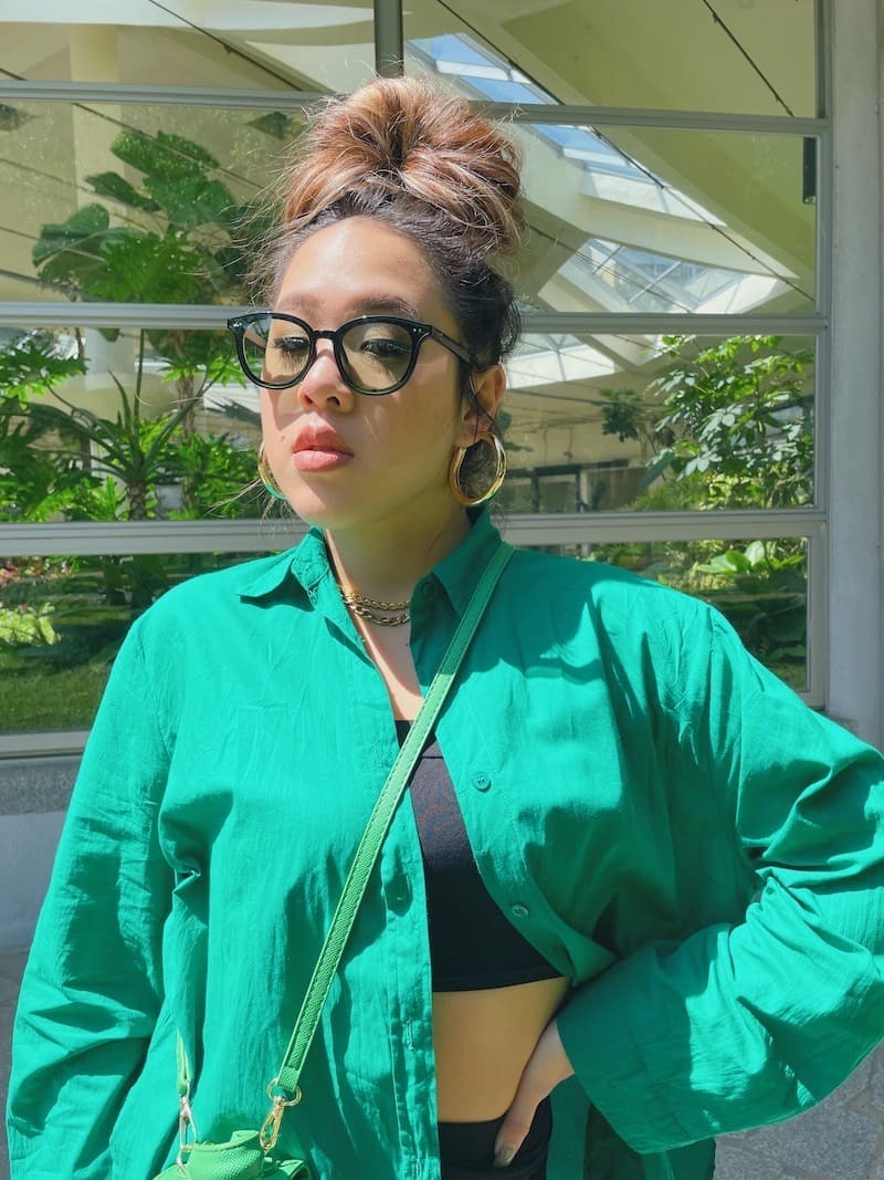 這副拍照超好看!經典的黑框搭配墨綠鏡片,很時尚💚
