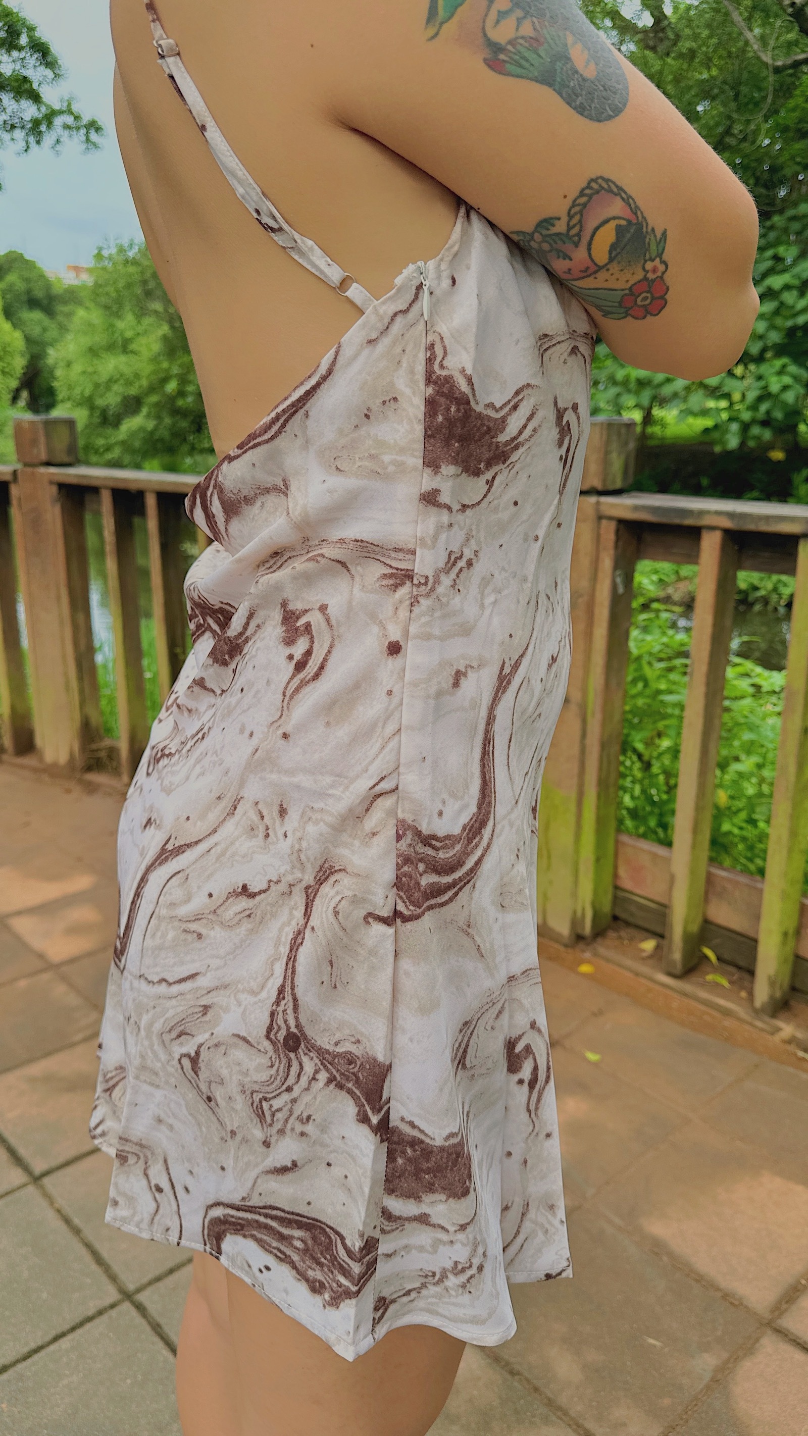 搭配裙擺側邊拉鍊.肩帶可調整