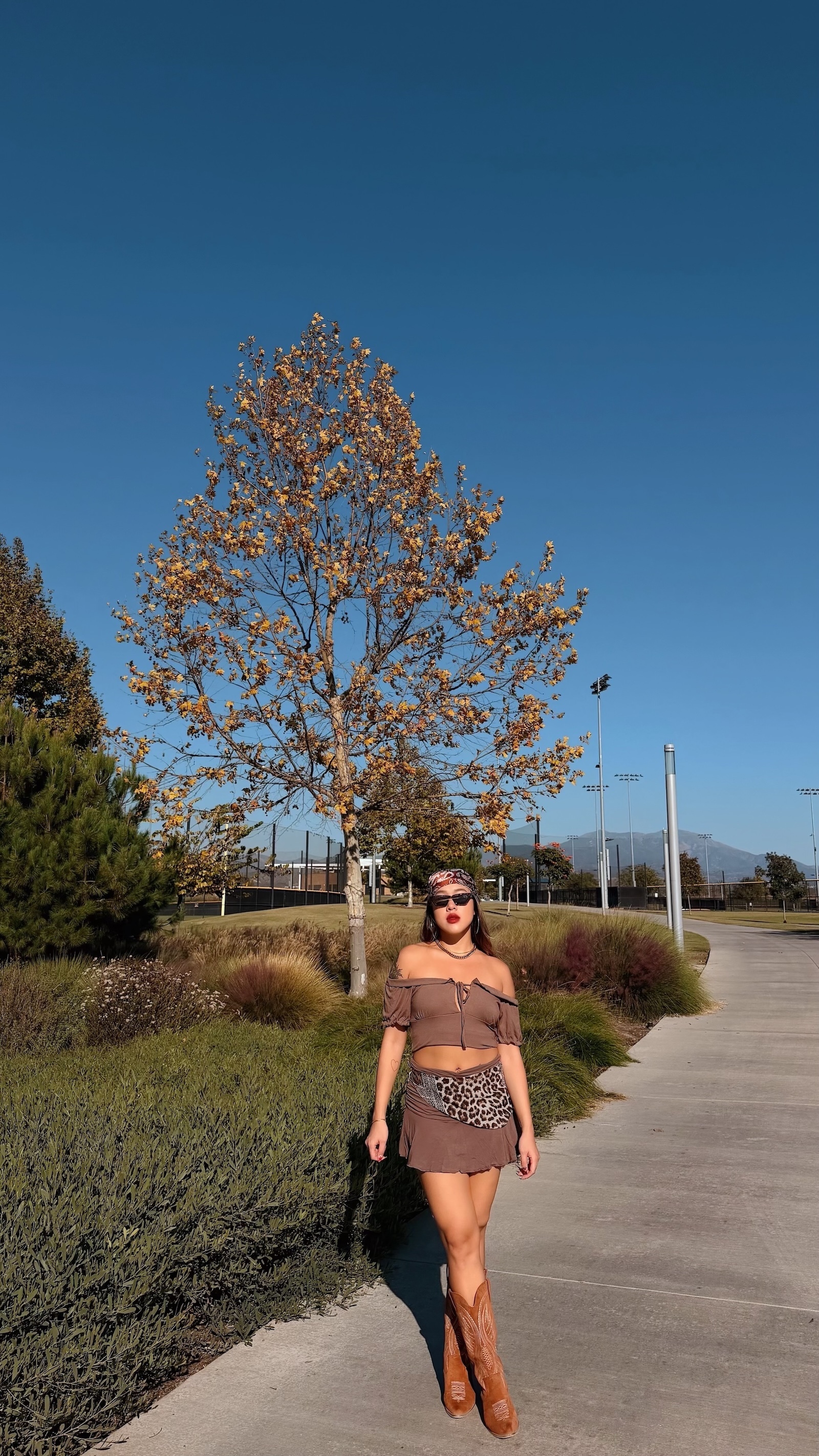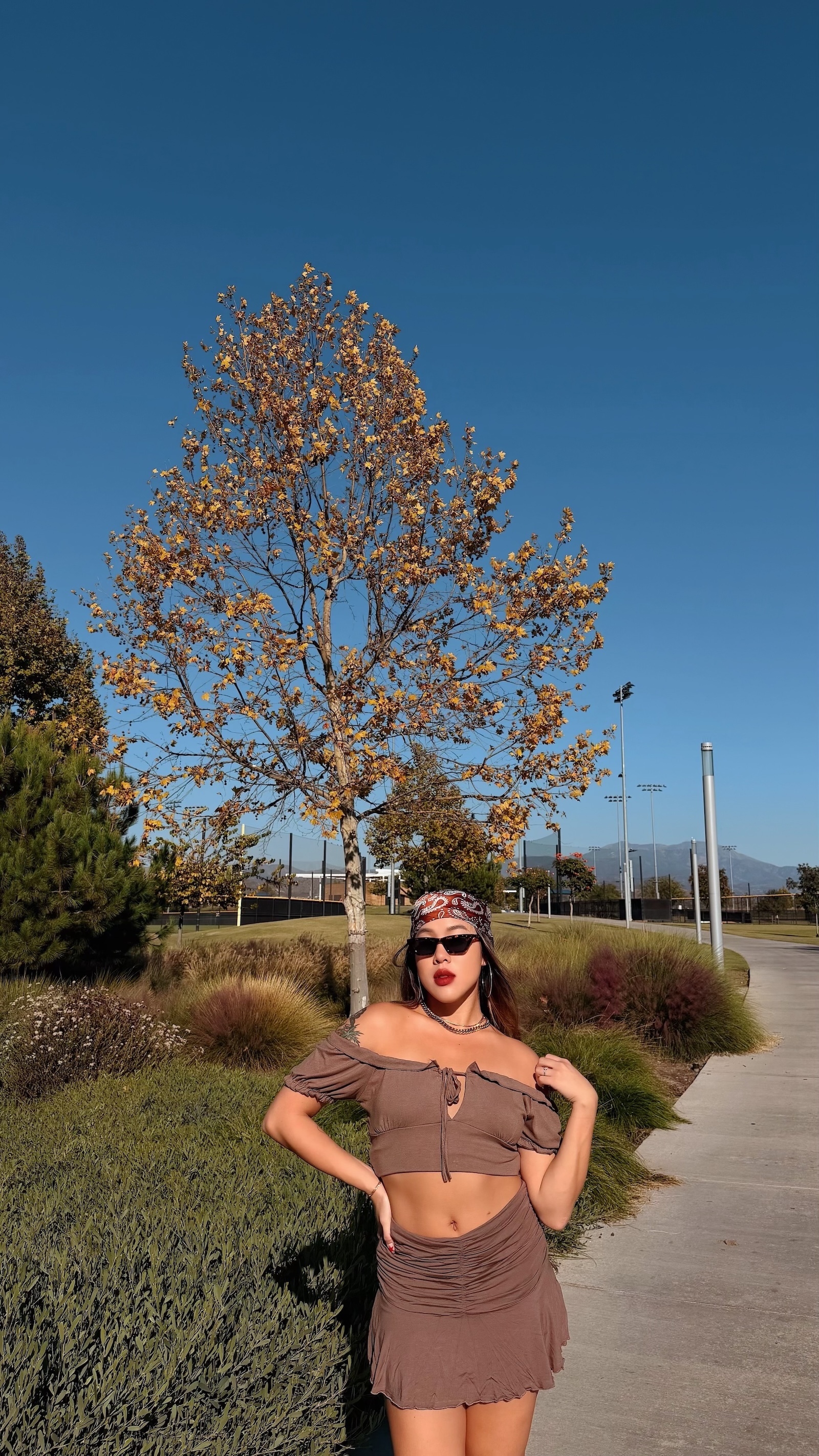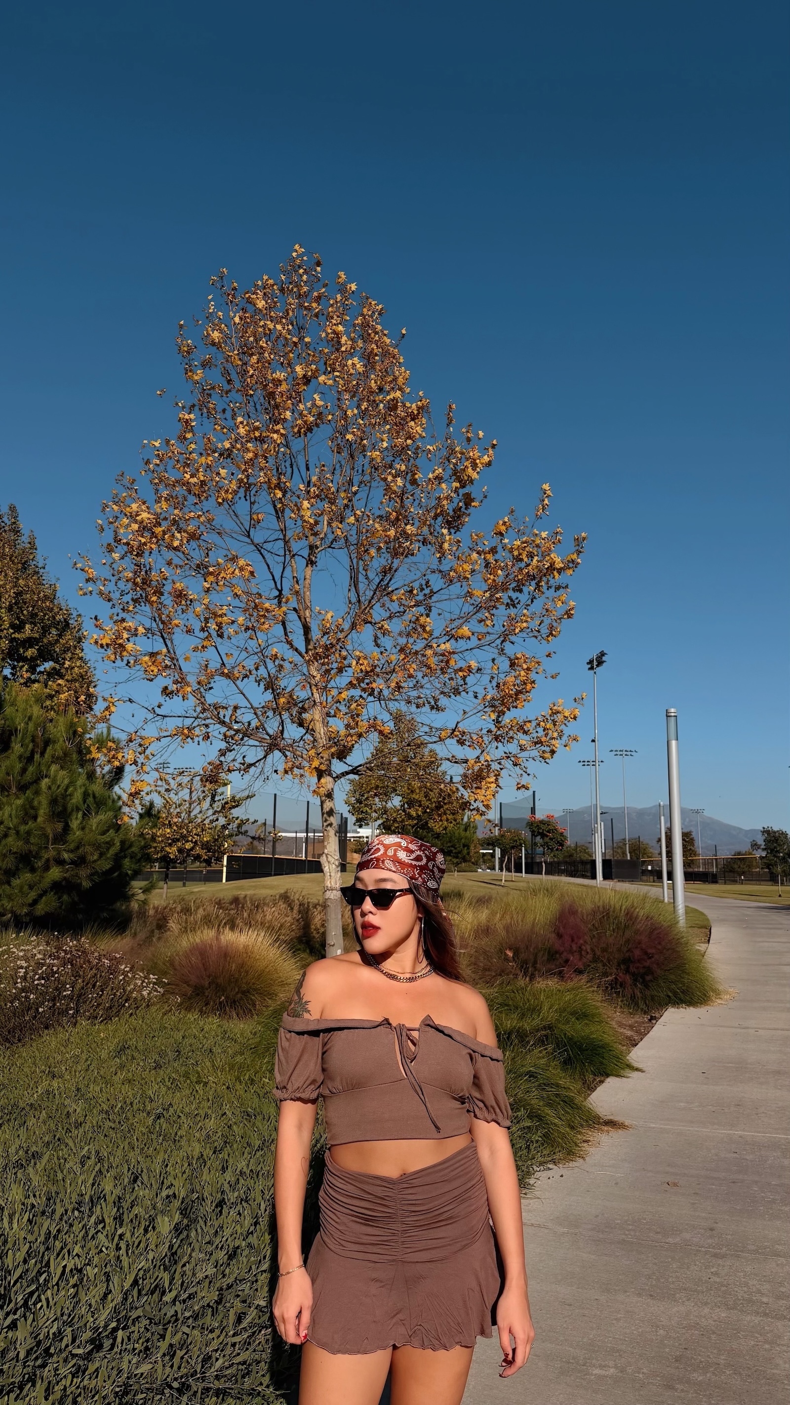 大地色系搭配泡泡袖設計