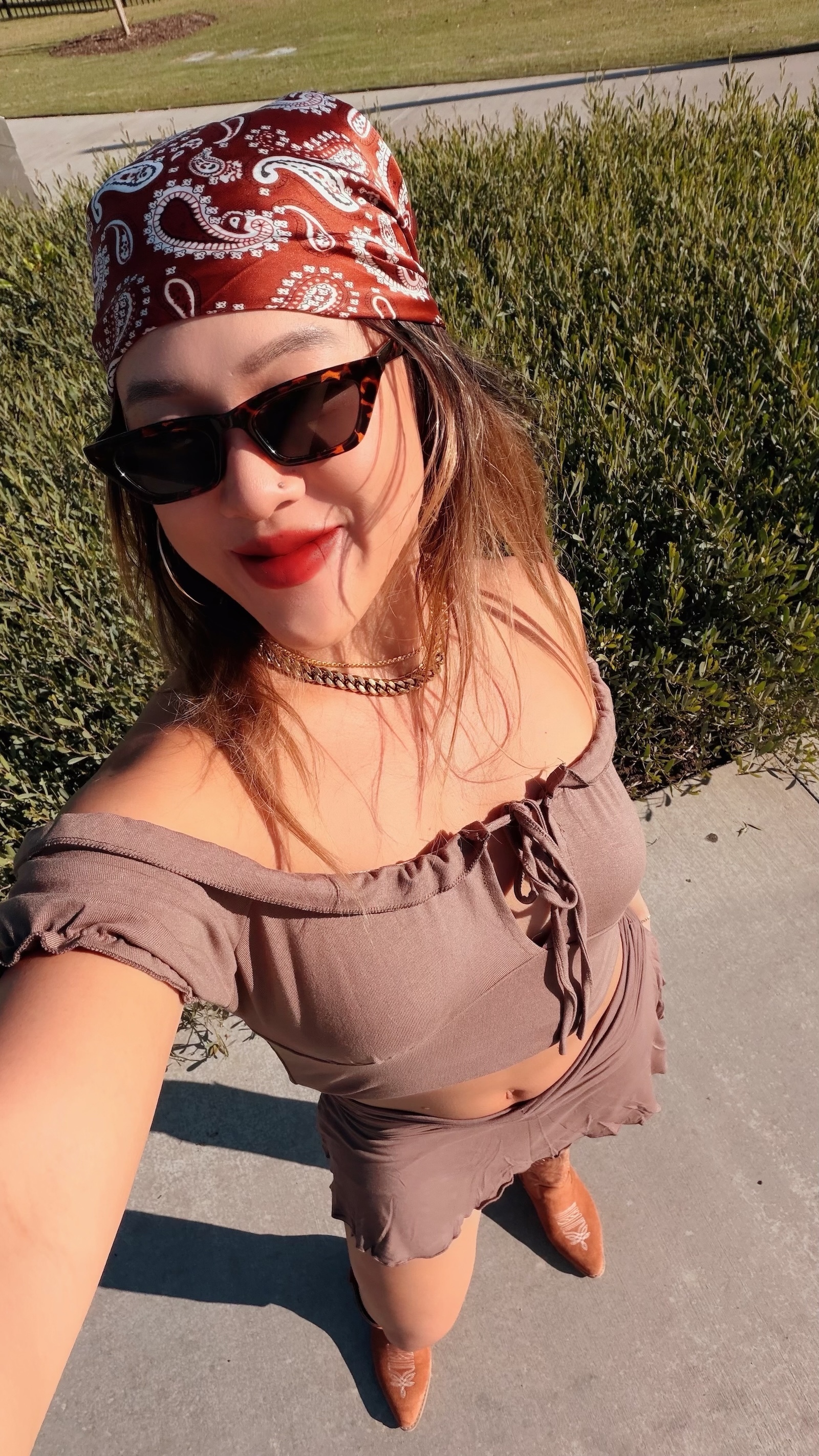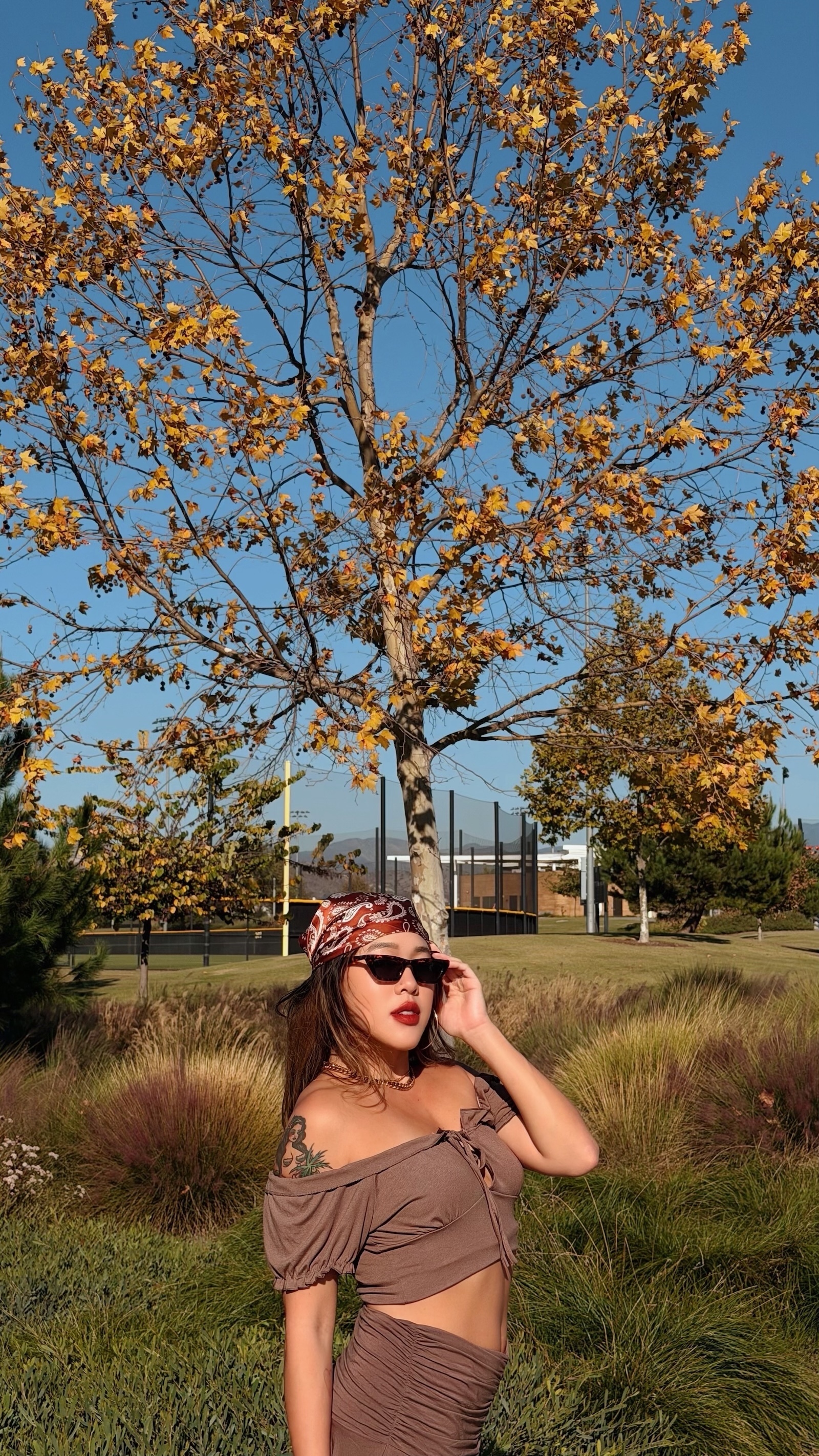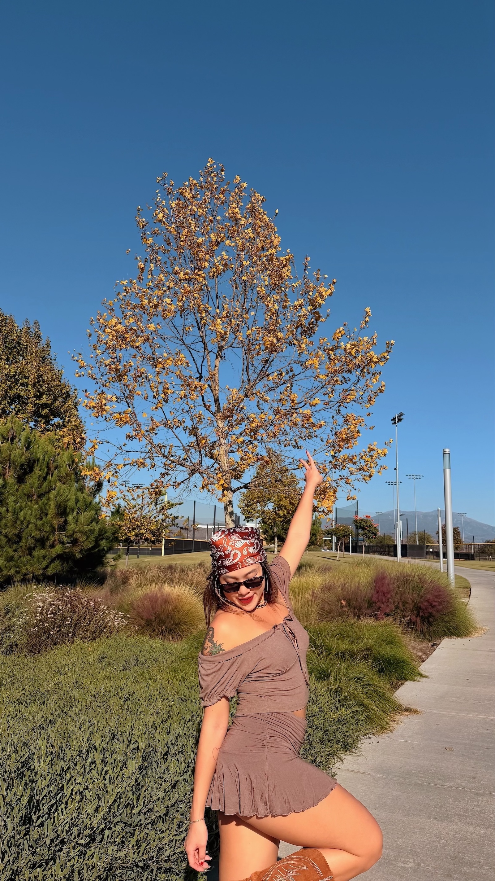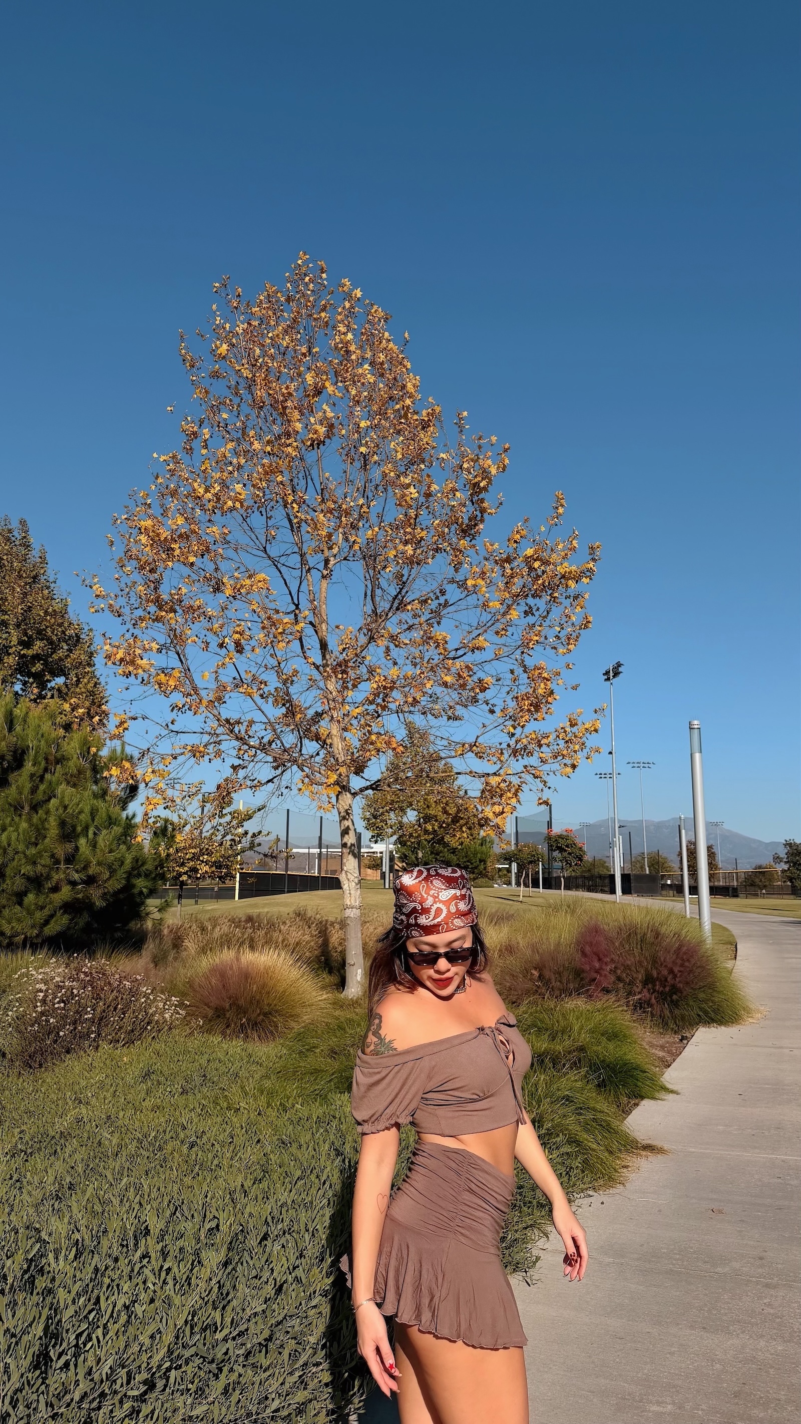 大地色系搭配泡泡袖設計