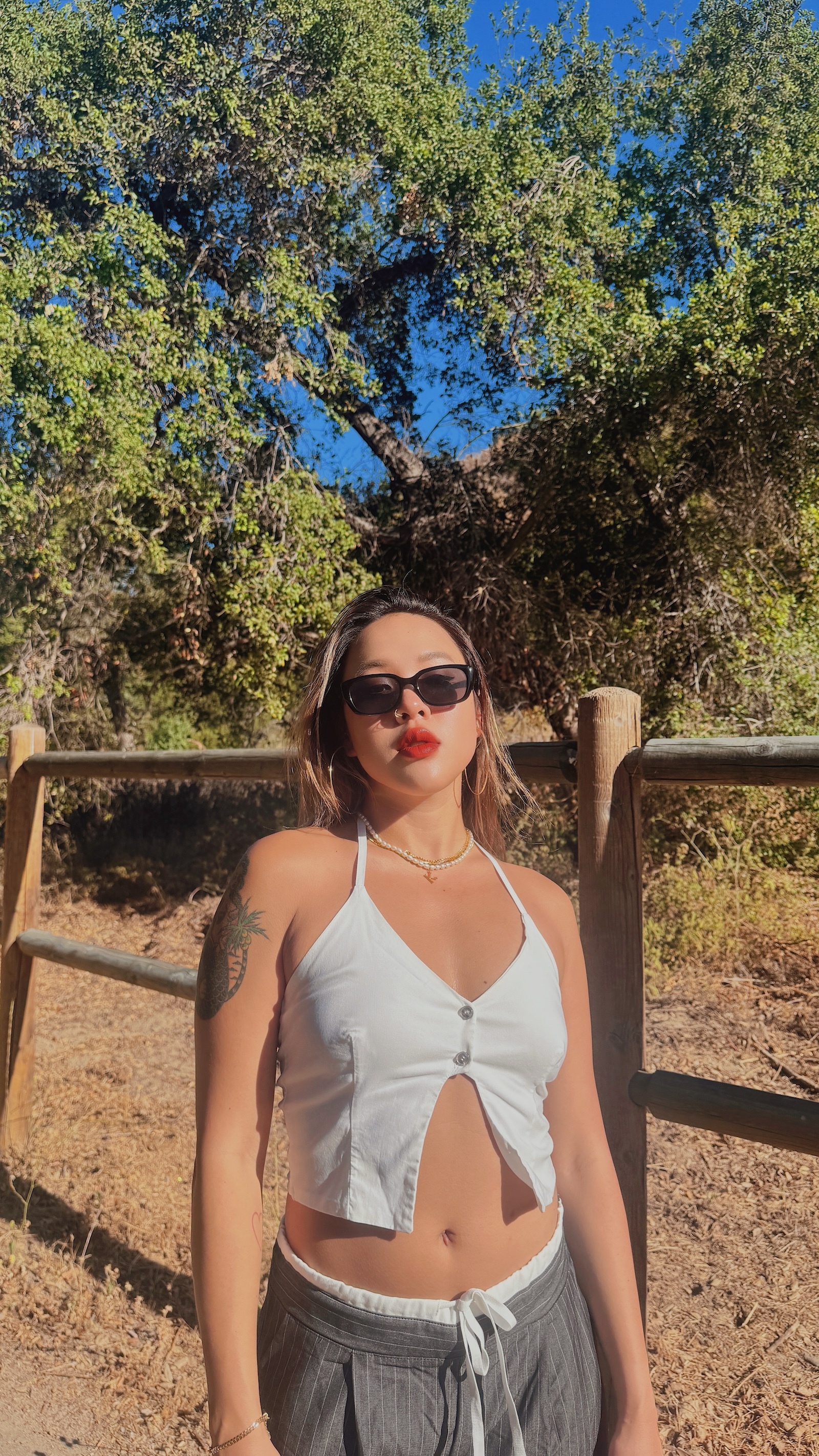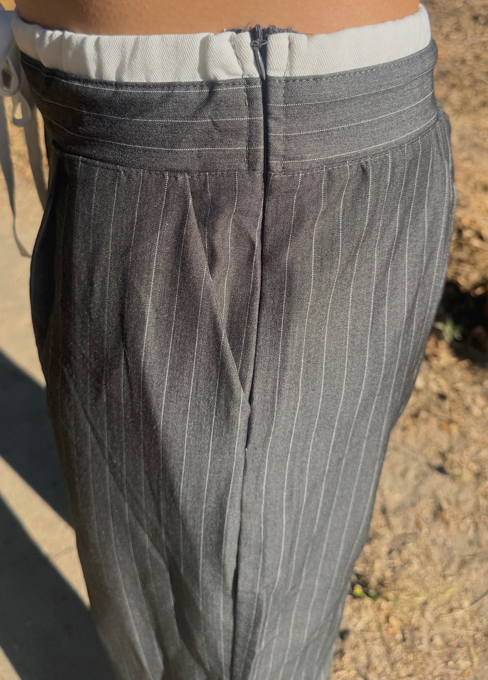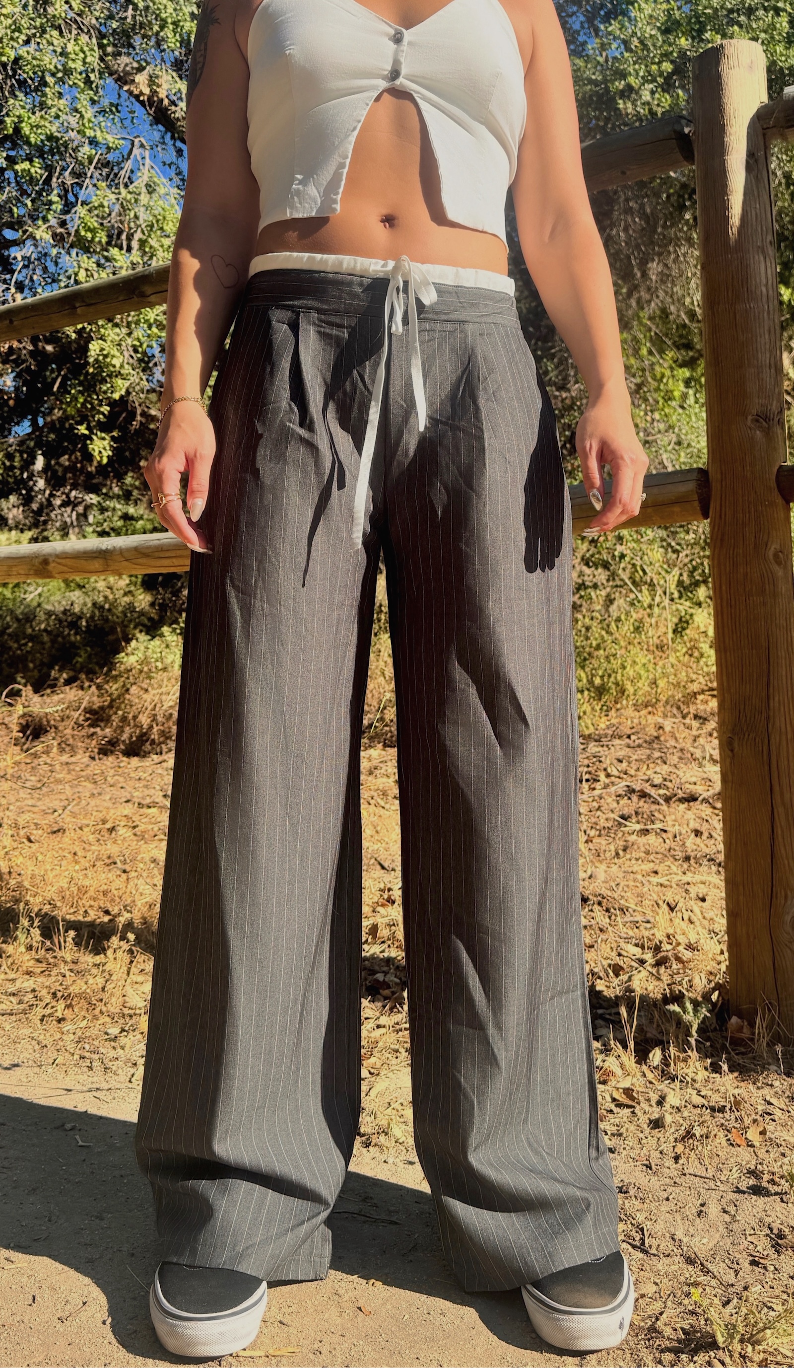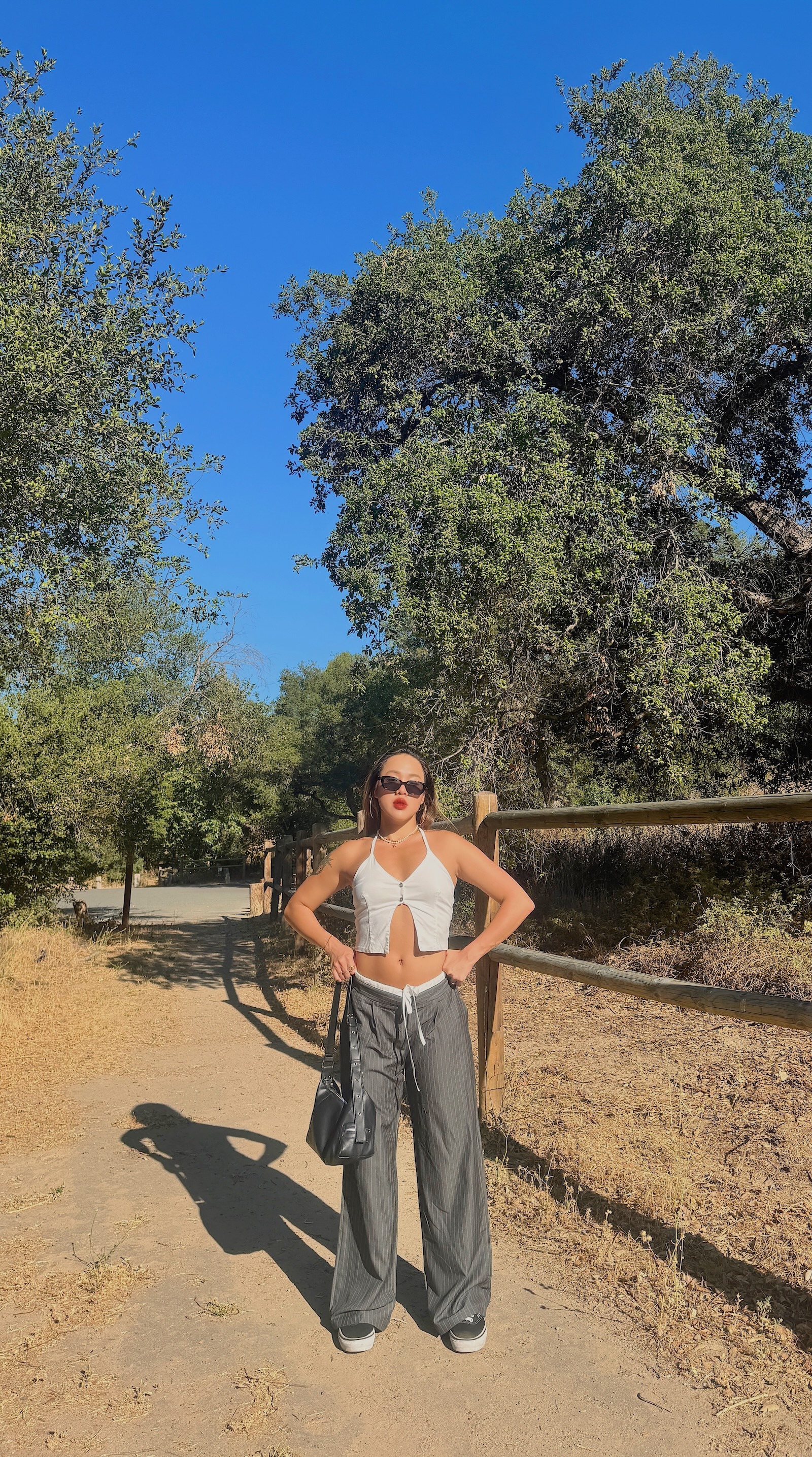 鬆緊腰圍搭配白色褲頭,慵懶時髦