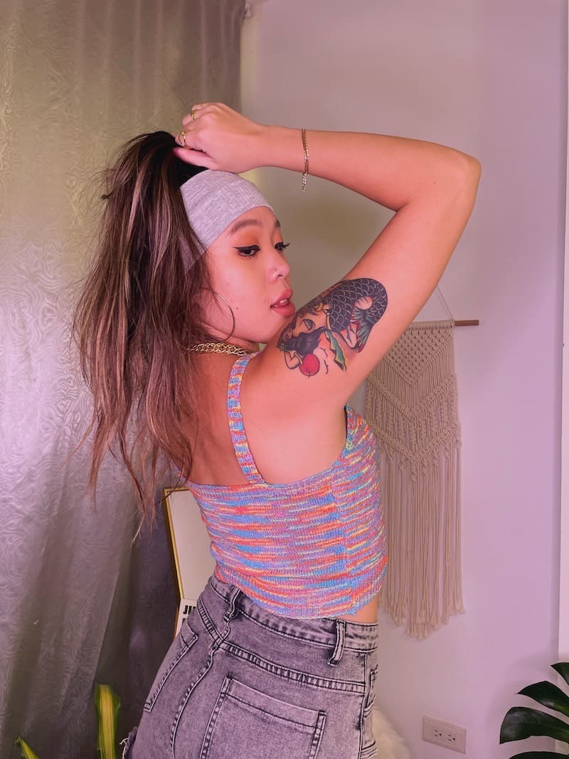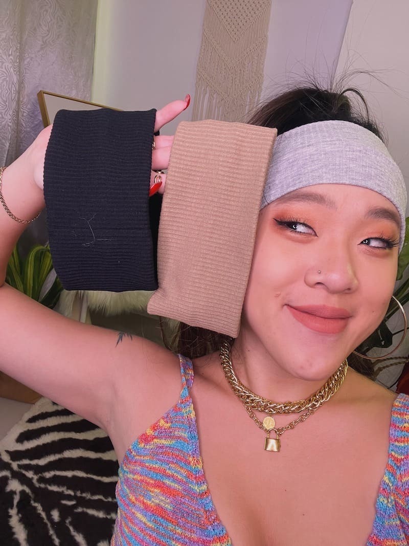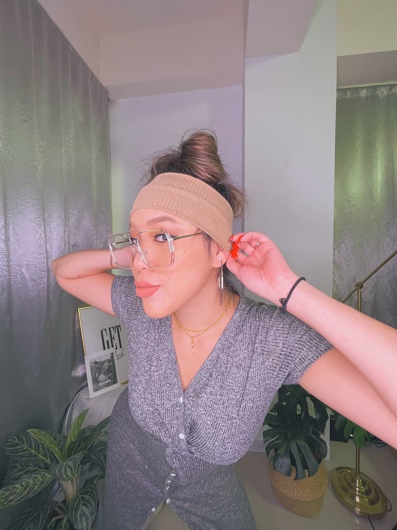 寬版也更有存在感,整個蓋住耳朵搭配超大圈耳環!太辣了拉😈